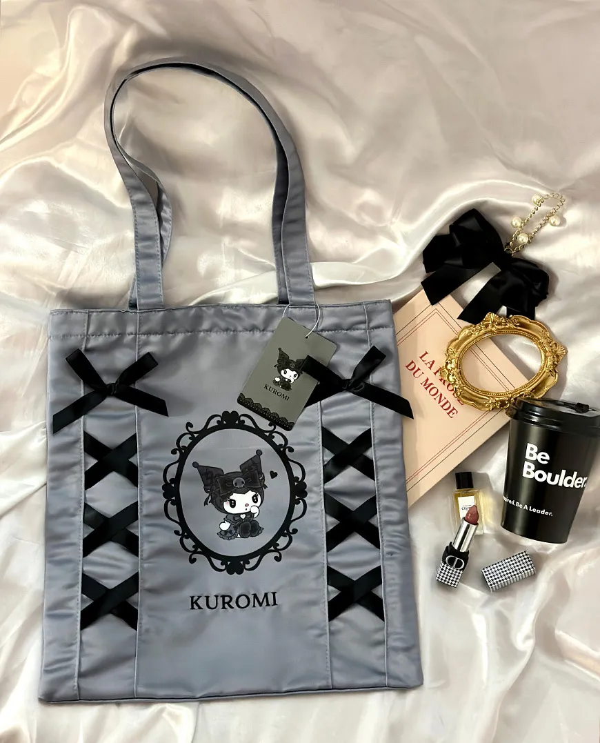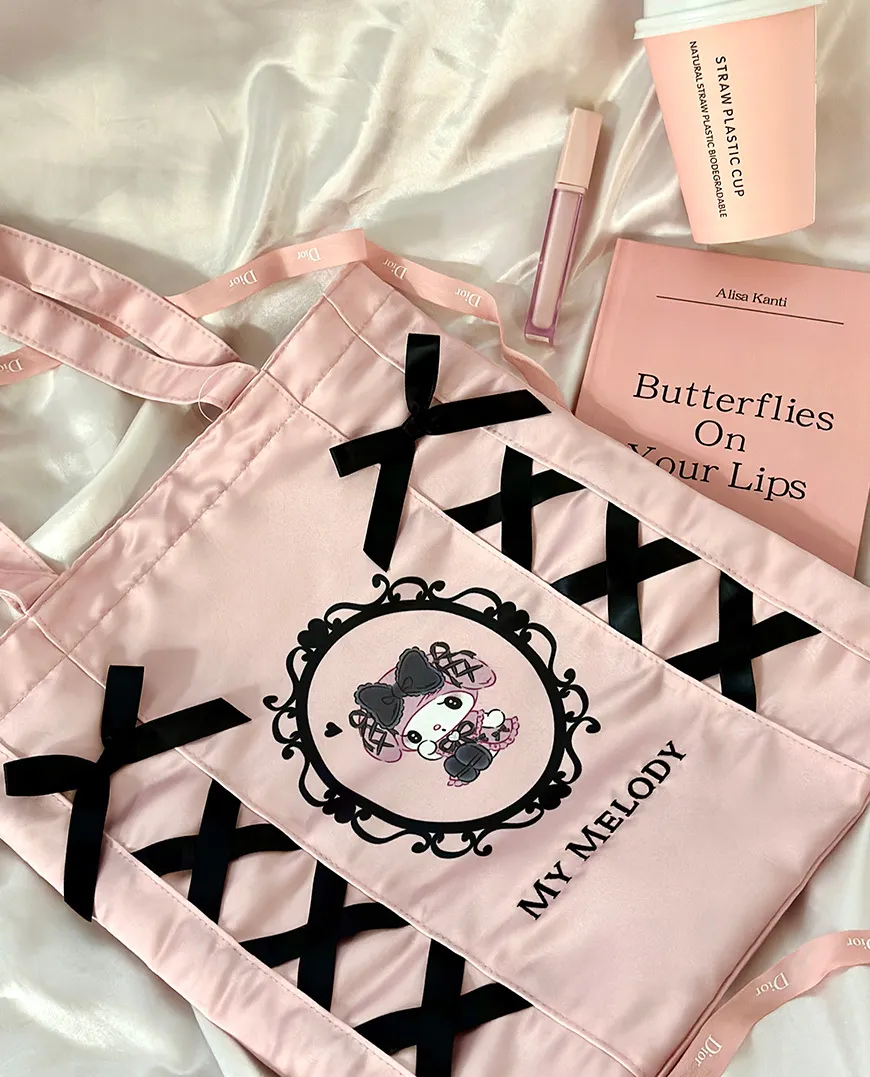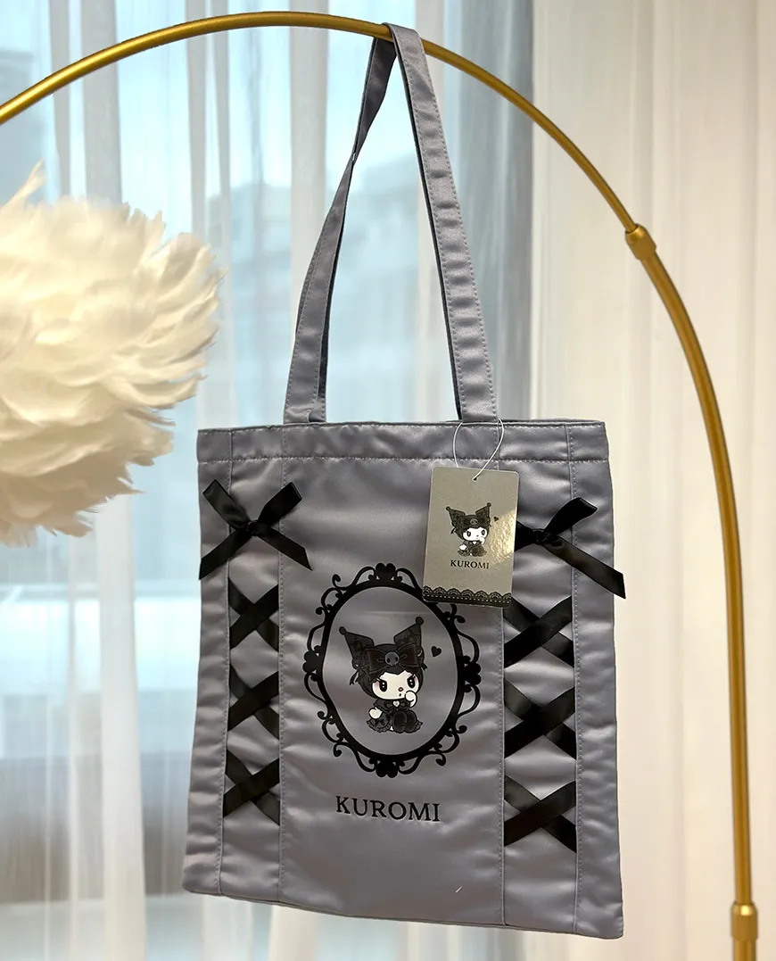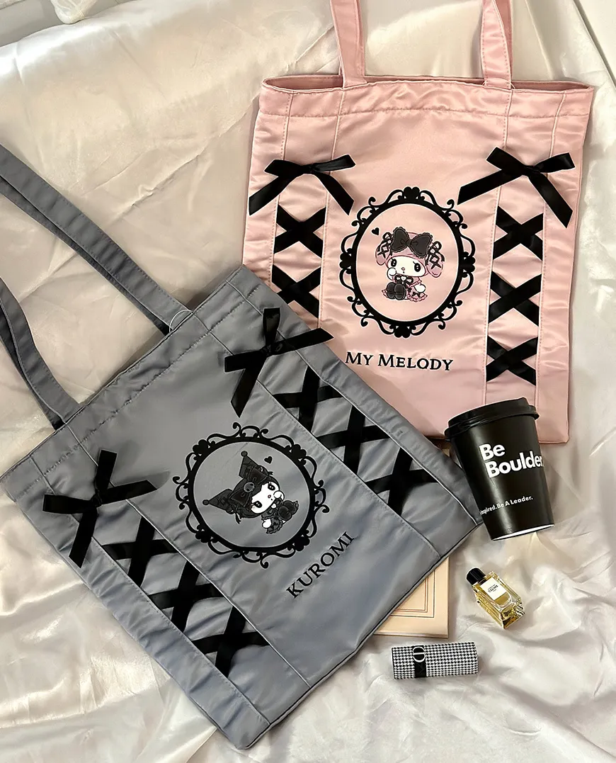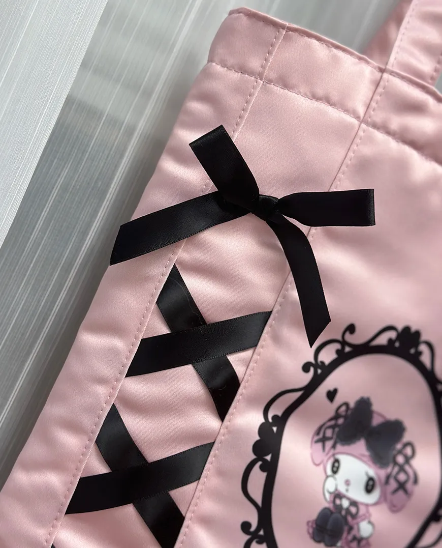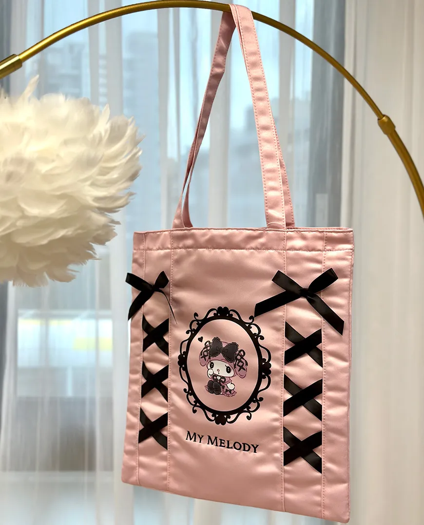 現貨-日本正版 美樂蒂/酷洛米 緞面蝴蝶結購物袋