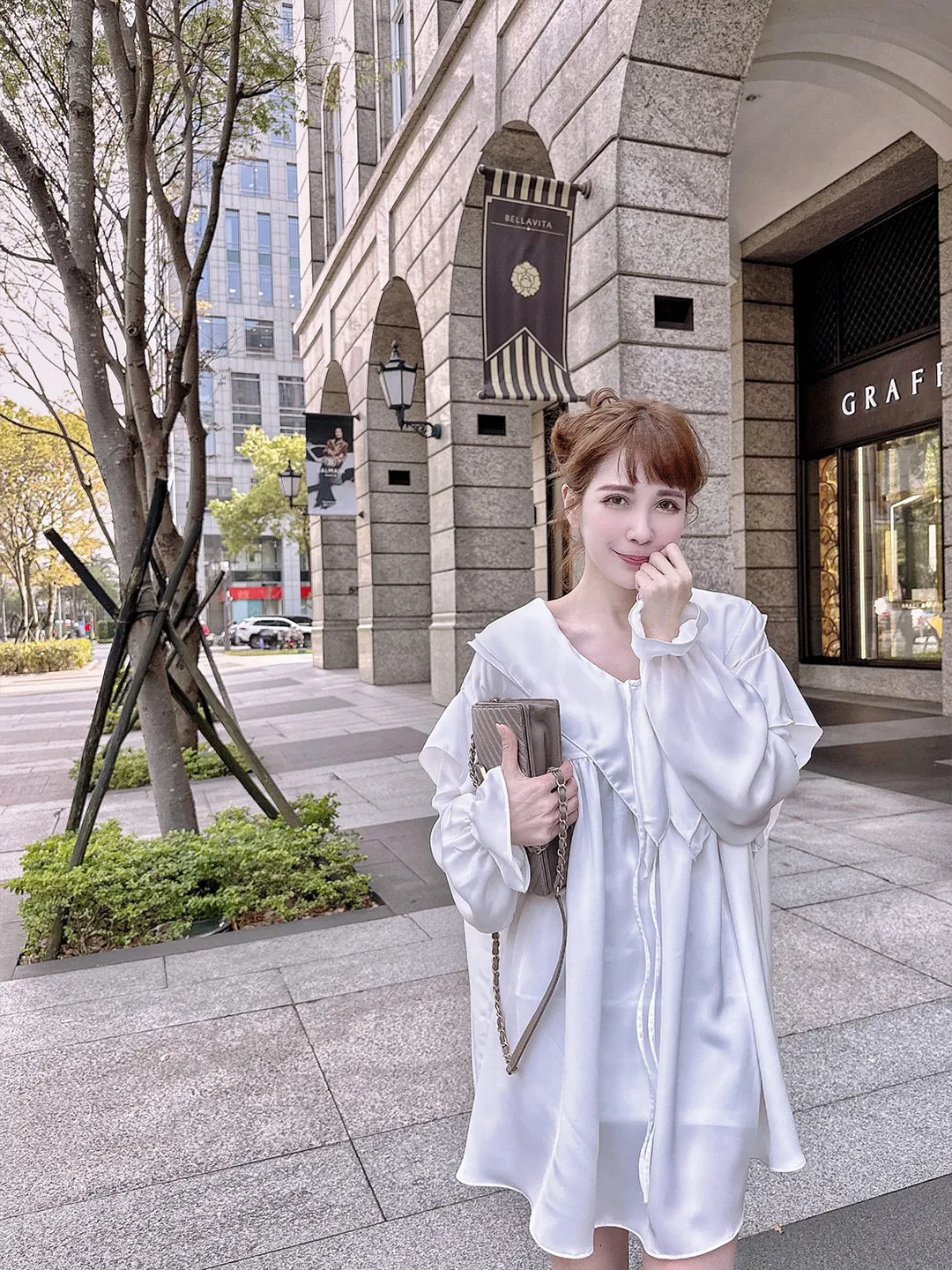 現貨-浪漫歐尼店家 唯美領口緞面洋裝(林鴒/KIMY清單)