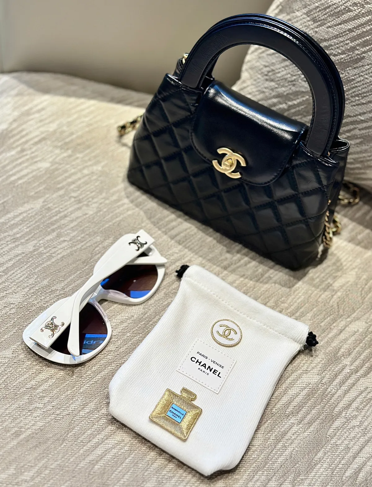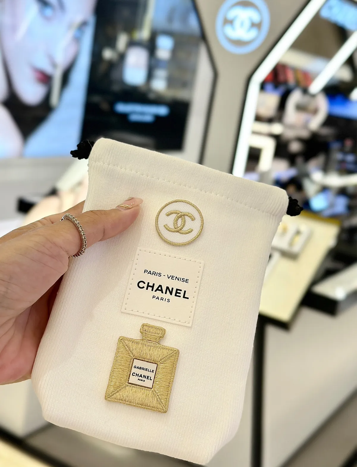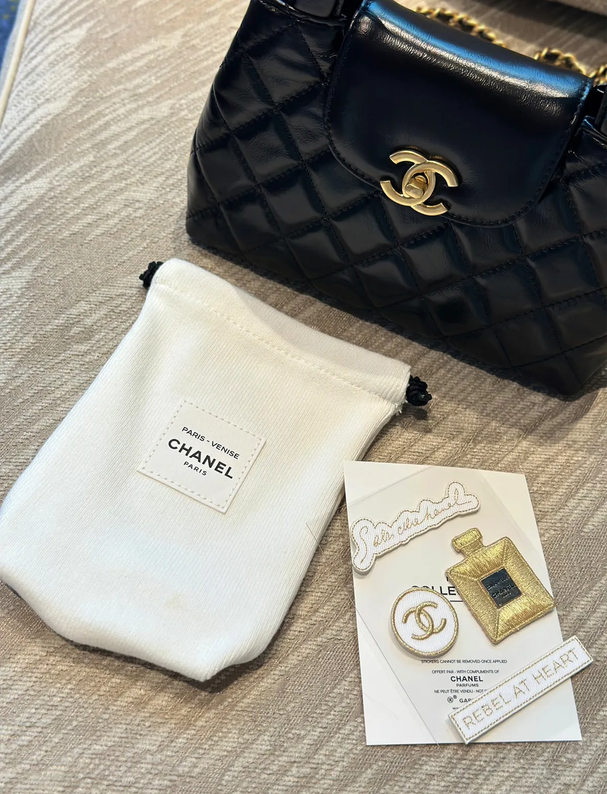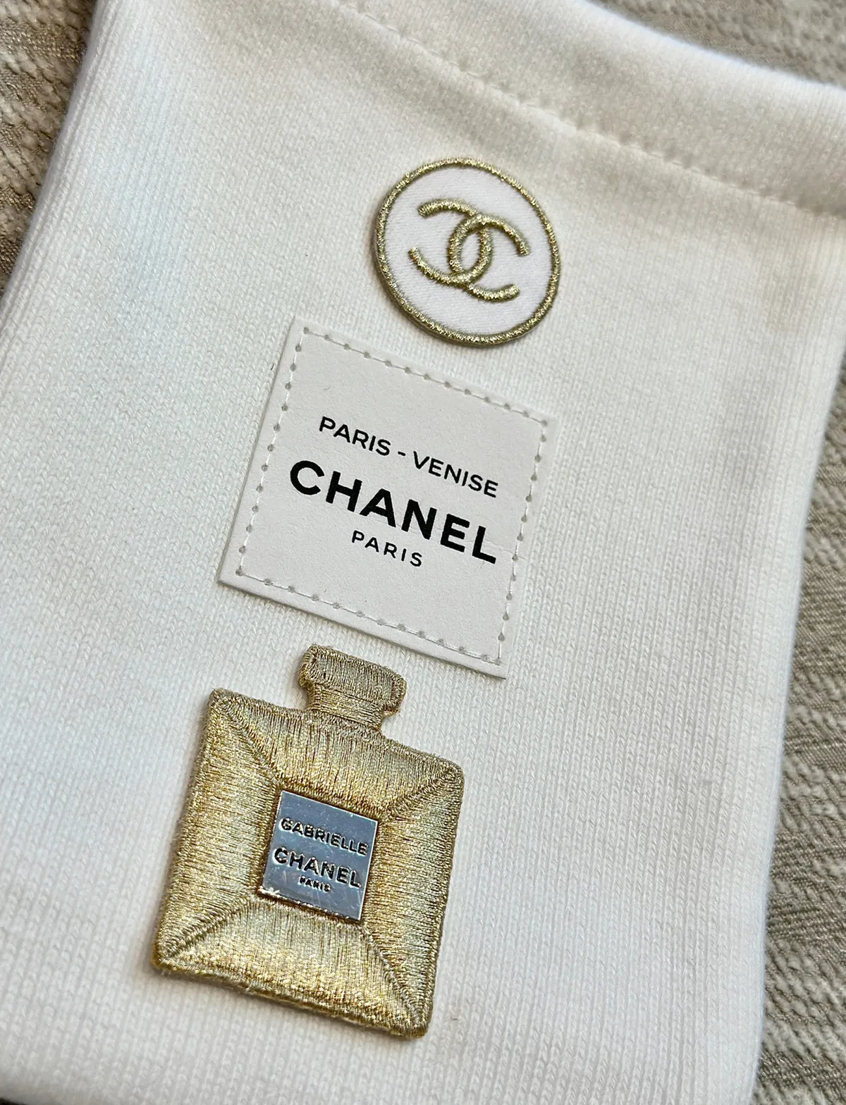 寶貴稀少數量因為是要在CHANEL彩妝櫃 尊榮VVIP 才有的!外面買不到!聖誕限量發行的!CHANEL 刺繡貼紙 它是有厚度的 貼起來都有立體感質感做工細節都很重工重點想貼哪都可以~衣服~包包~都可以~DIY超實用收納袋實品超美收到可以拿去當化妝包/墨鏡/手機都好實用這個可以拿去當聖誕禮物 超質感自用~送人都很可以收到就是一整組聖誕限定 CHANEL 收納袋+ CHANEL立體刺繡LOGO 貼紙 【尺寸】長11/底寬3/高15cm【材質】 收納袋帆布