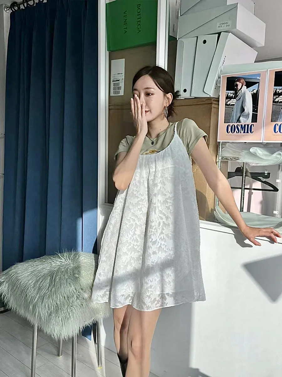 現貨-超仙的吊帶蕾絲洋裝(共三色)