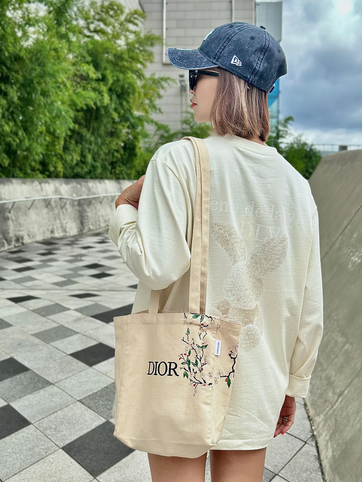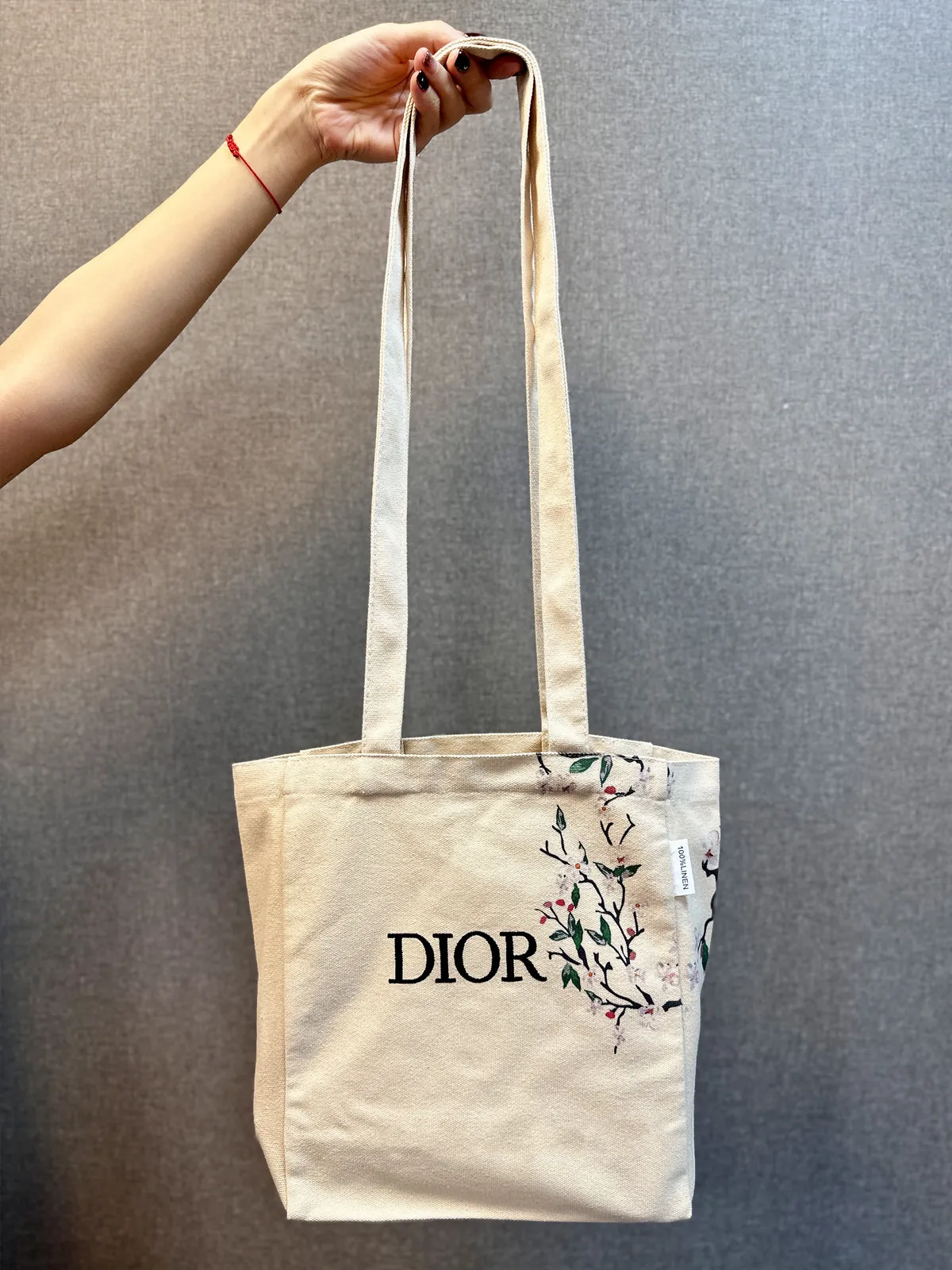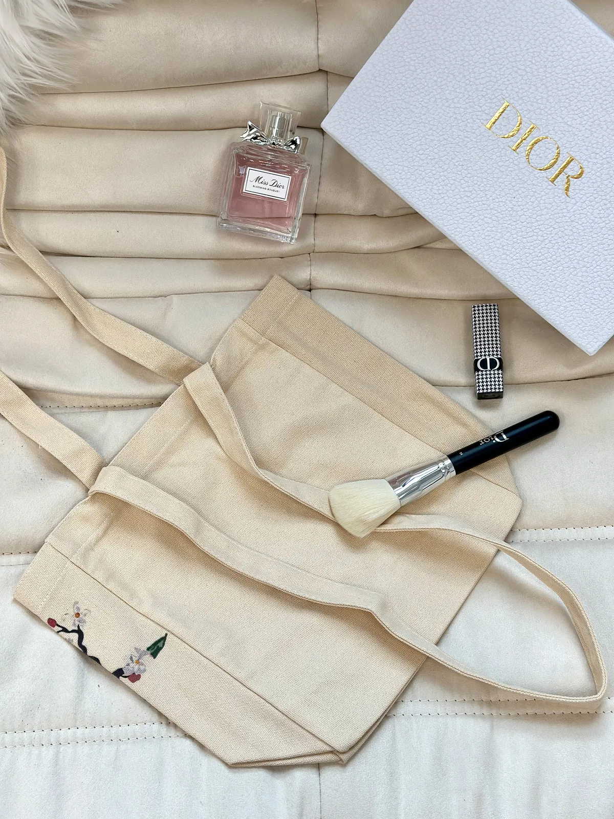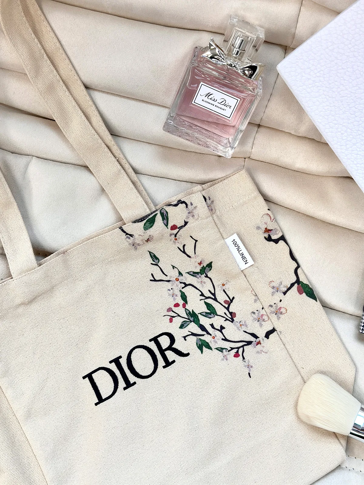現貨-DIOR 美妝保養品贈品 刺繡LOGO 520限定的花卉藤枝帆布包
