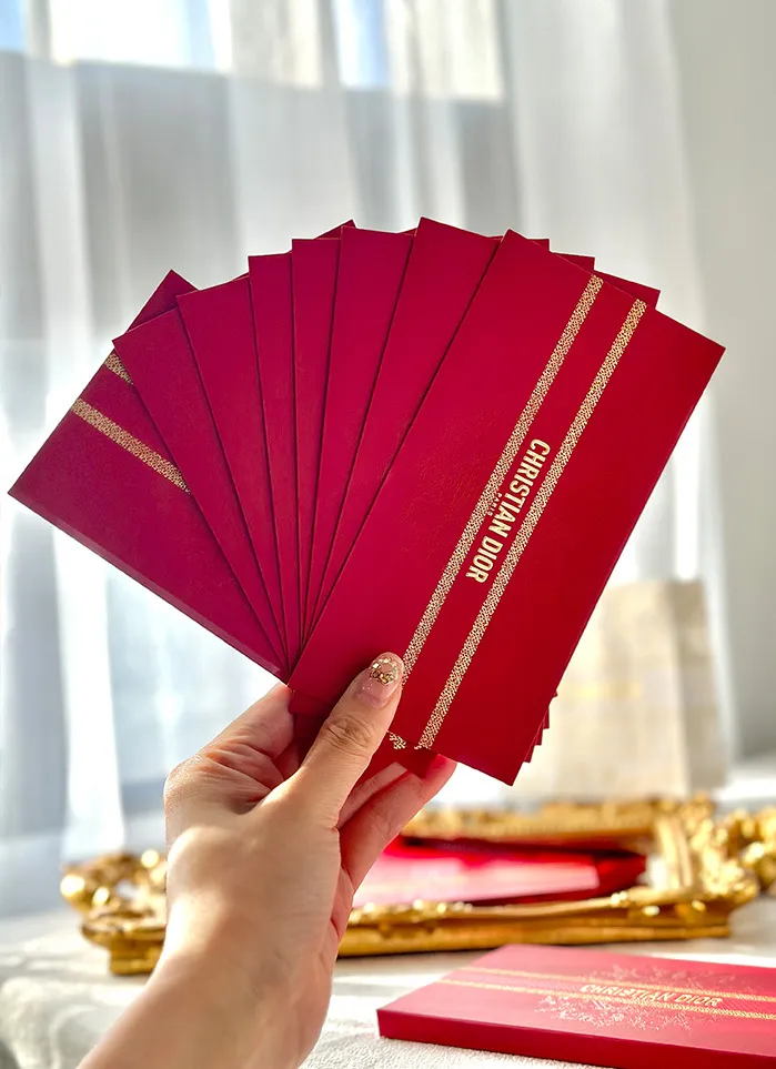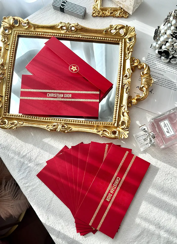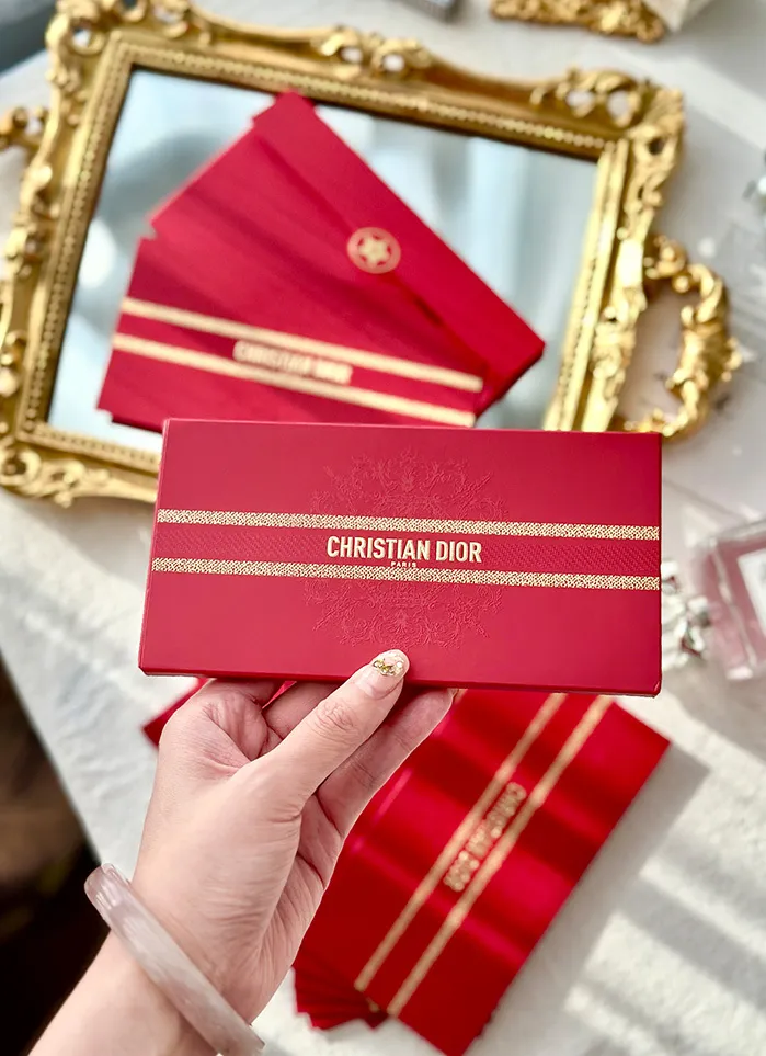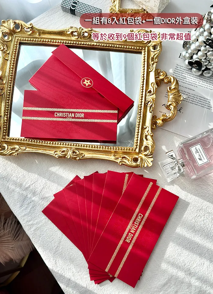 非常難求!每年都是尊榮VVIP獨享 才能能到的限量紅包袋DIOR 燙金LOGO 非常值得收藏閃閃發亮超貴氣一組有8入紅包袋+一個DIOR外盒裝等於收到9個紅包袋 非常超值【尺寸】8入組紅包袋+1個CD外盒裝
