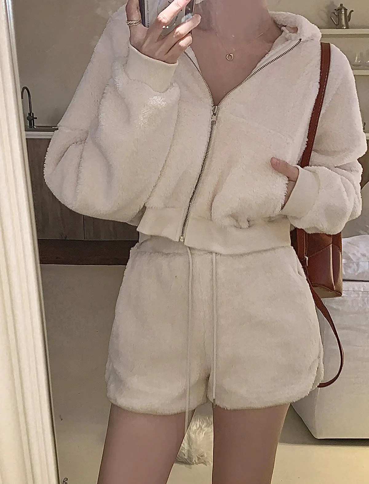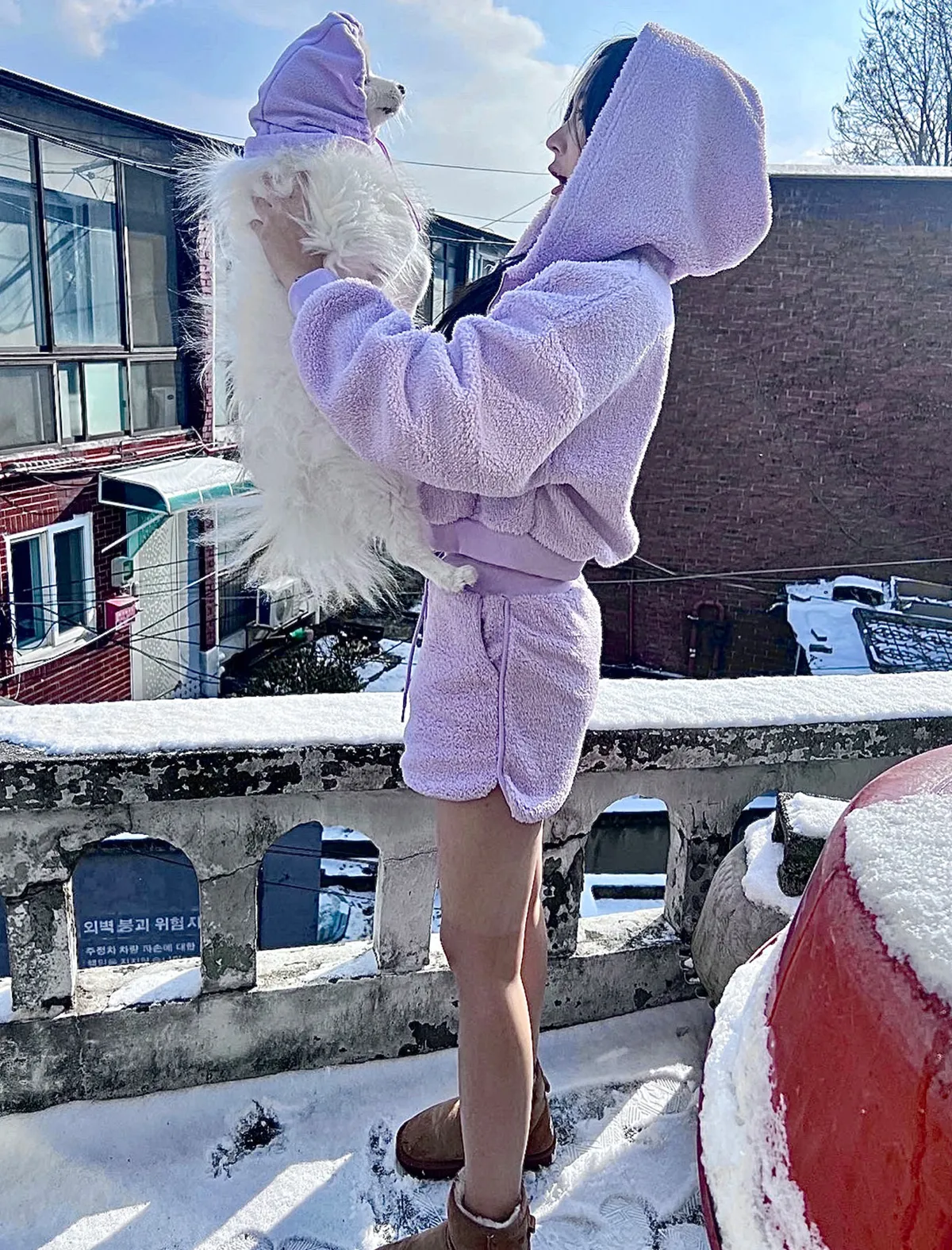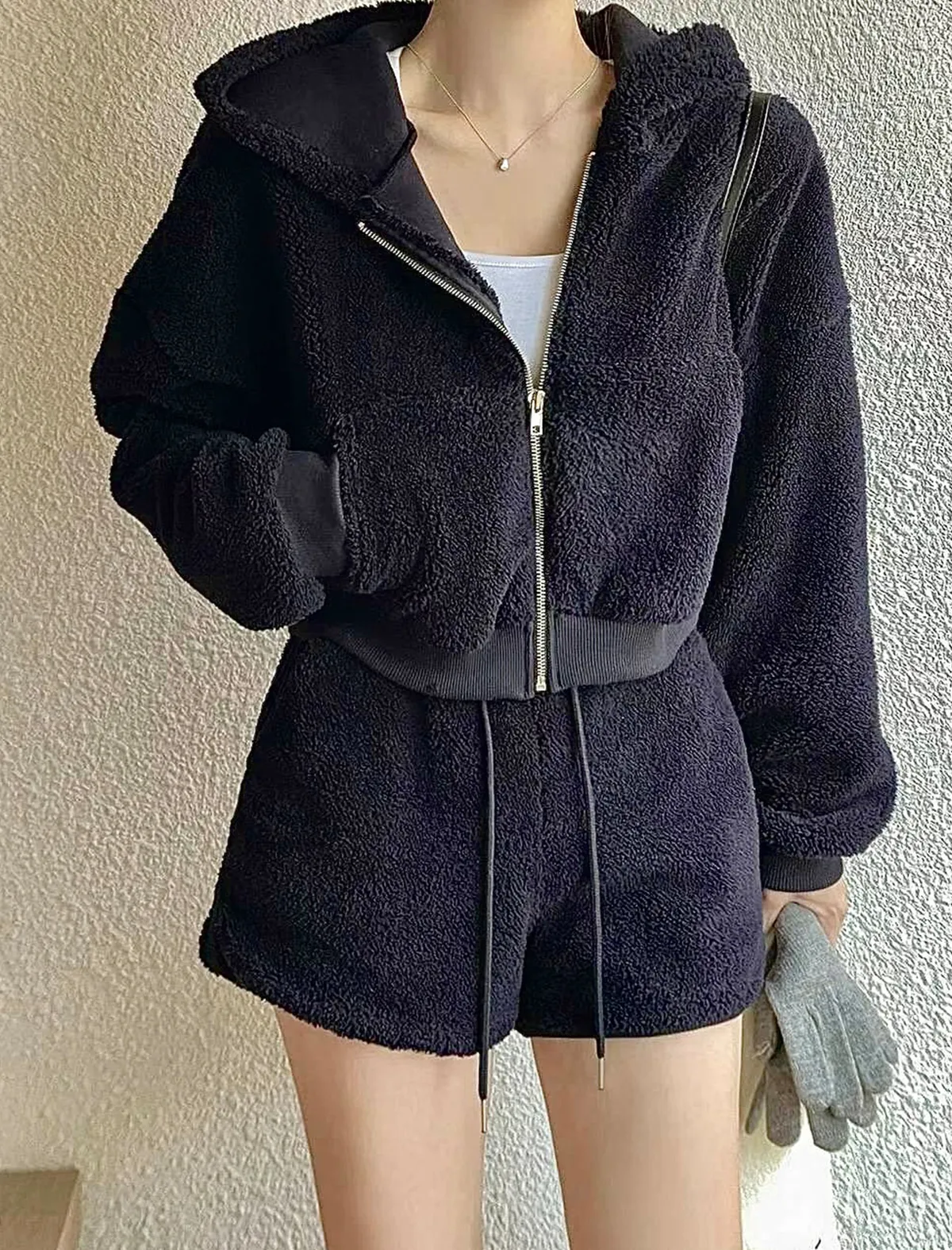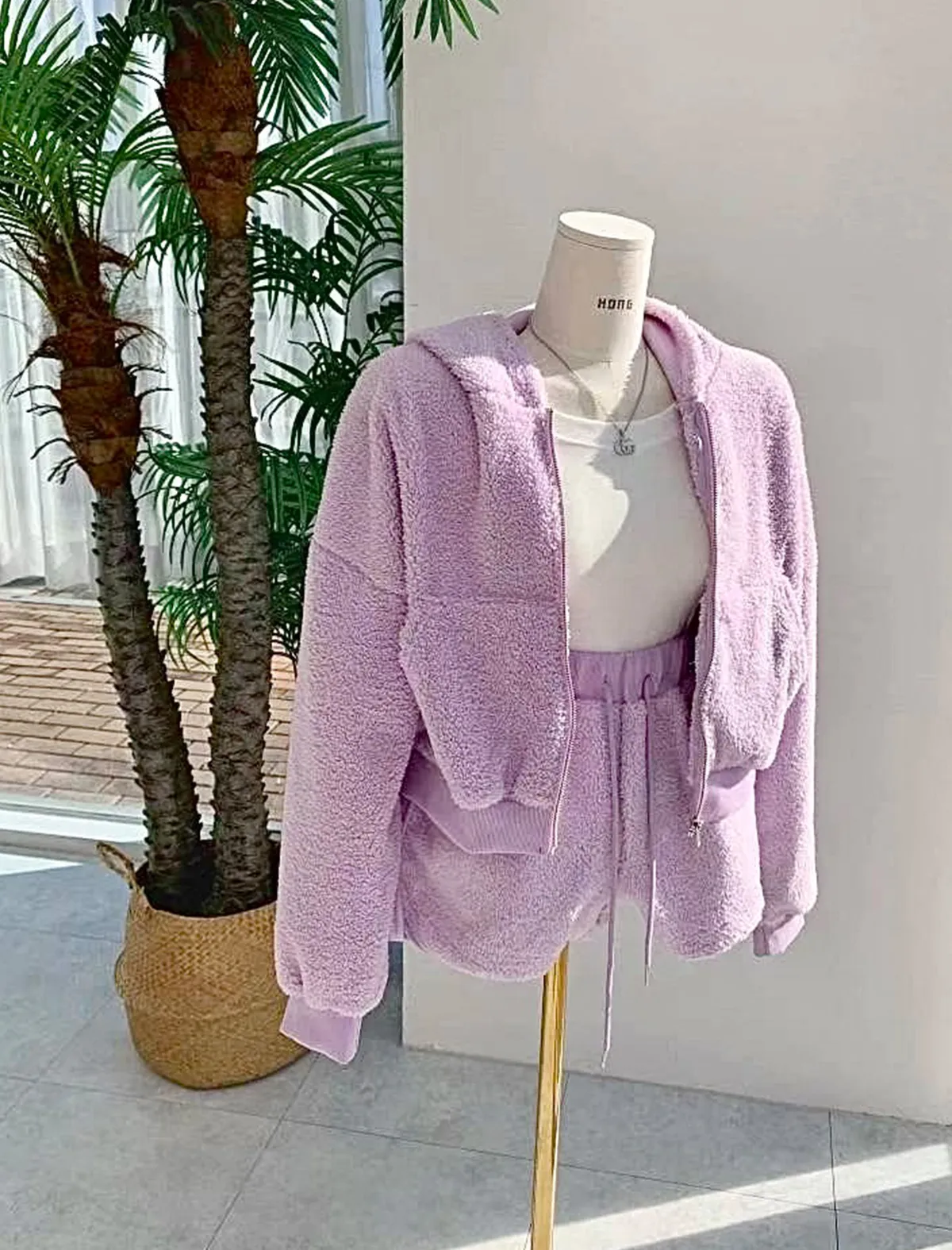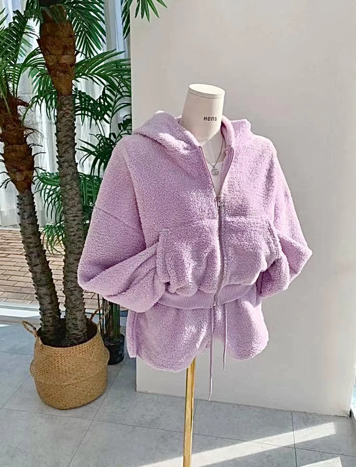 現貨-韓國店家熱賣款 羊羔毛兩件套連帽套裝