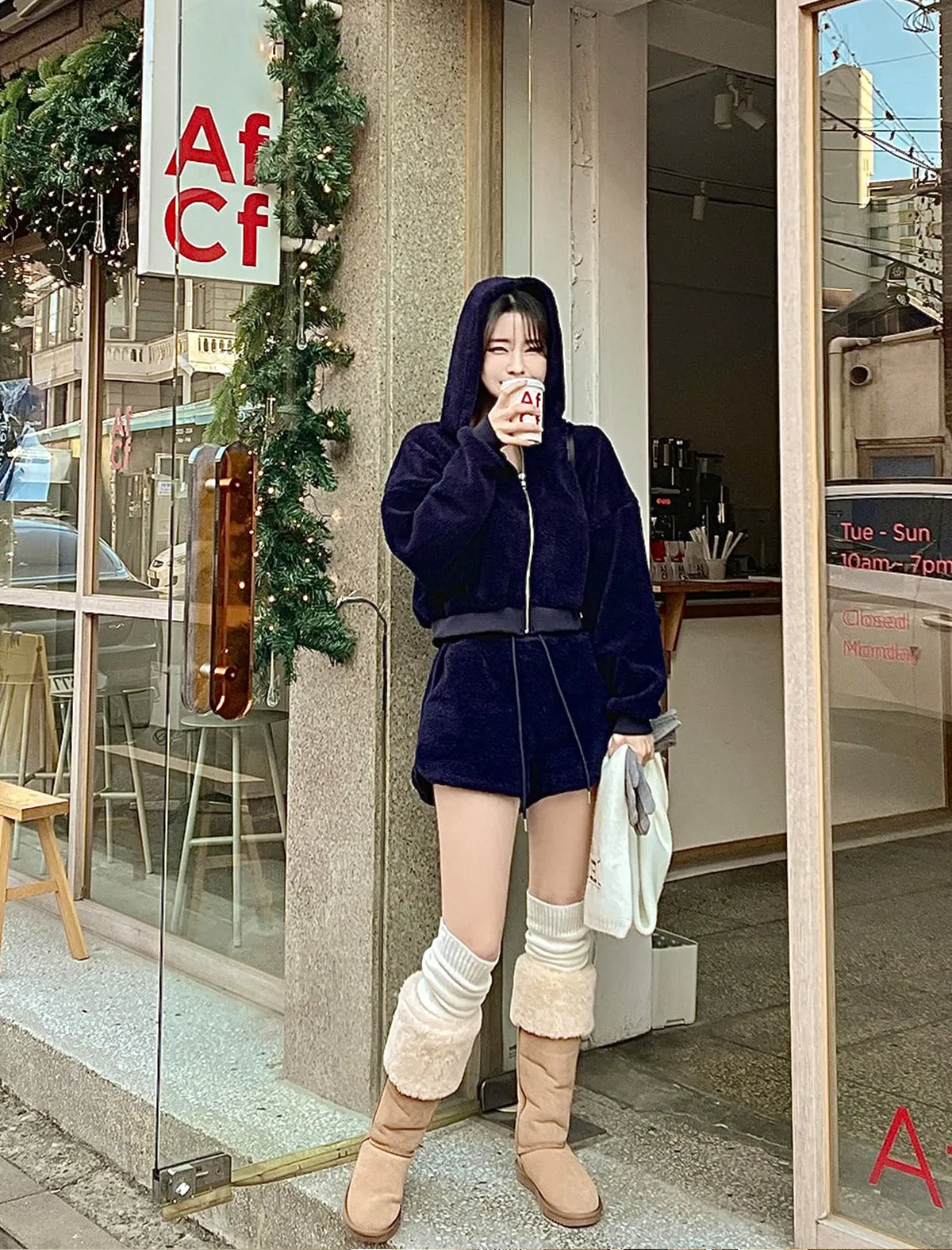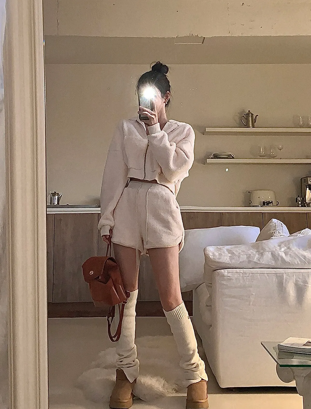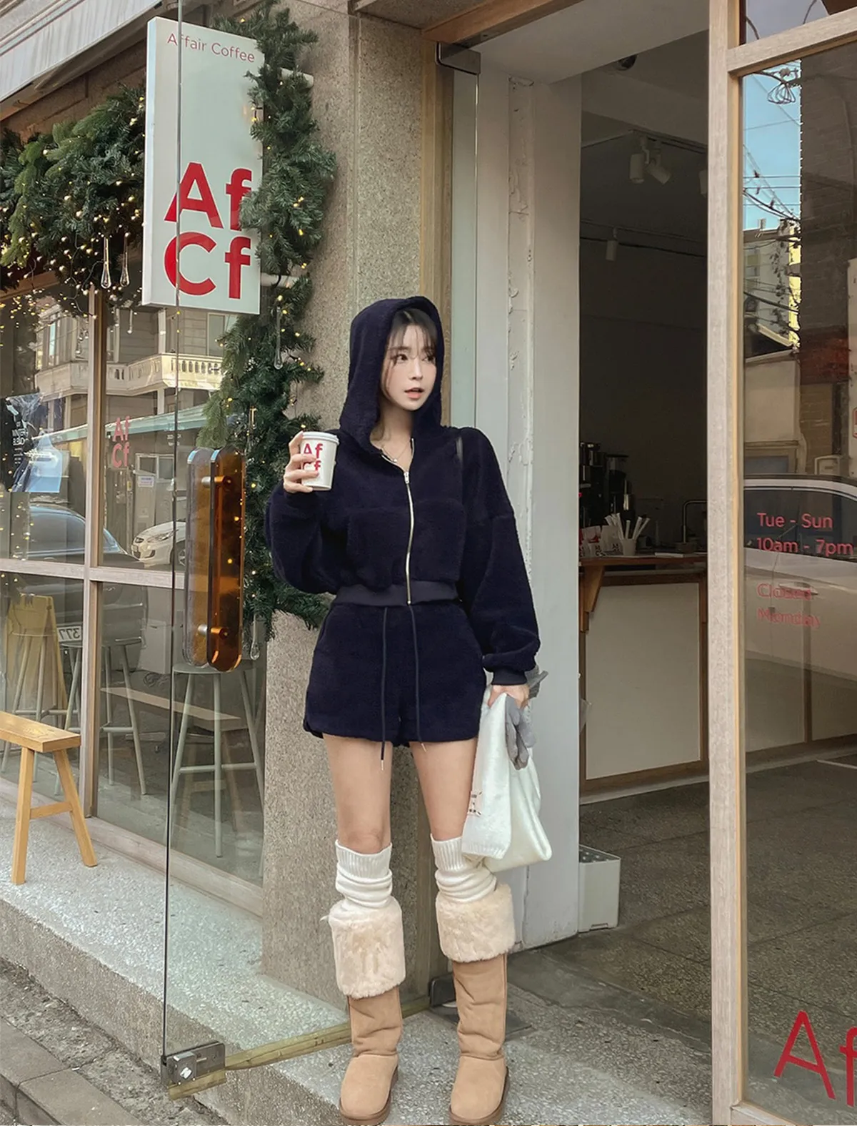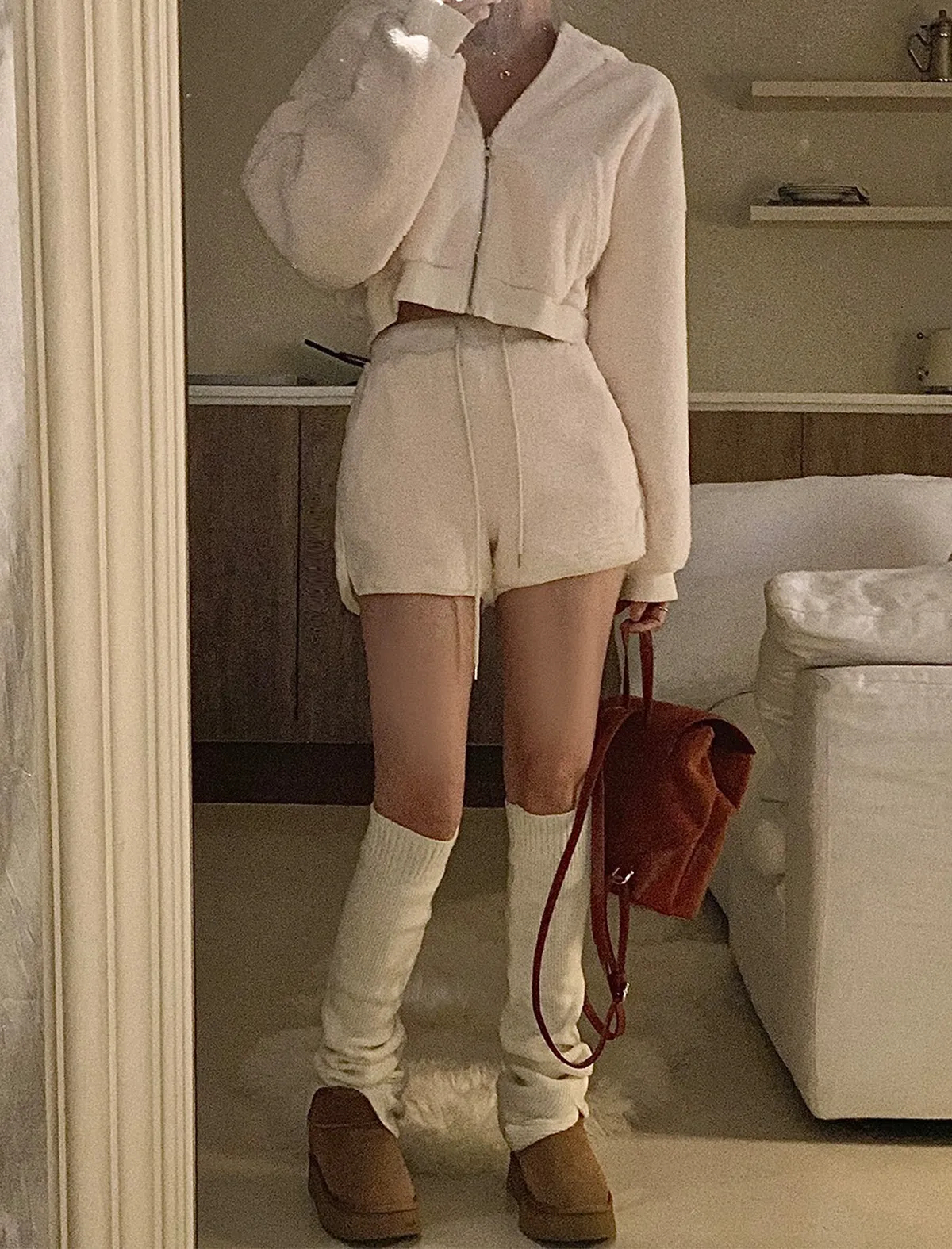 現貨-韓國店家熱賣款 羊羔毛兩件套連帽套裝