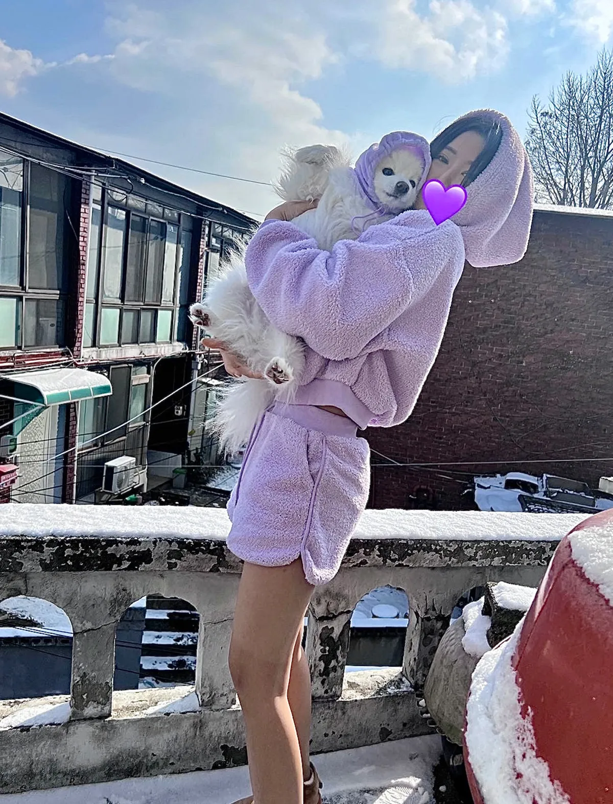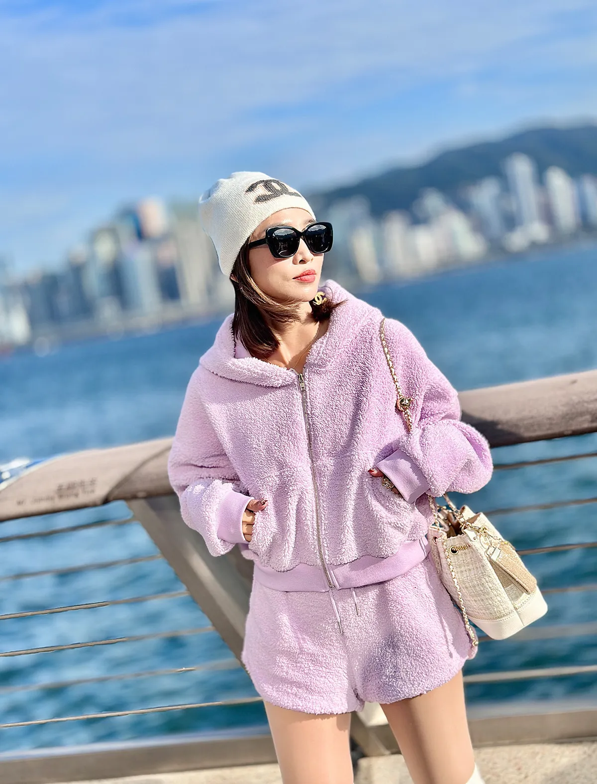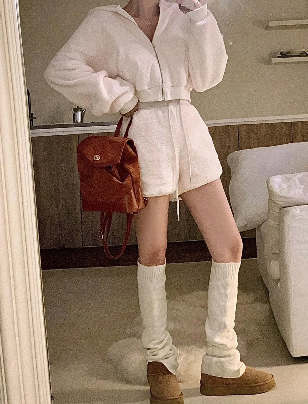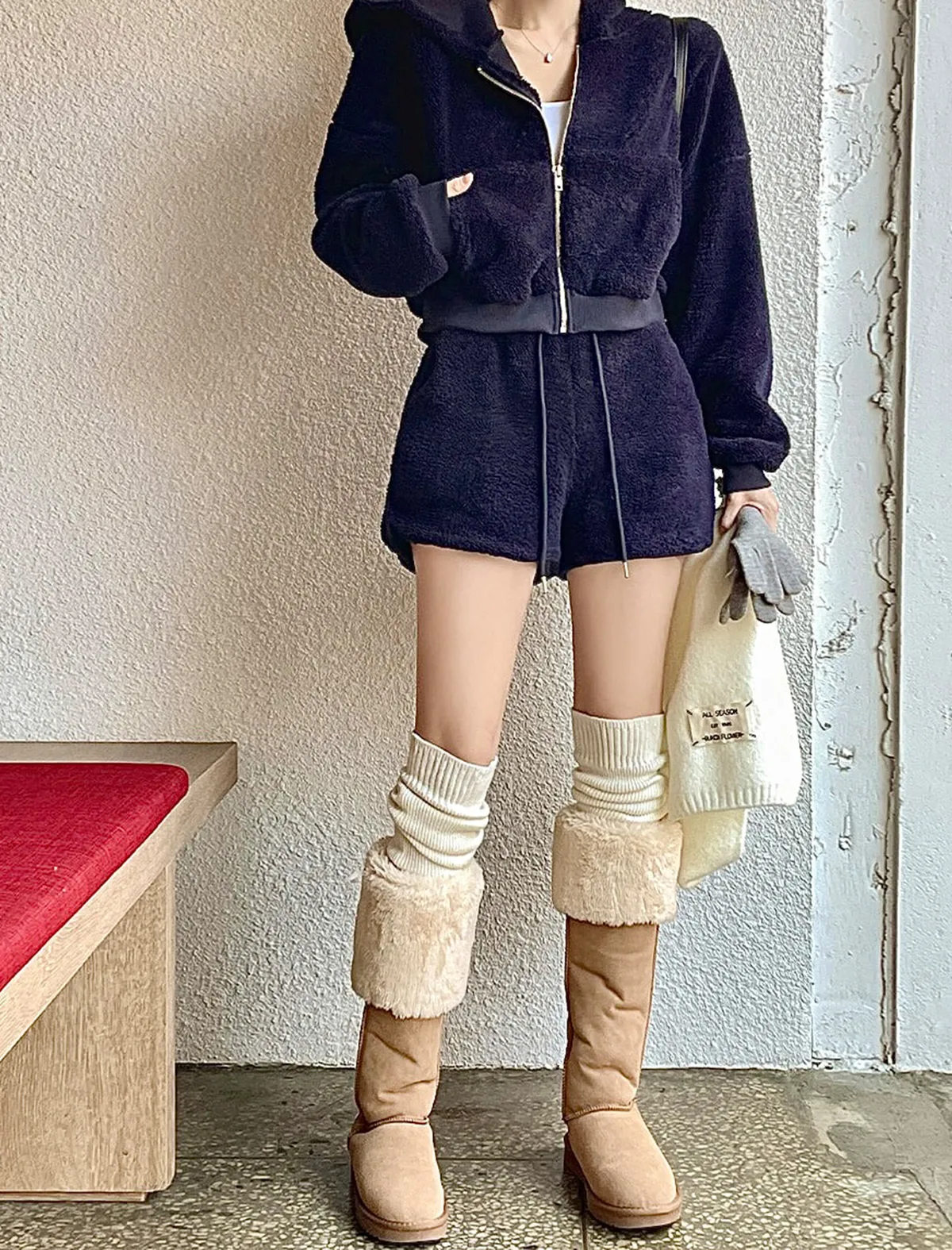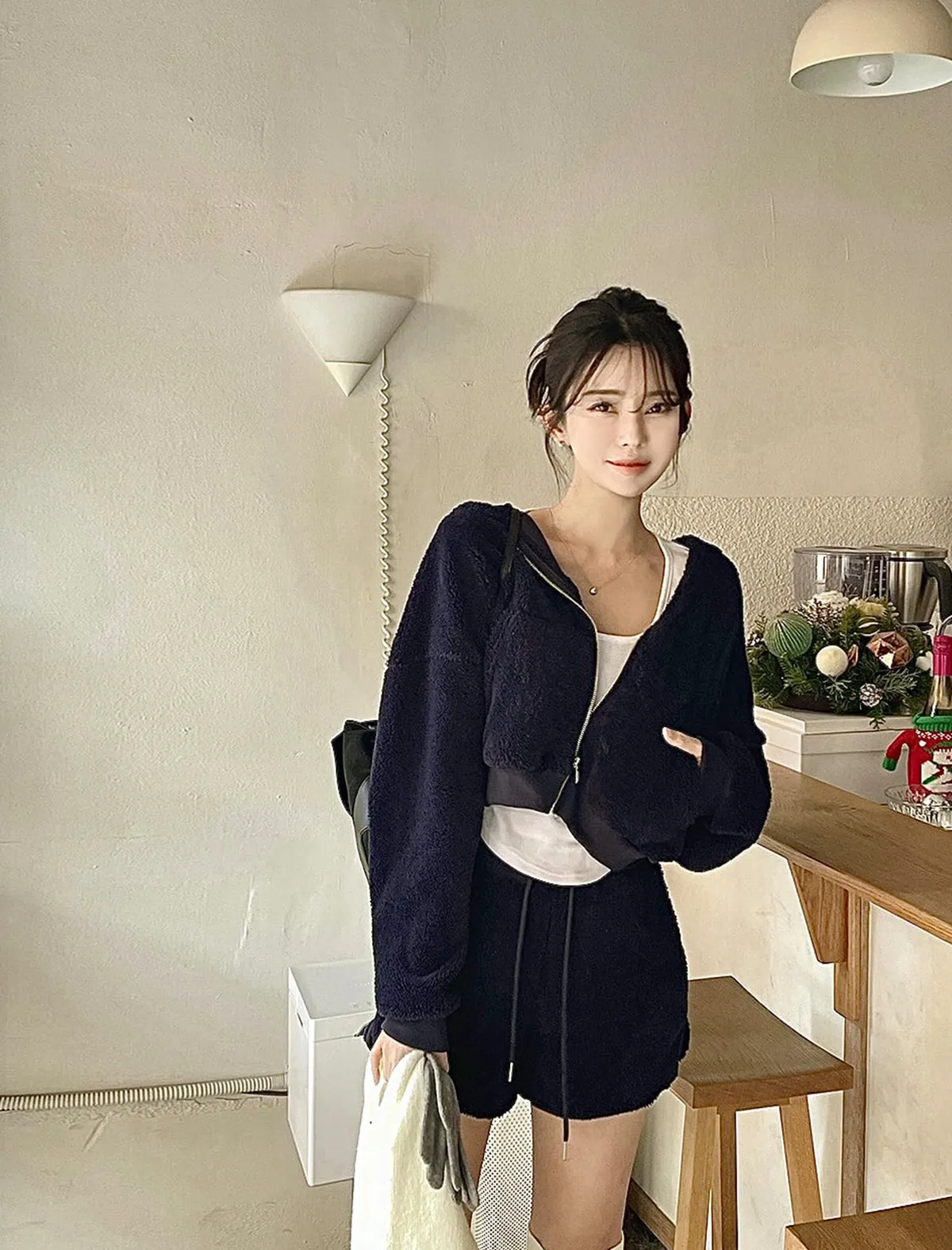 現貨-韓國店家熱賣款 羊羔毛兩件套連帽套裝