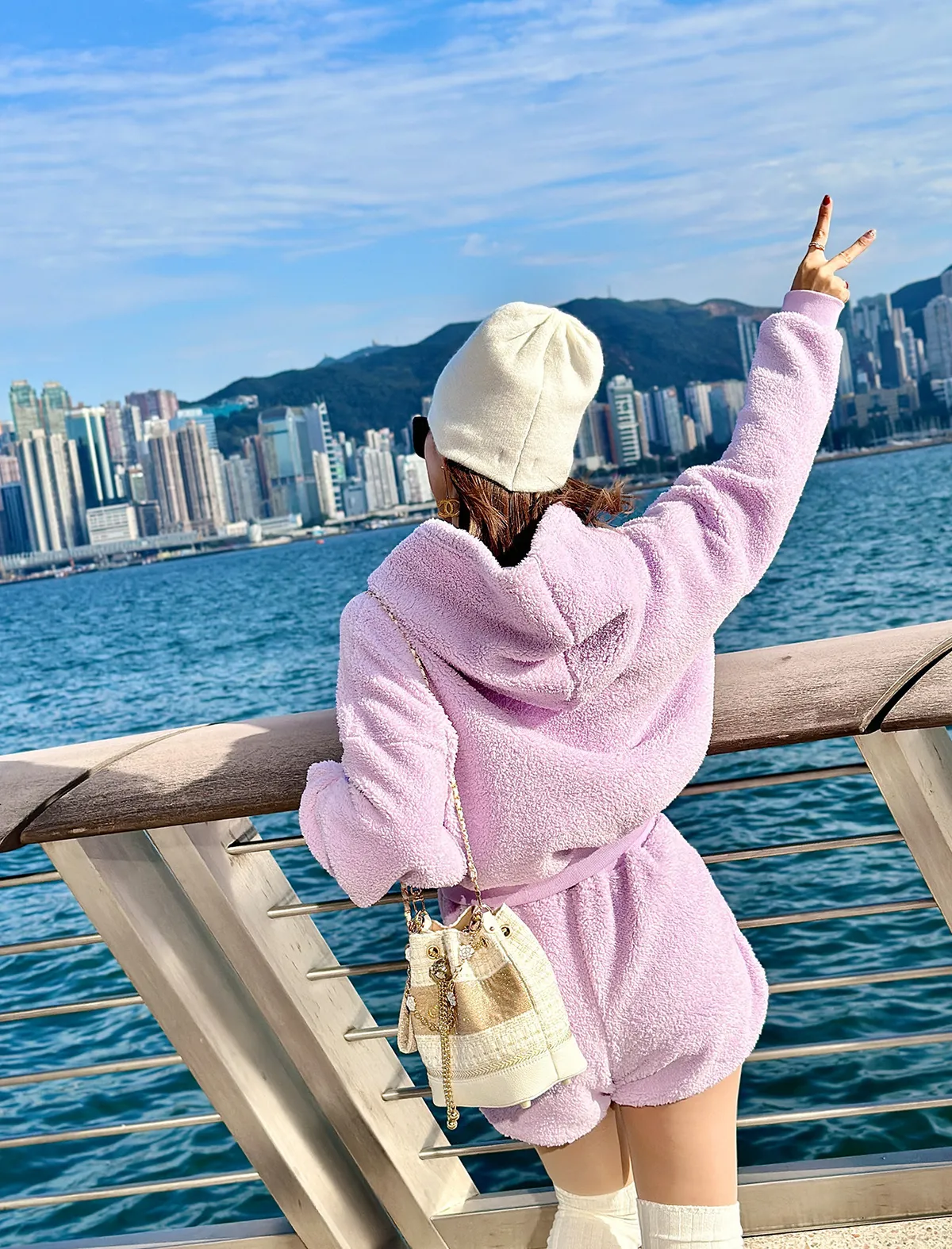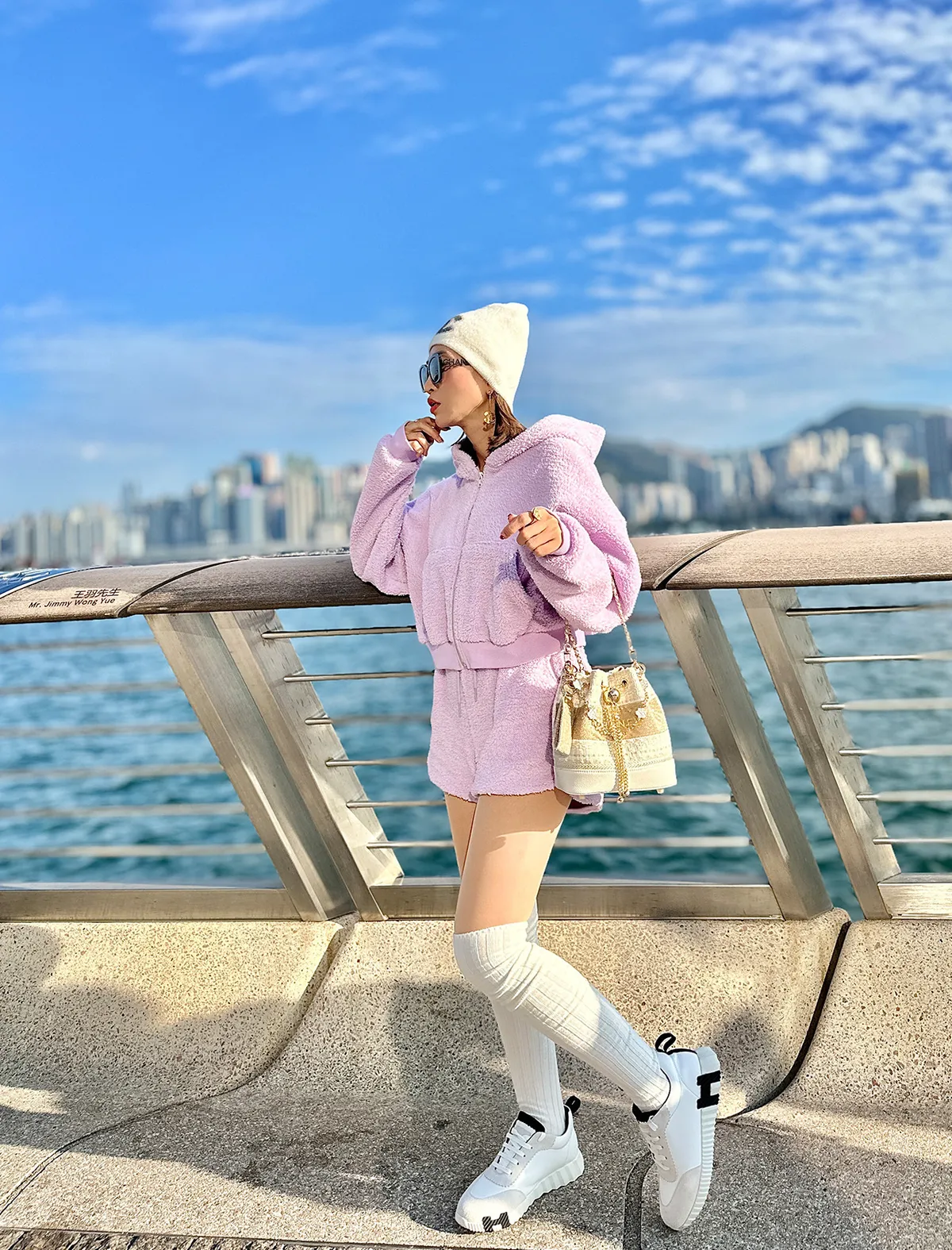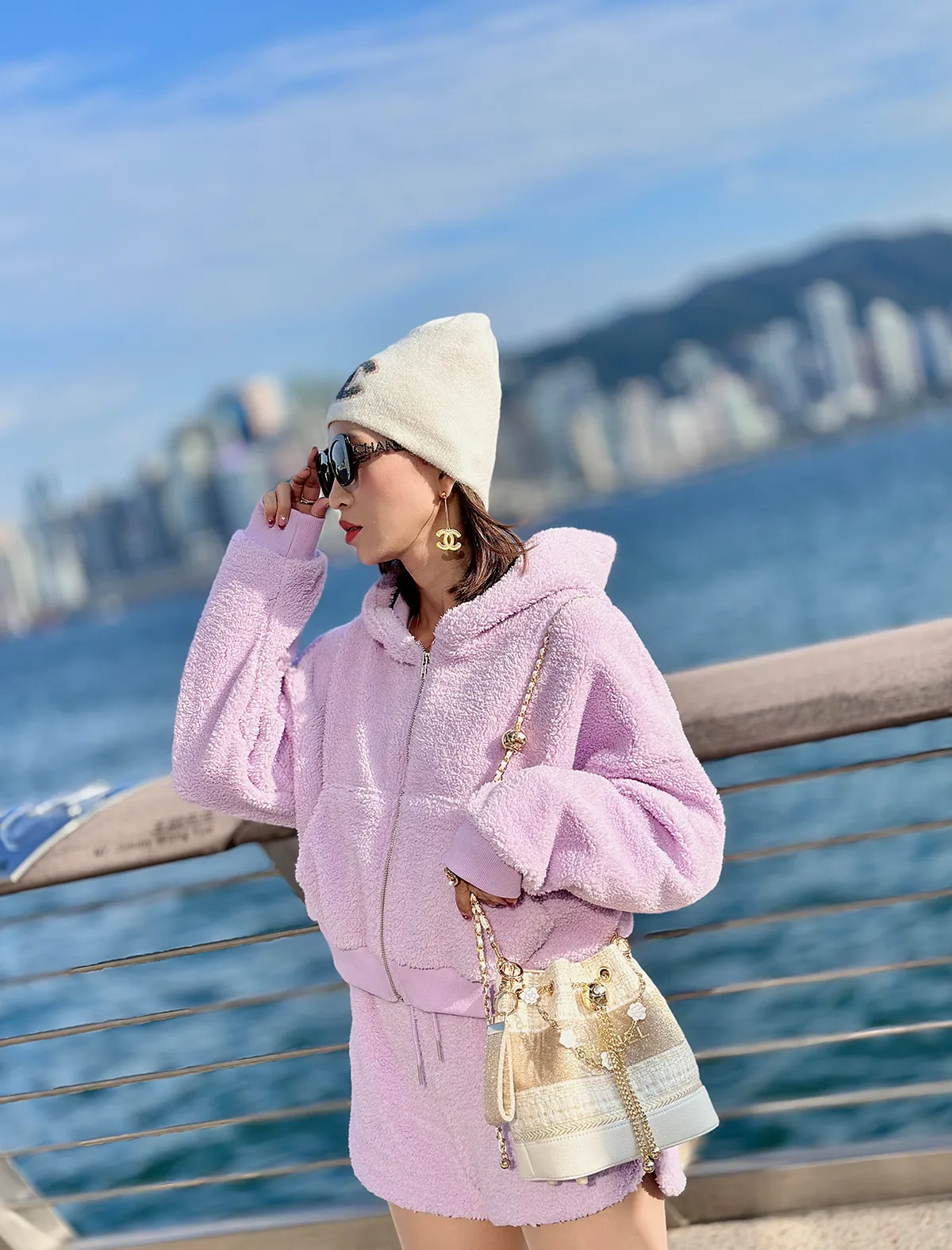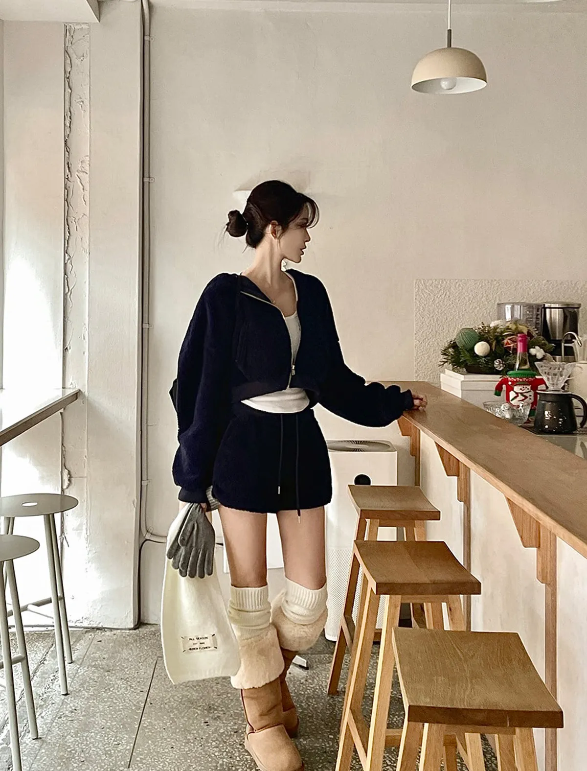 現貨-韓國店家熱賣款 羊羔毛兩件套連帽套裝