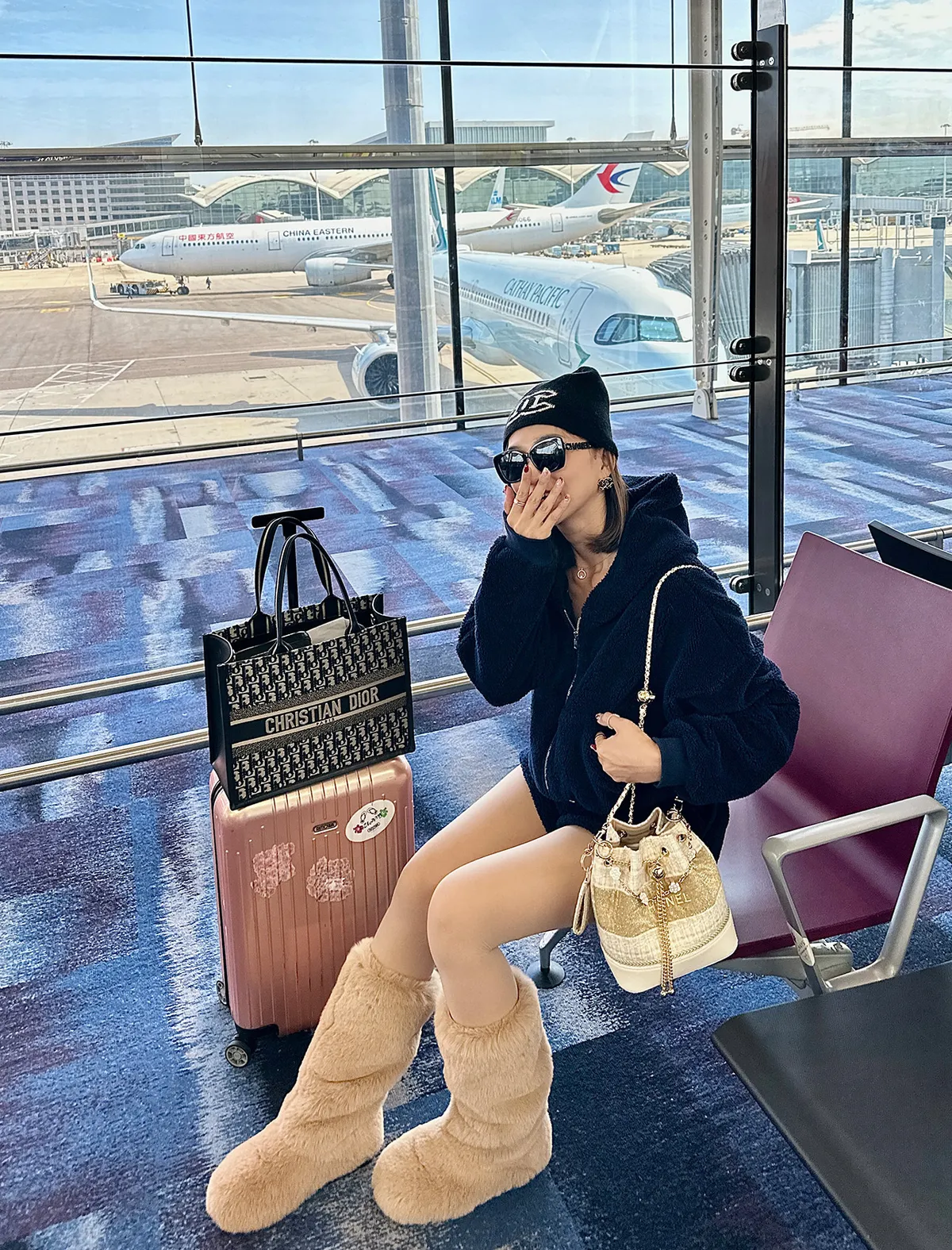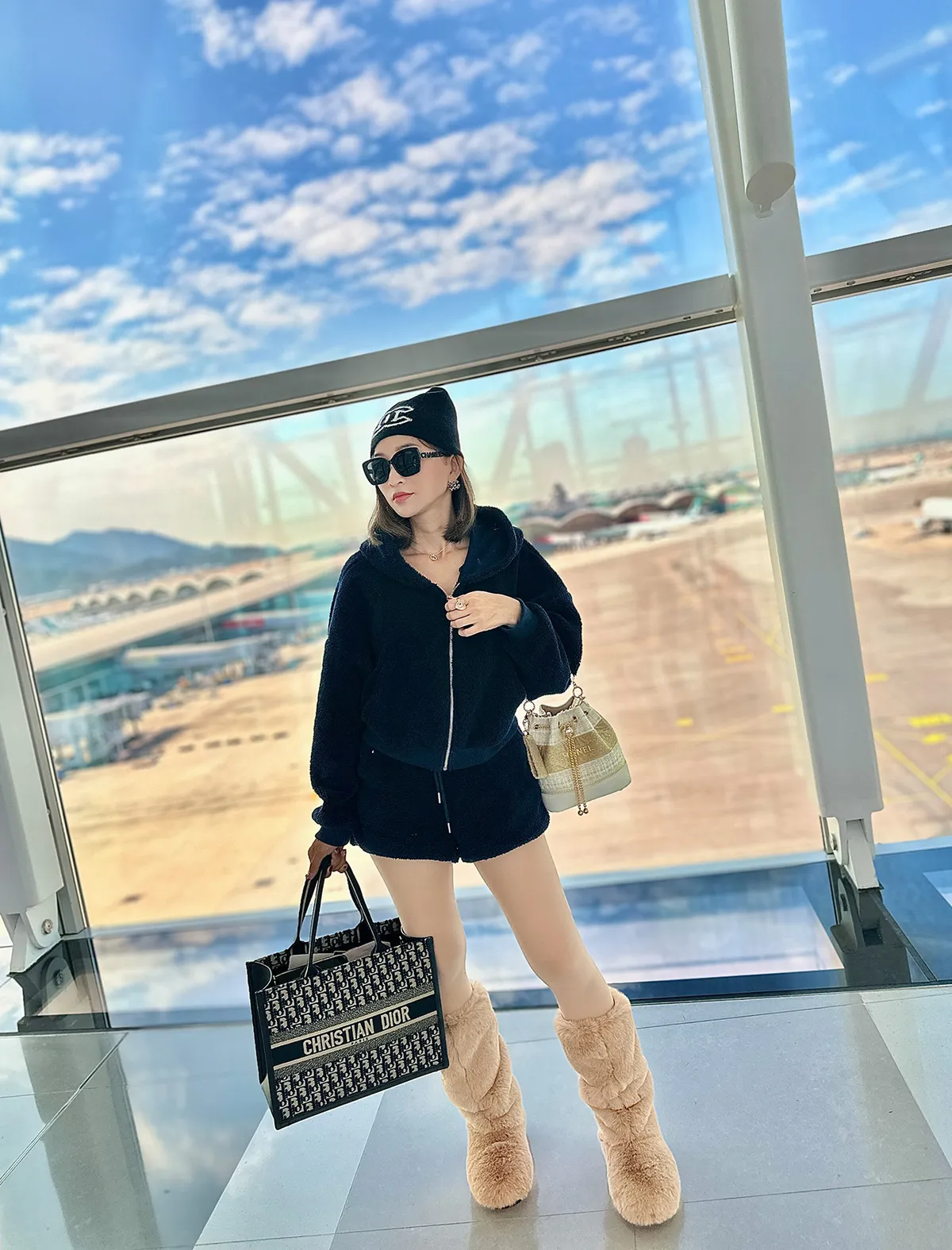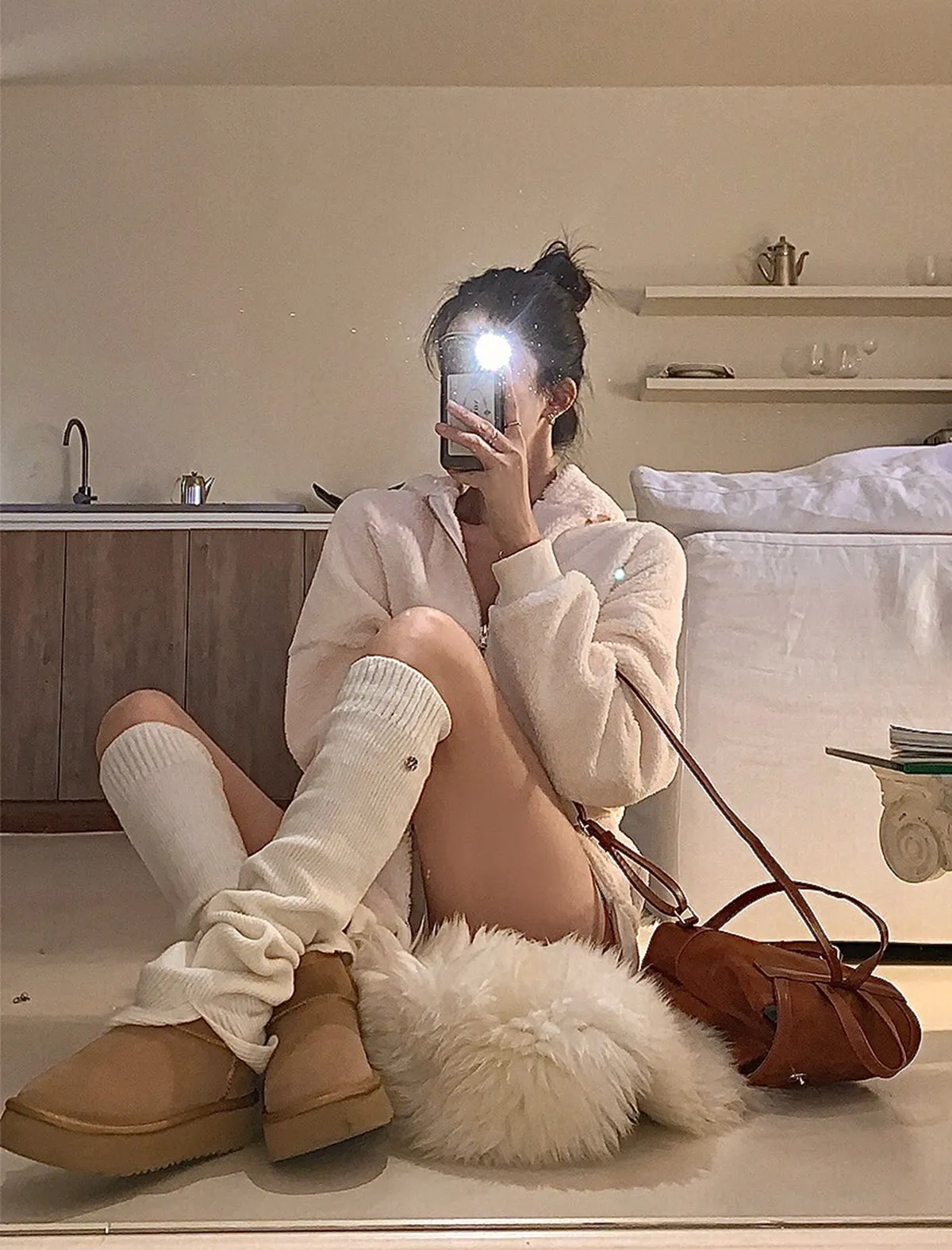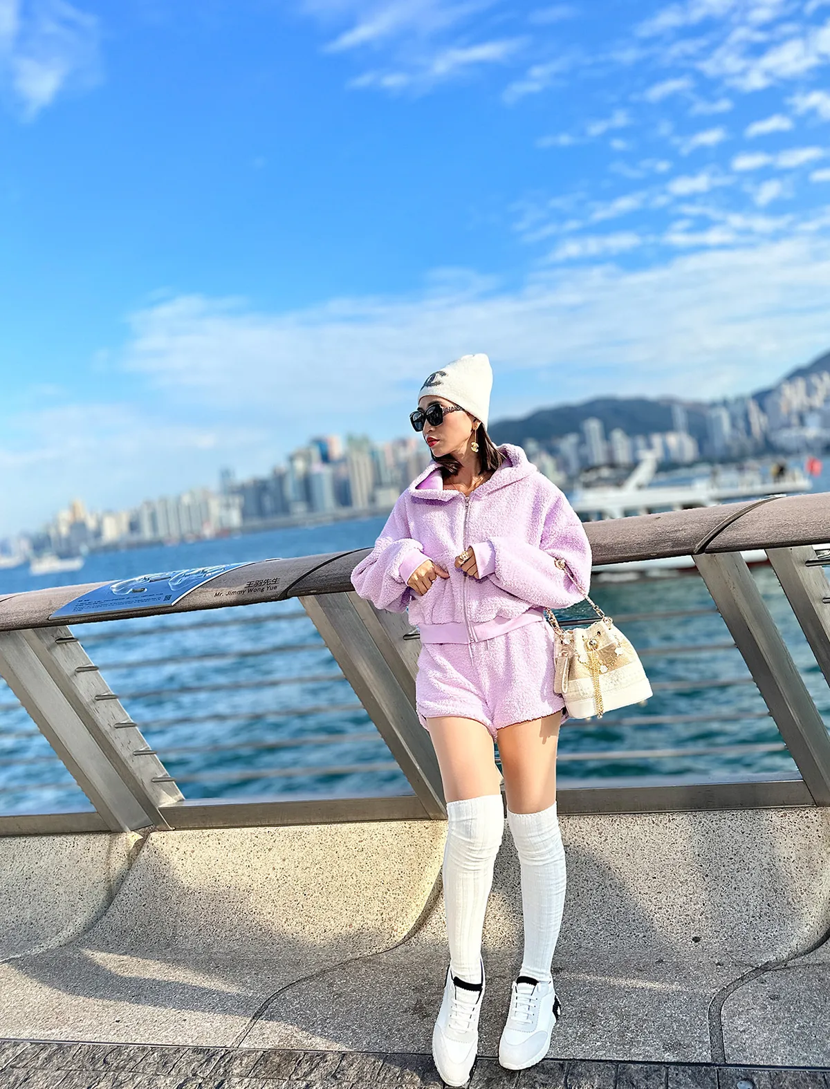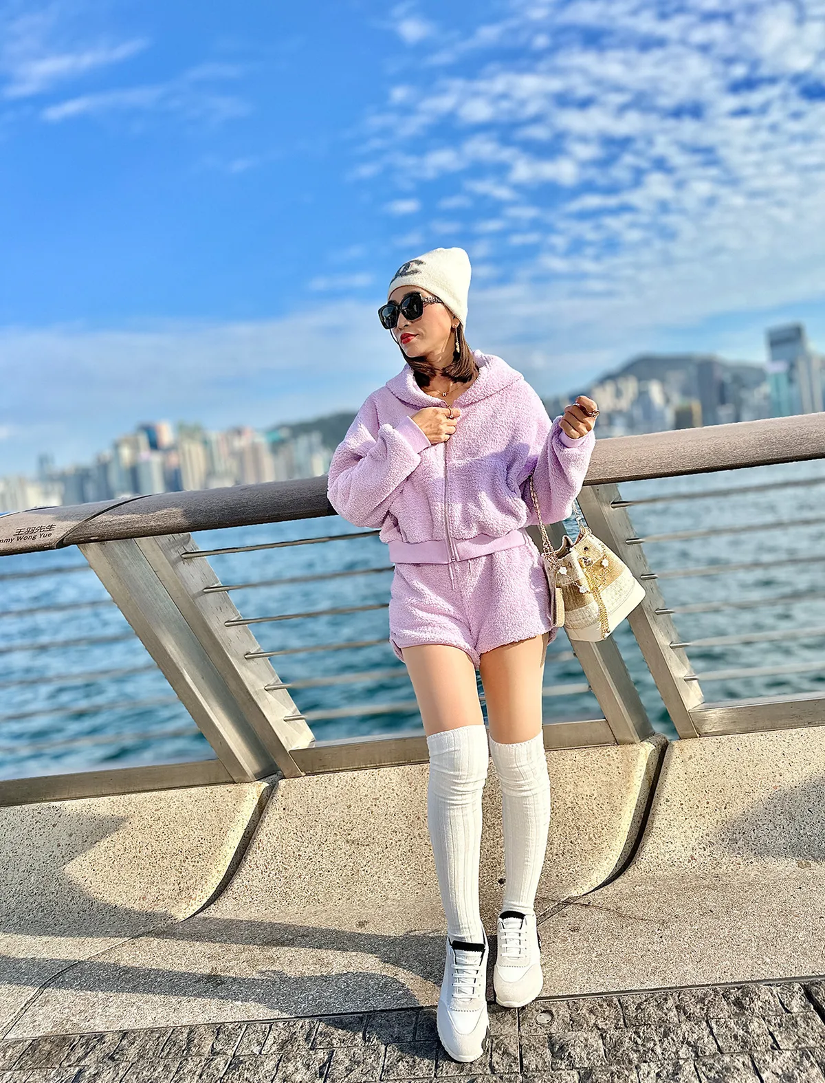 現貨-韓國店家熱賣款 羊羔毛兩件套連帽套裝