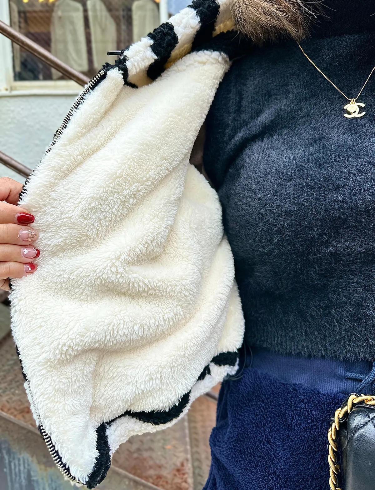 現貨-韓國網拍款 暖呼呼羊羔毛連帽外套