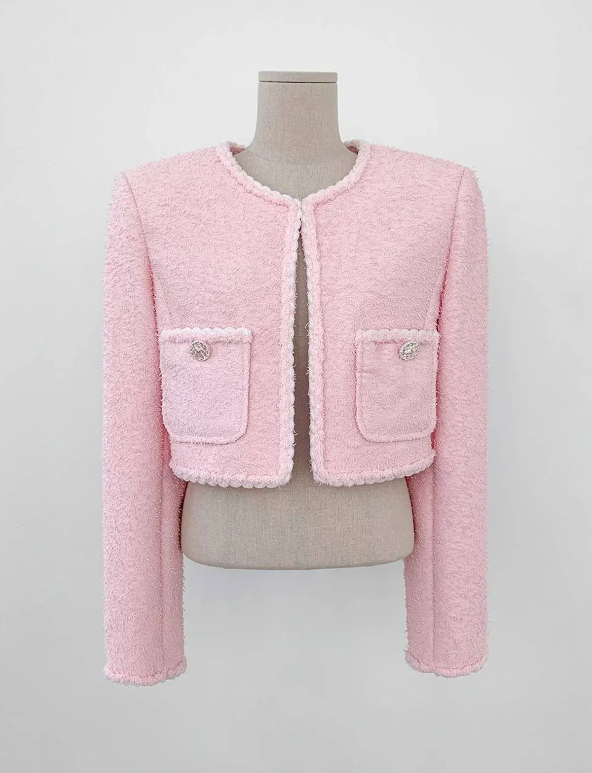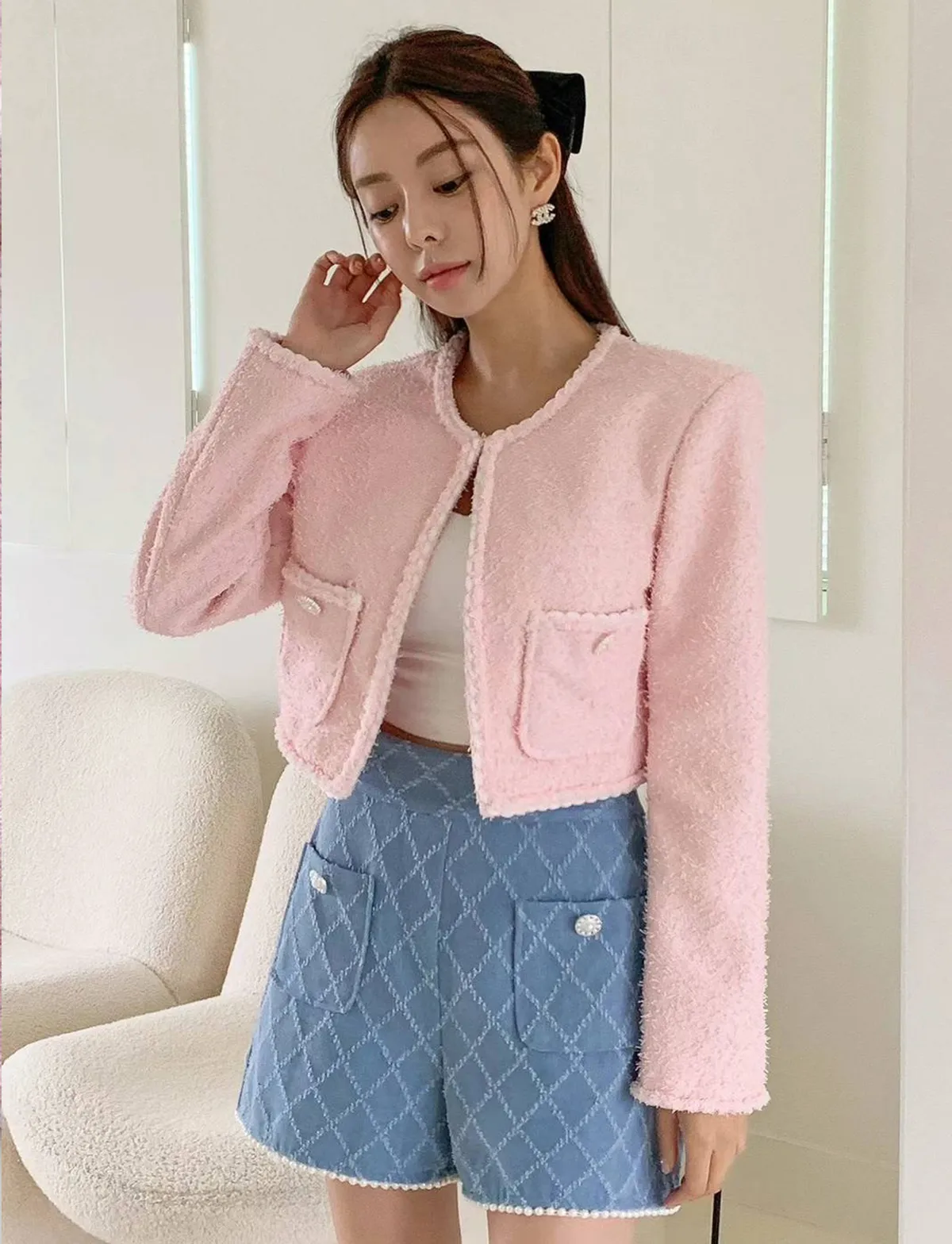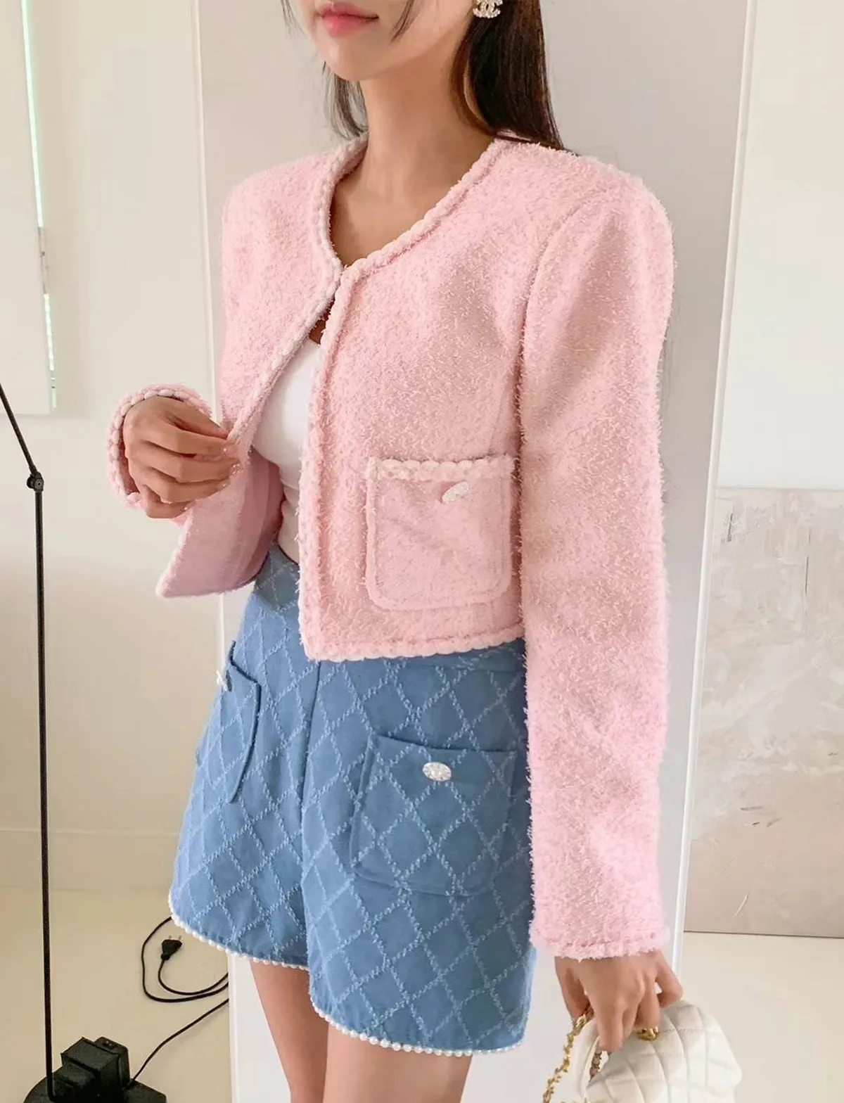 現貨-韓國 小香風嬌嫩粉 西裝口袋外套