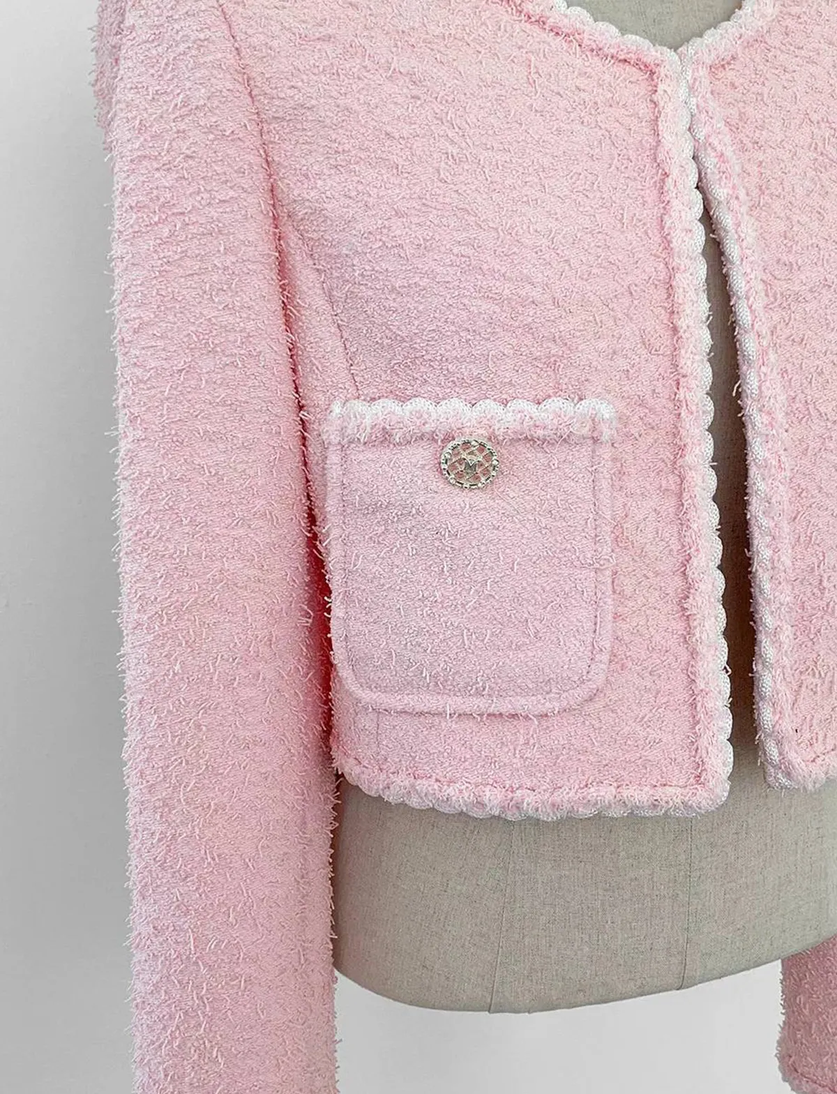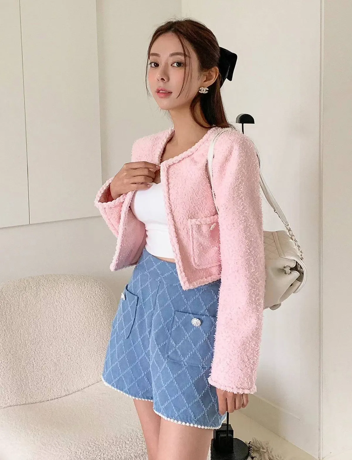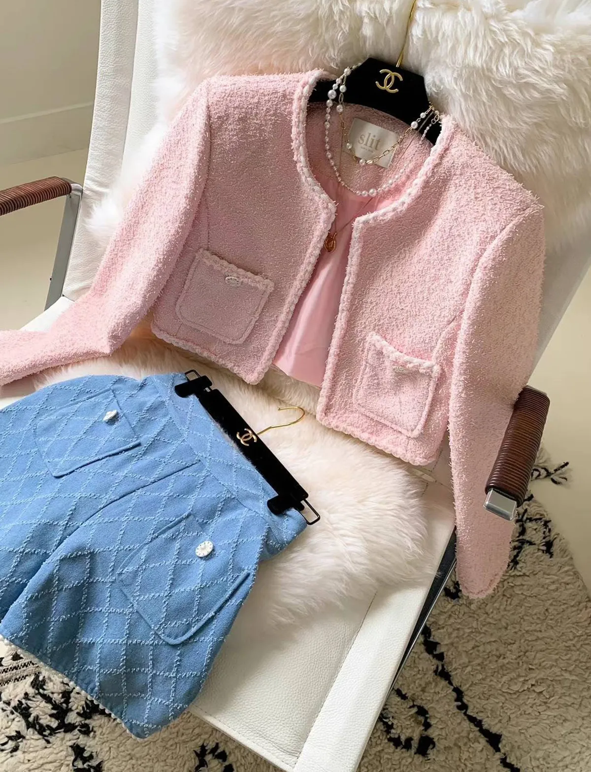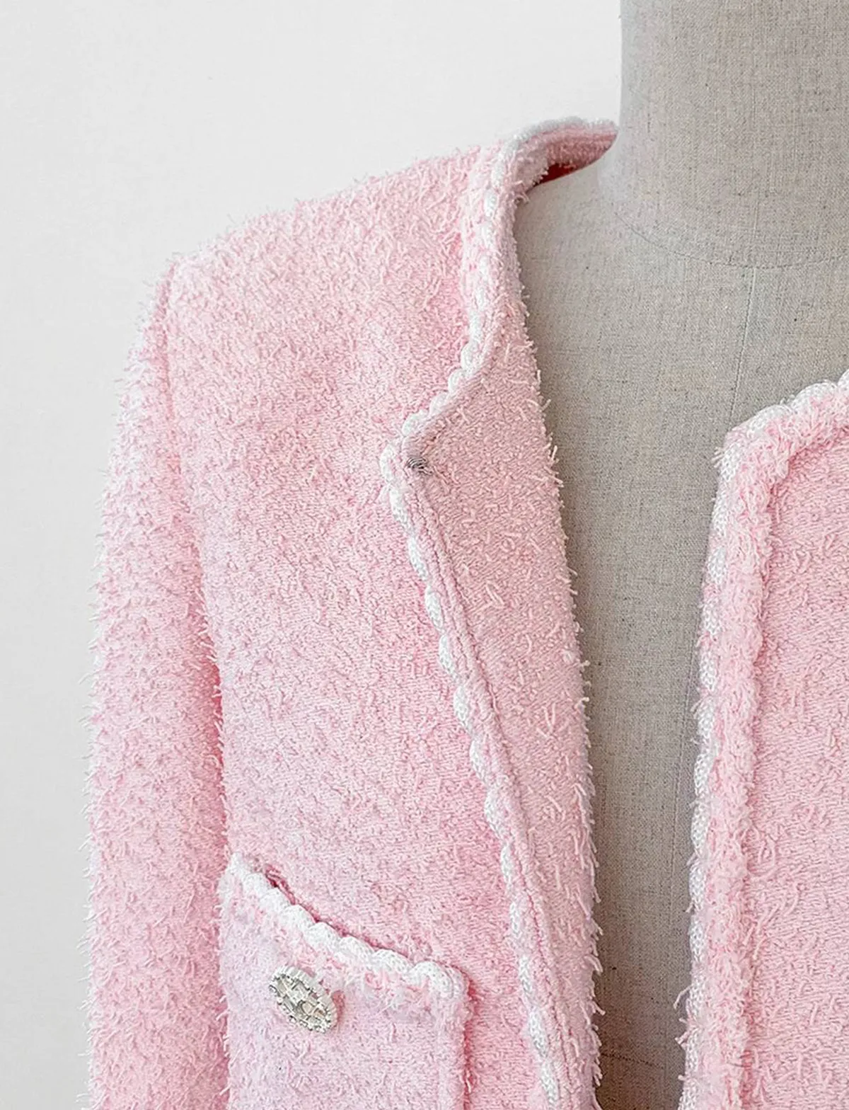 現貨-韓國 小香風嬌嫩粉 西裝口袋外套