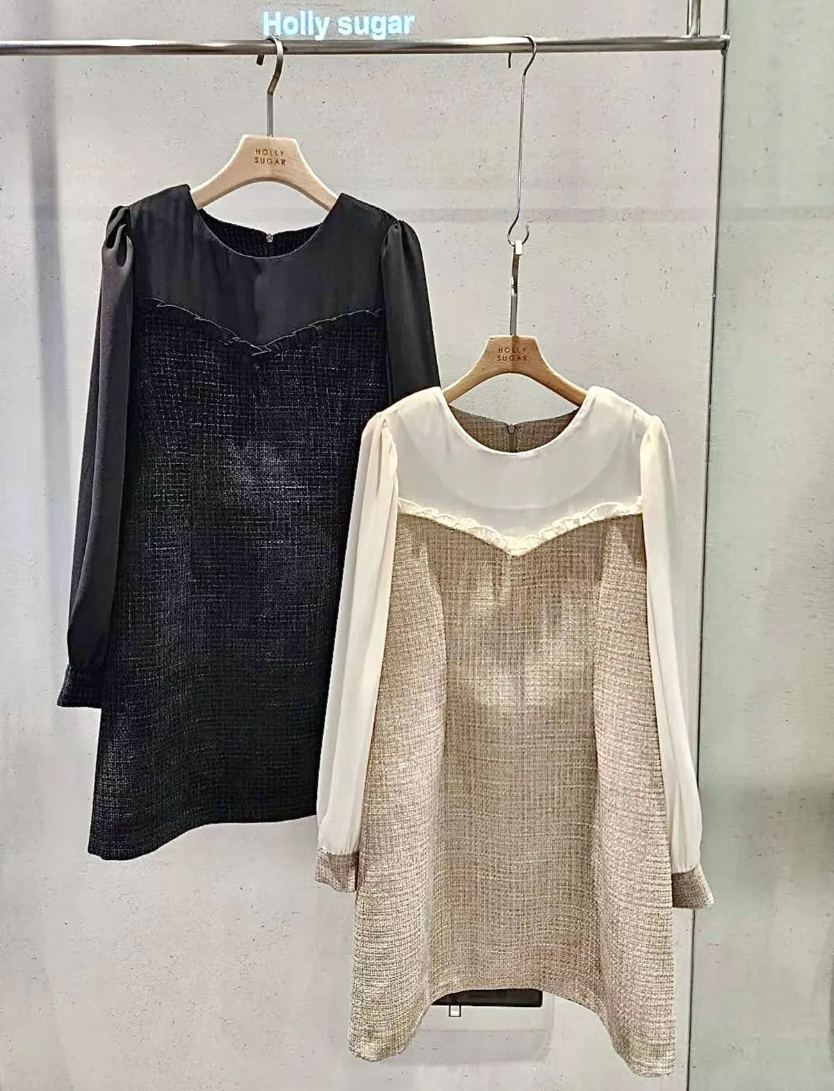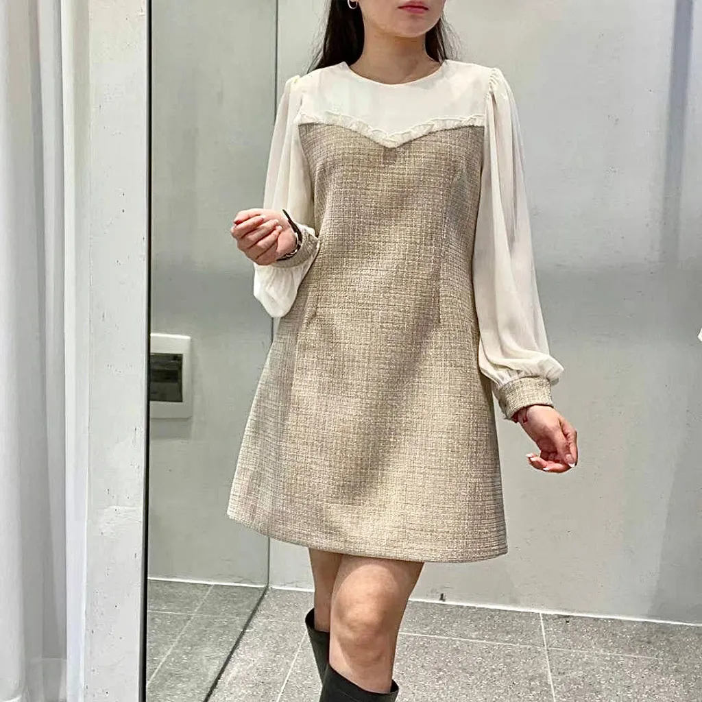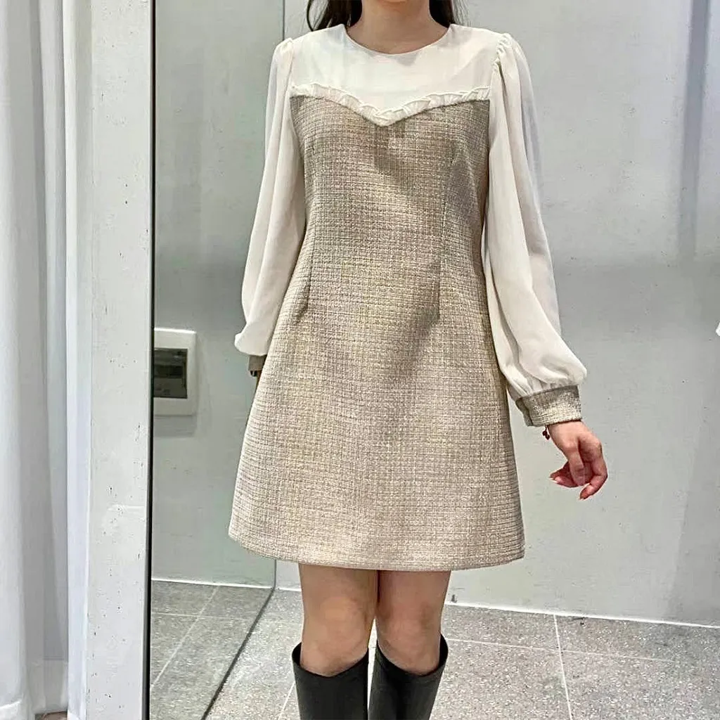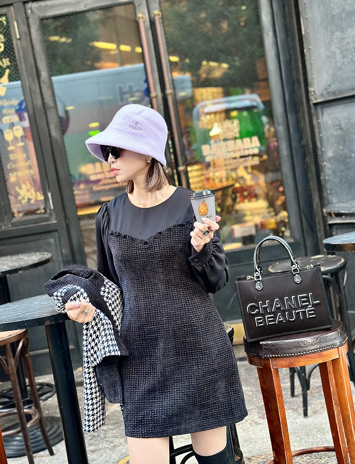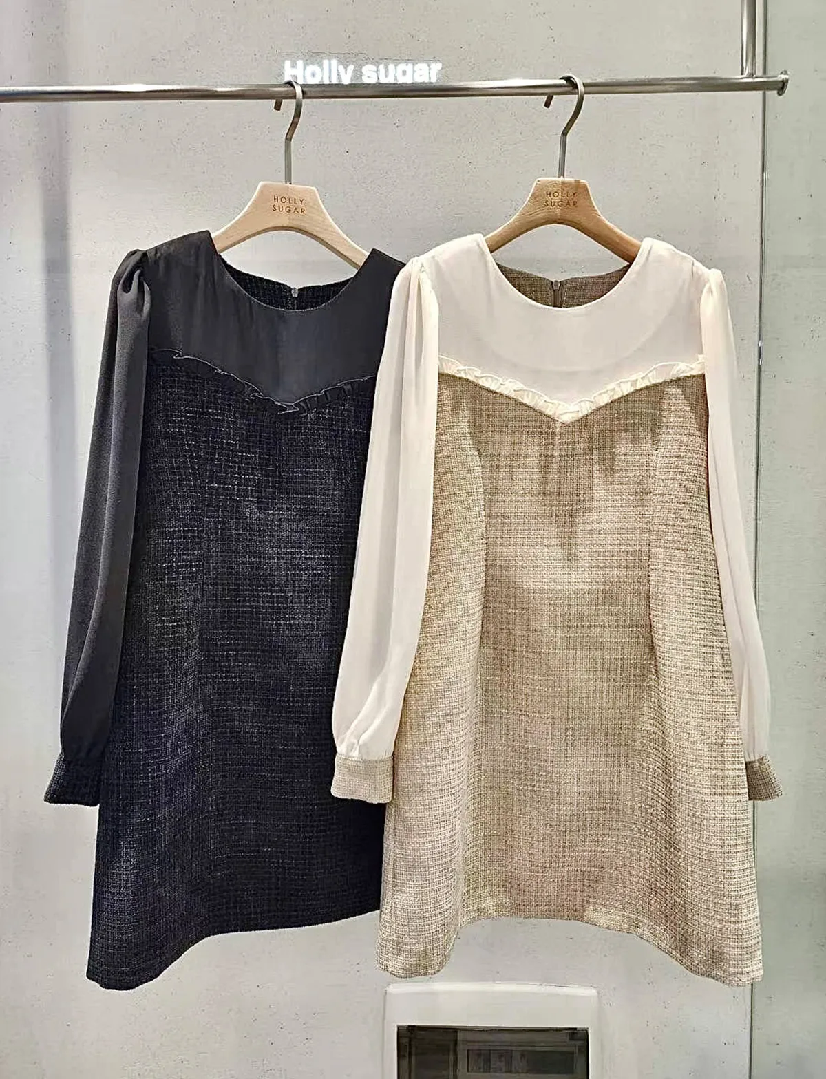 現貨-韓國 小香風透膚小性感毛呢洋裝