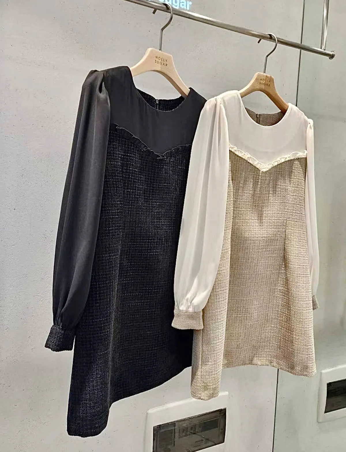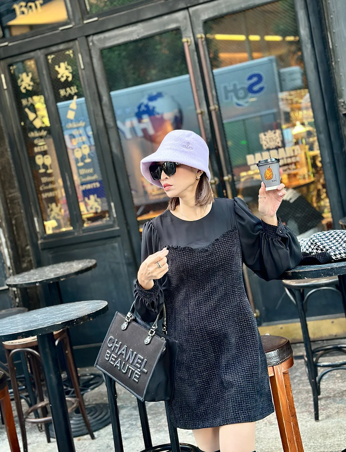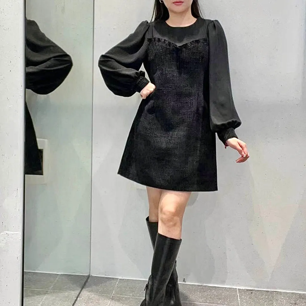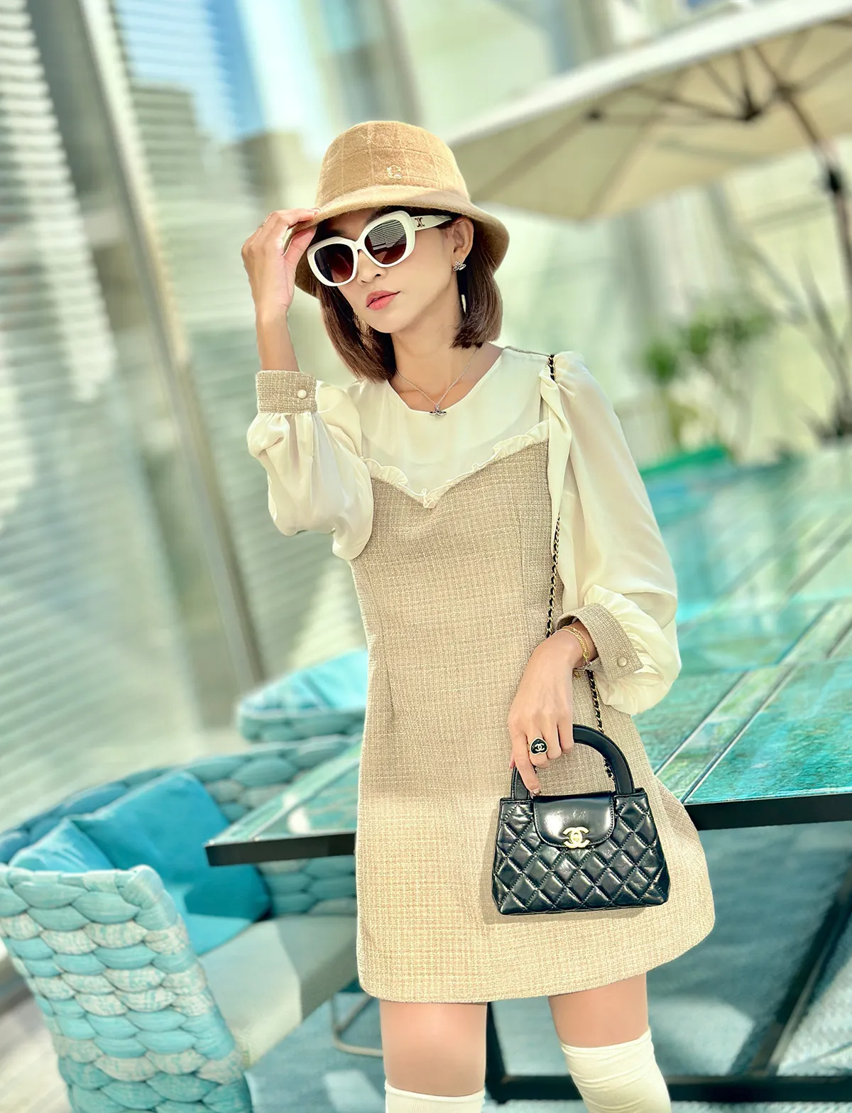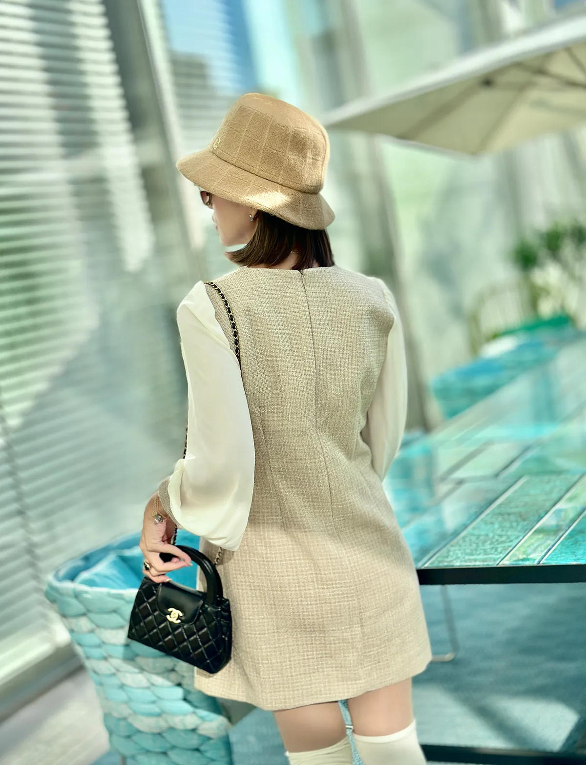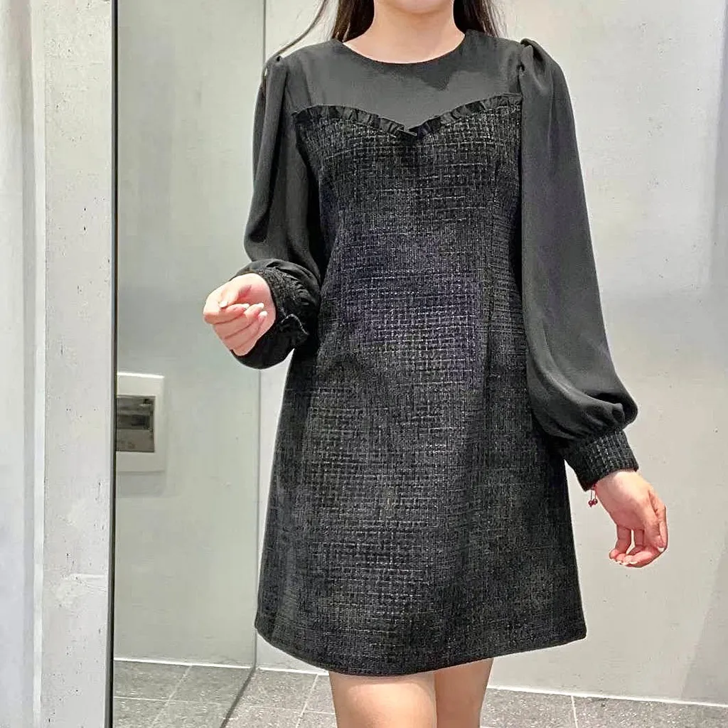 現貨-韓國 小香風透膚小性感毛呢洋裝