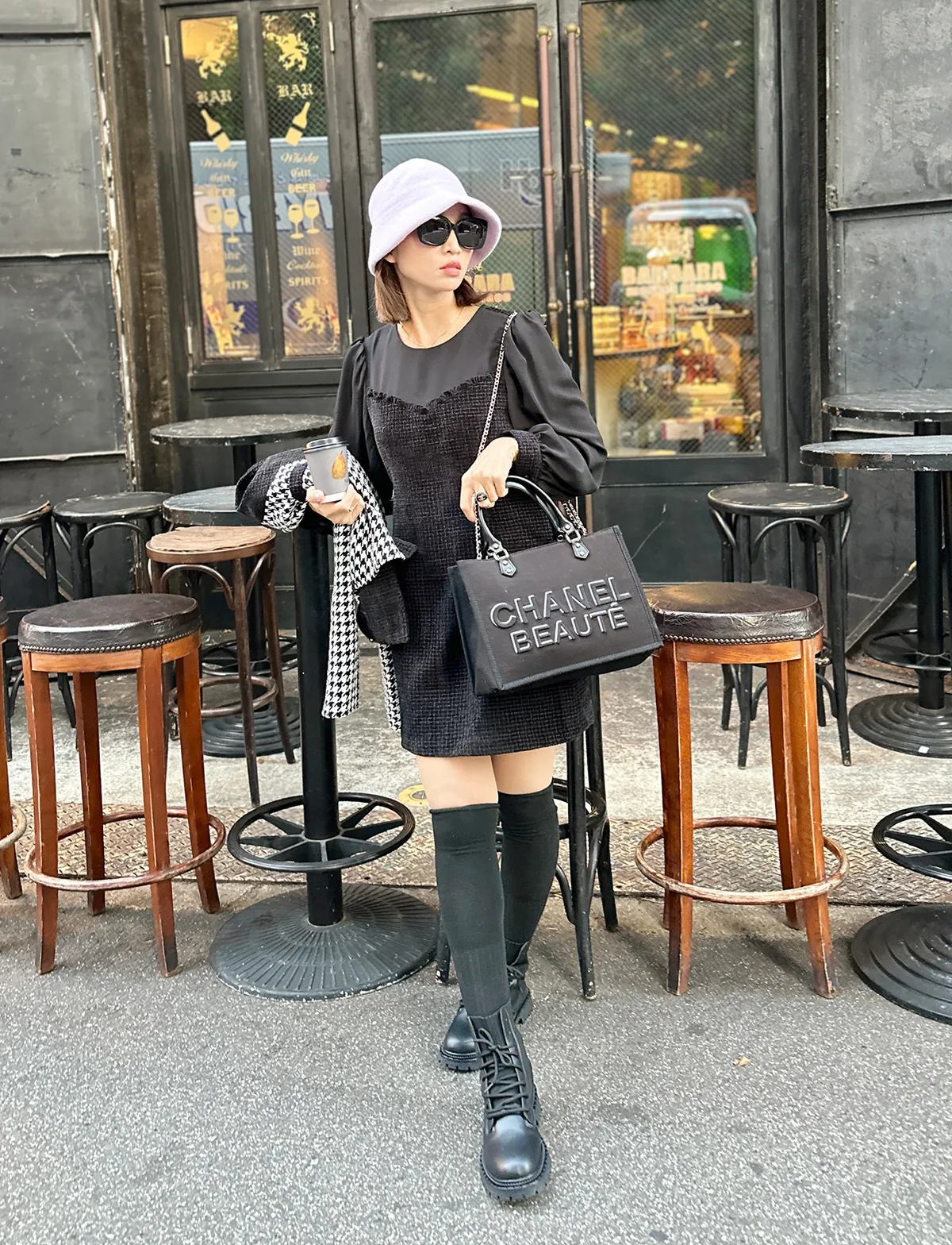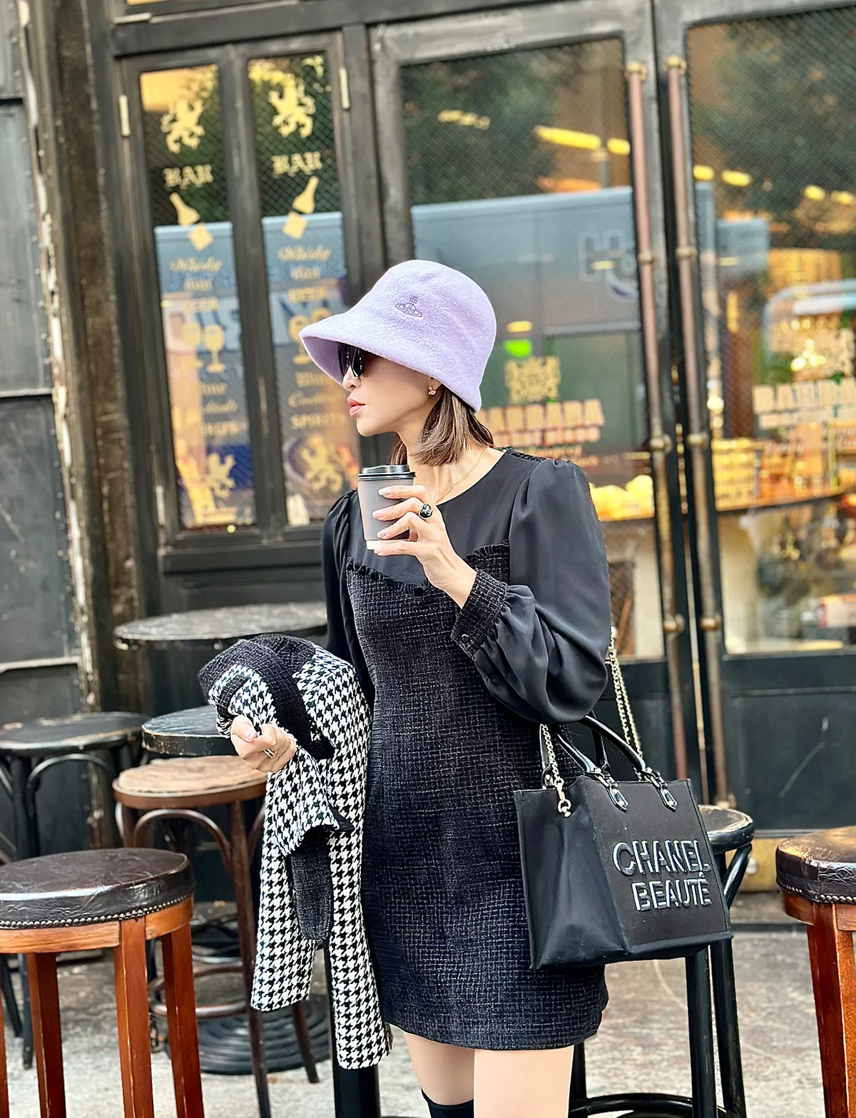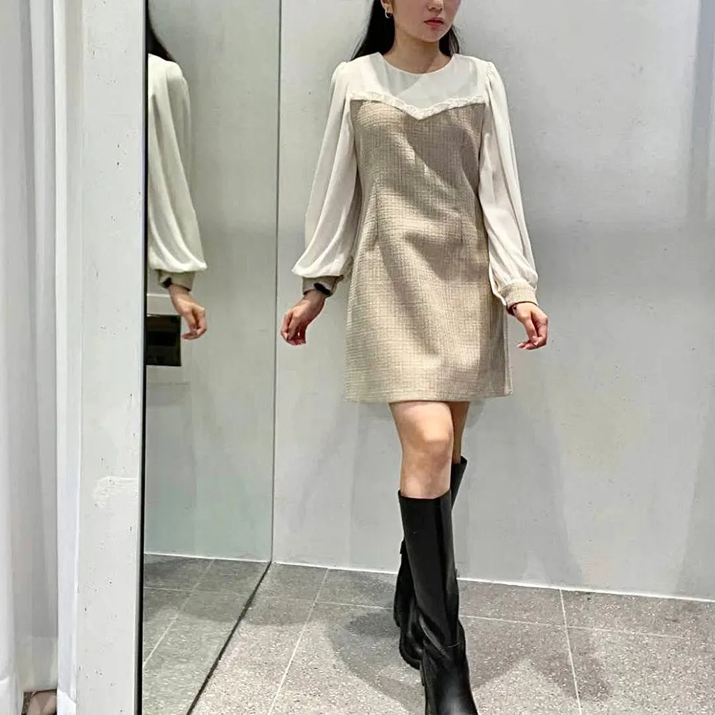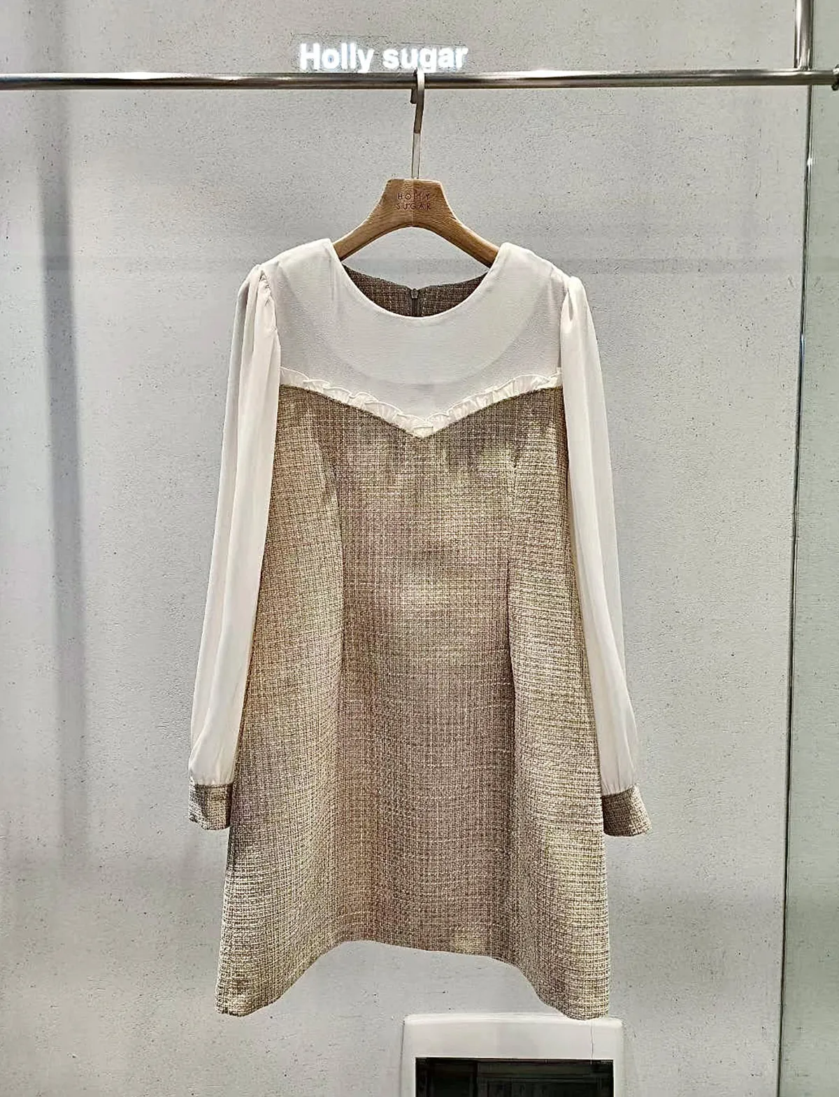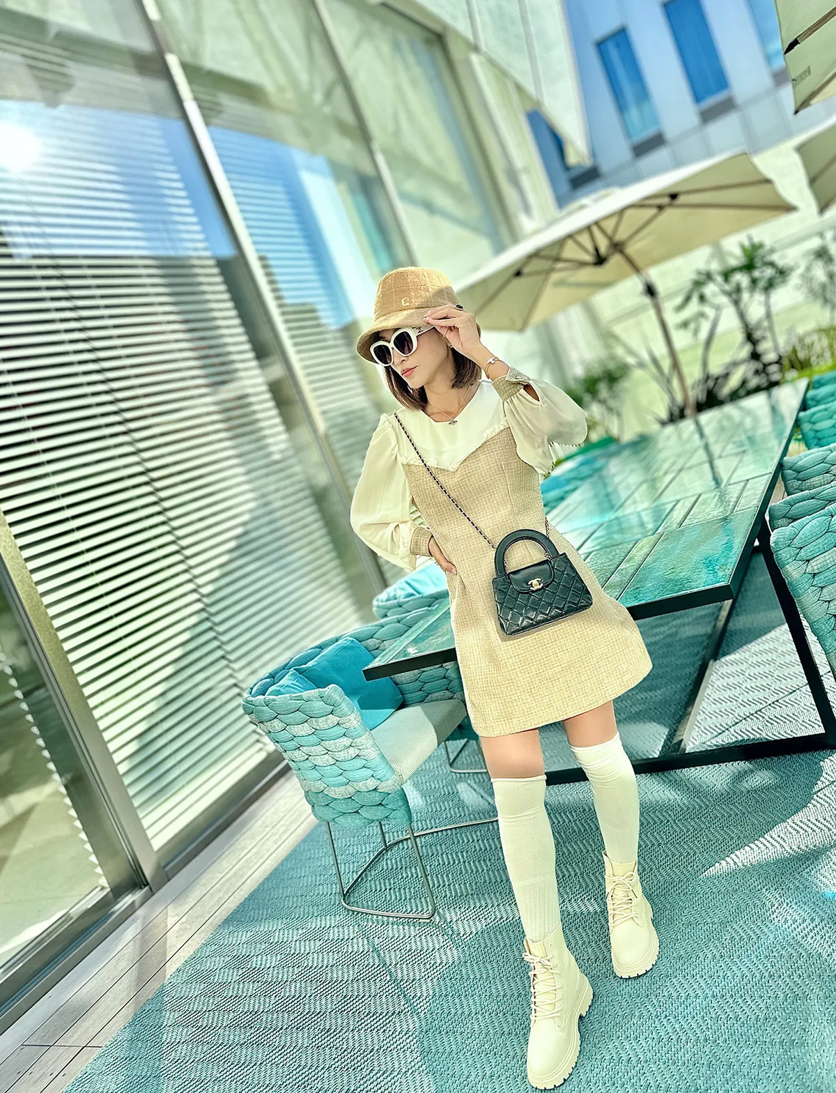 現貨-韓國 小香風透膚小性感毛呢洋裝
