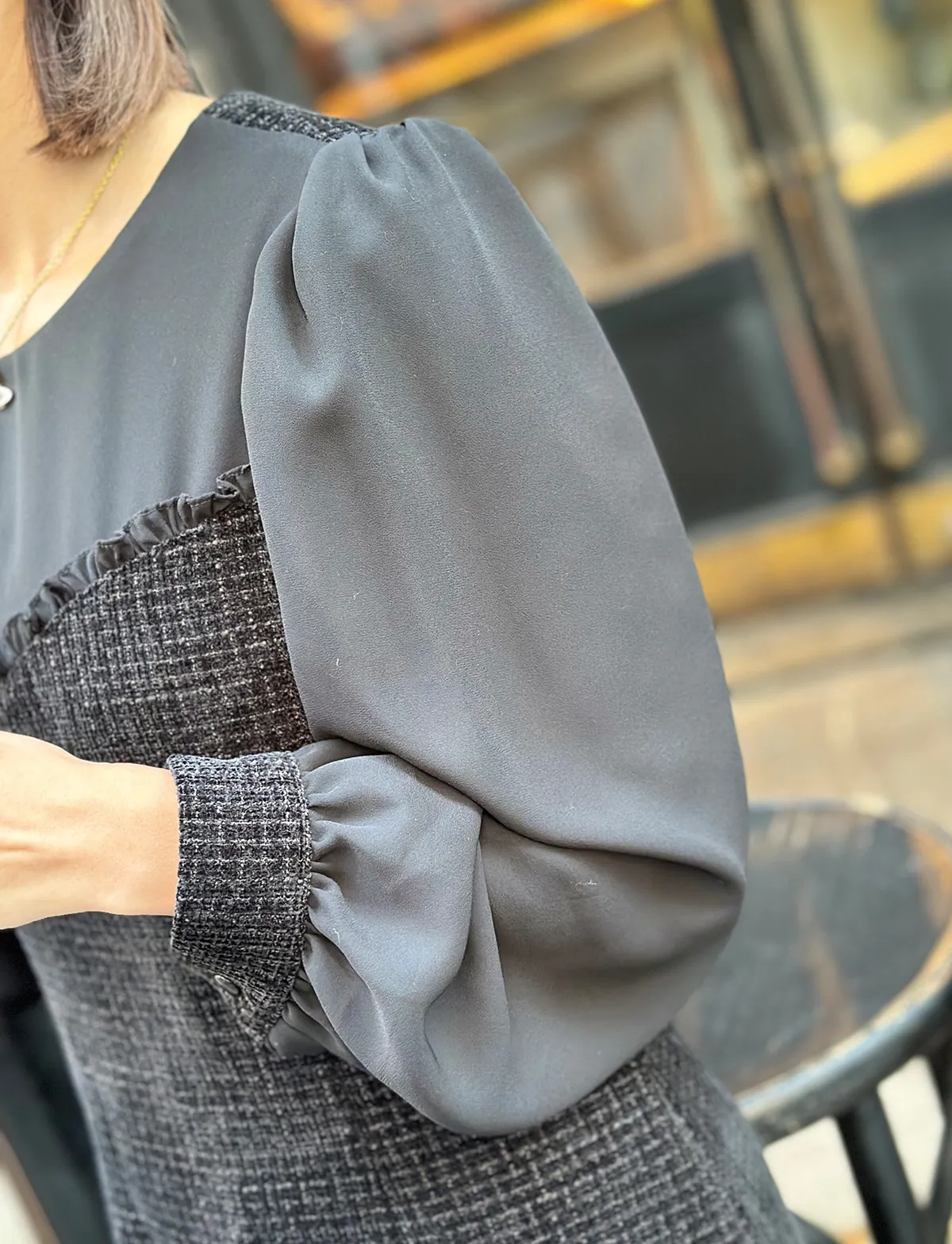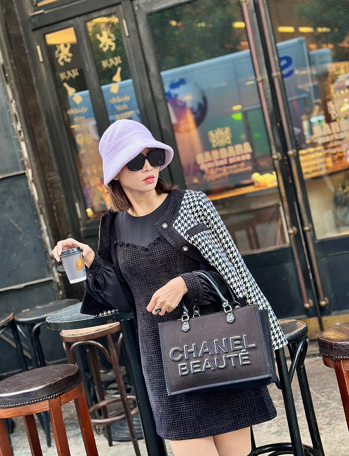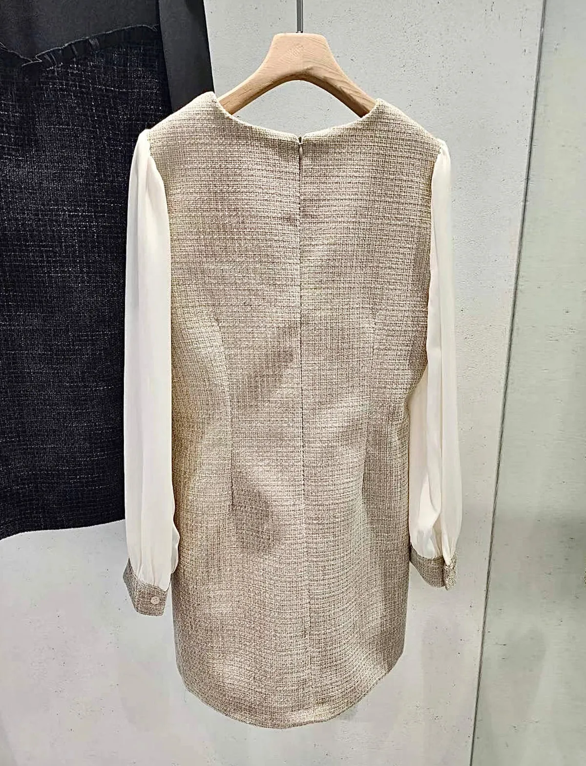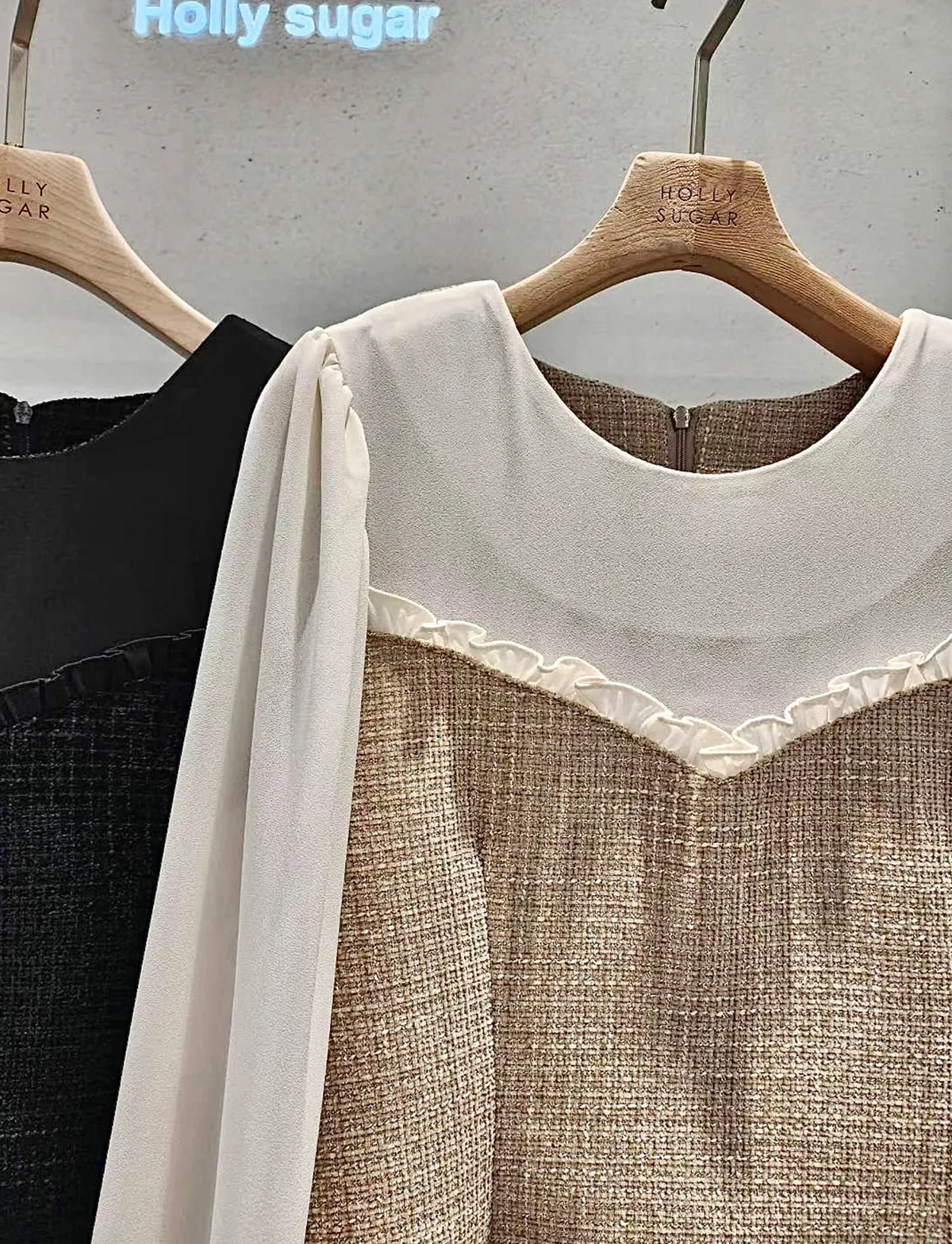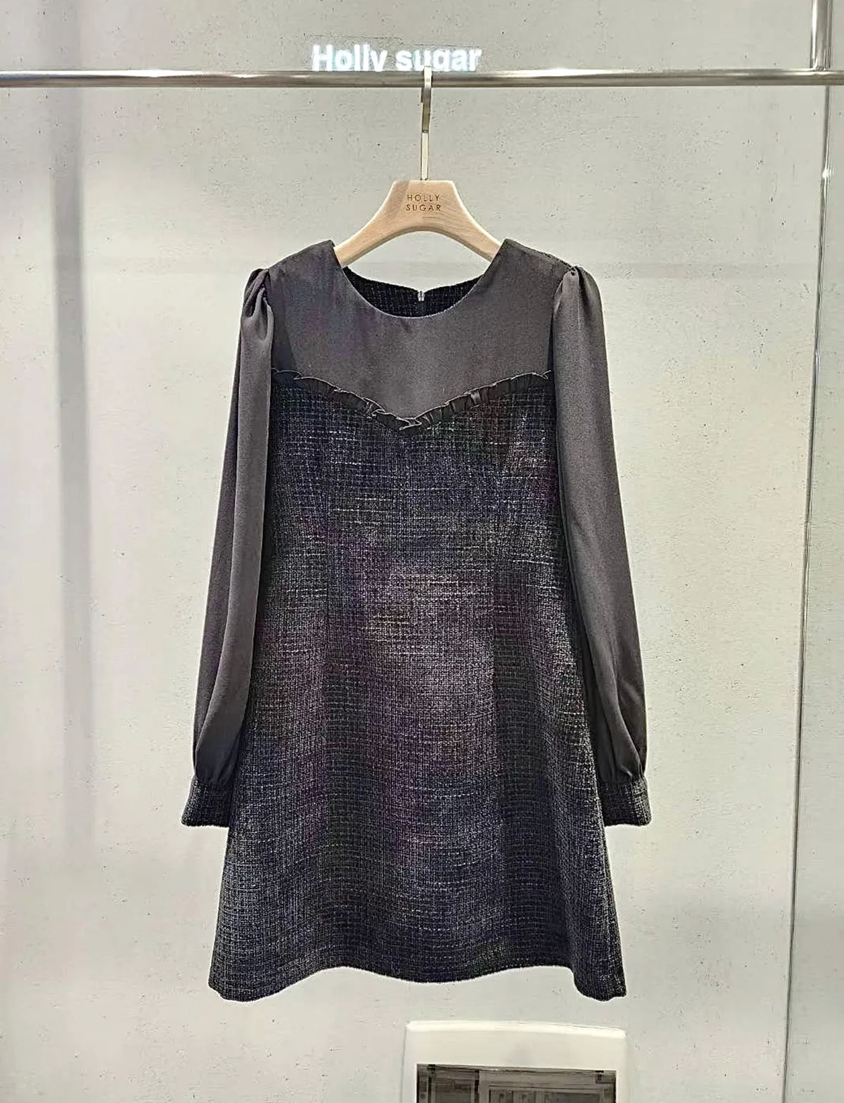 現貨-韓國 小香風透膚小性感毛呢洋裝