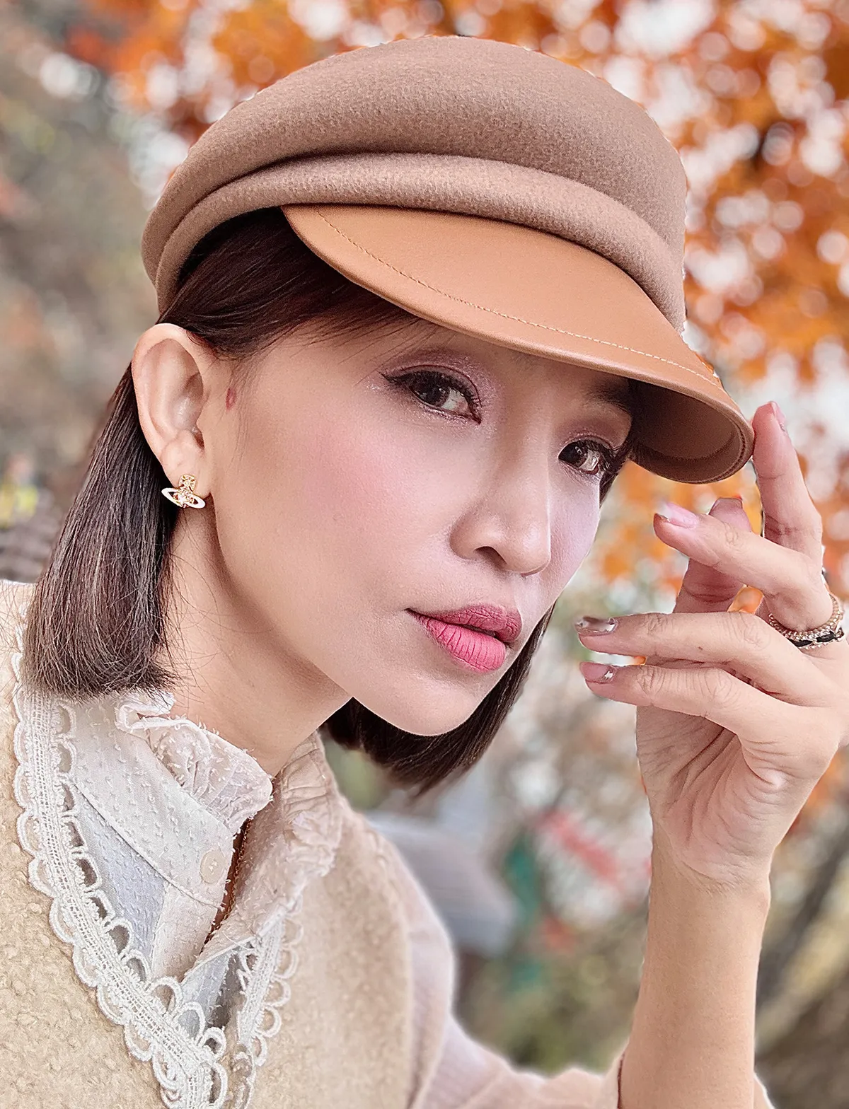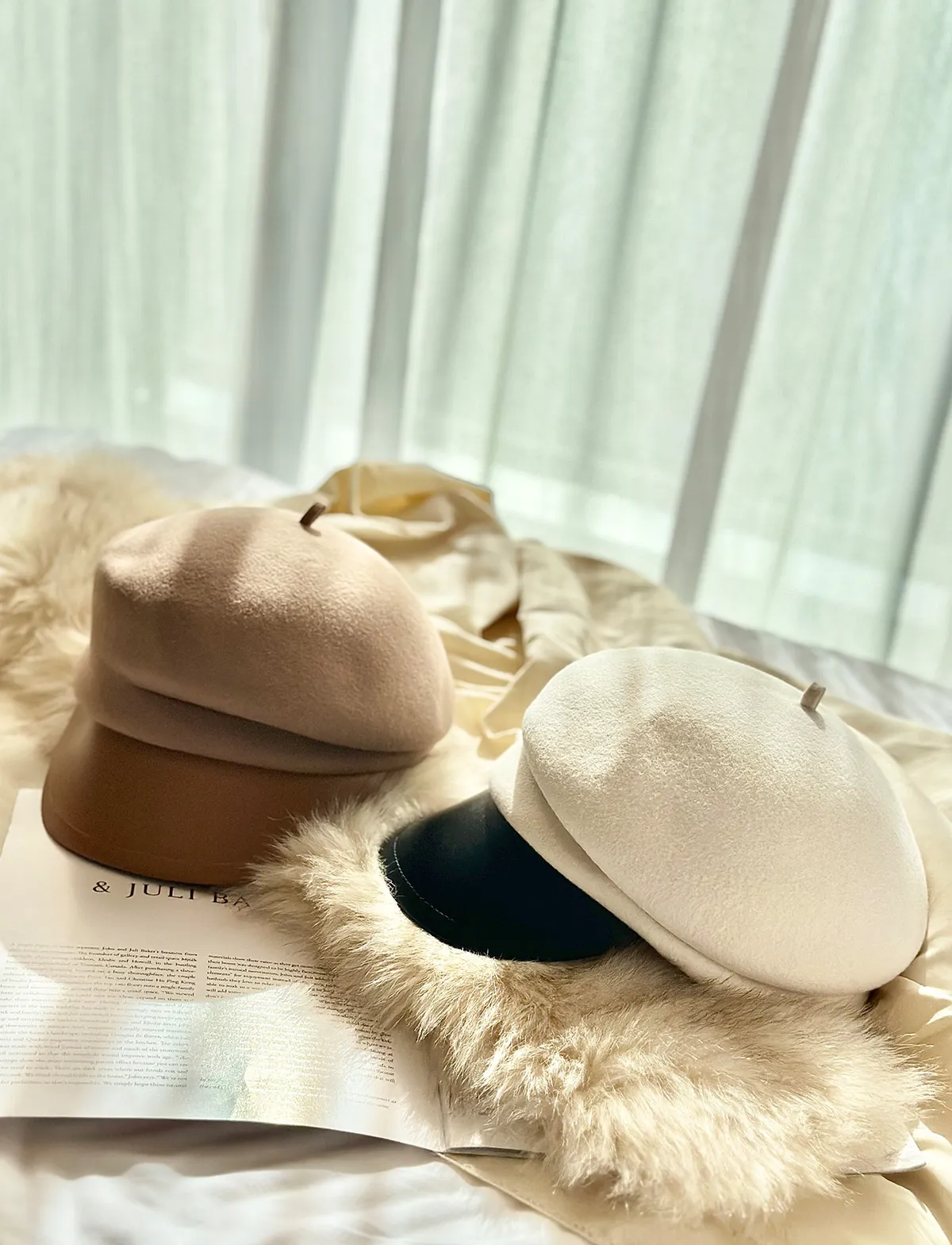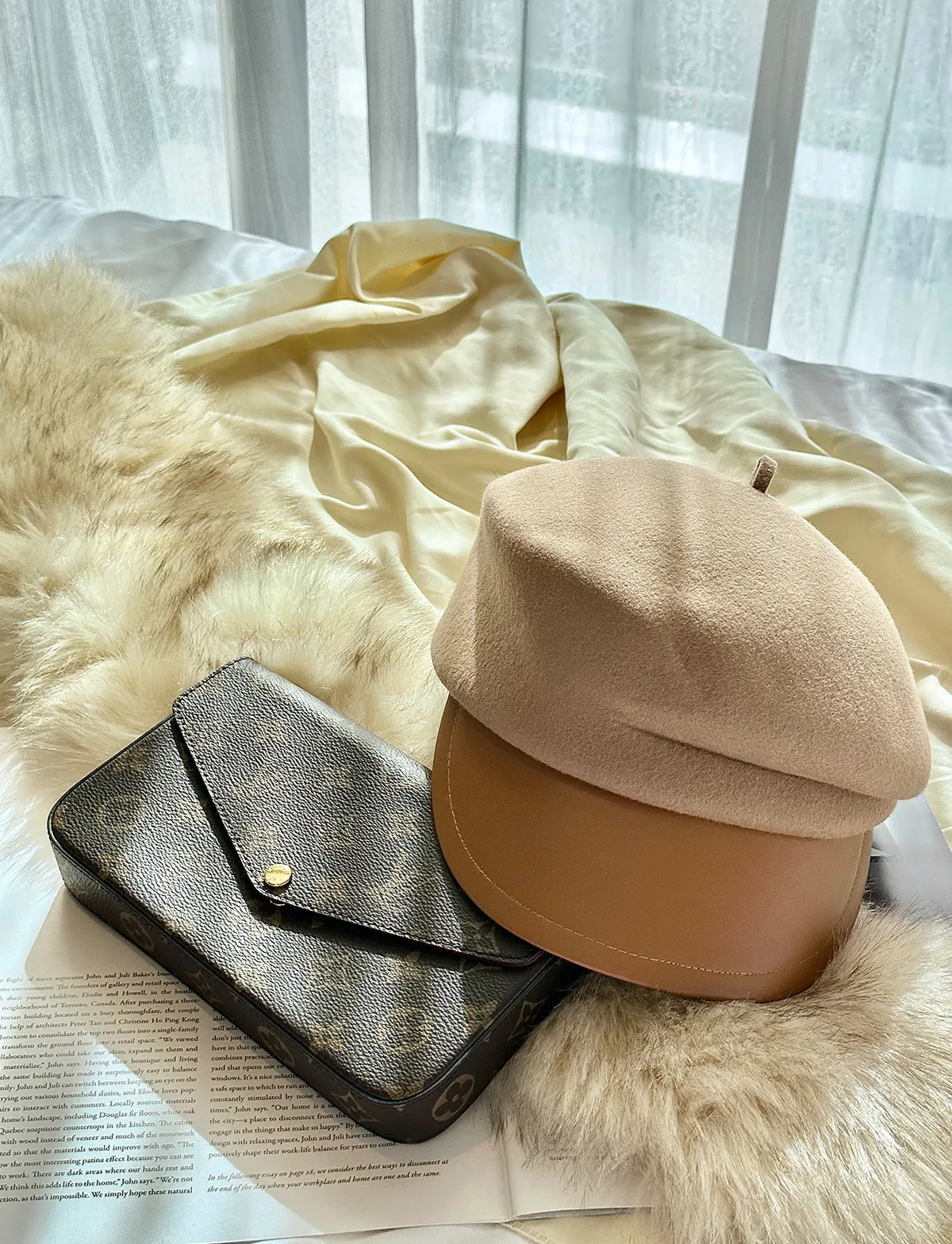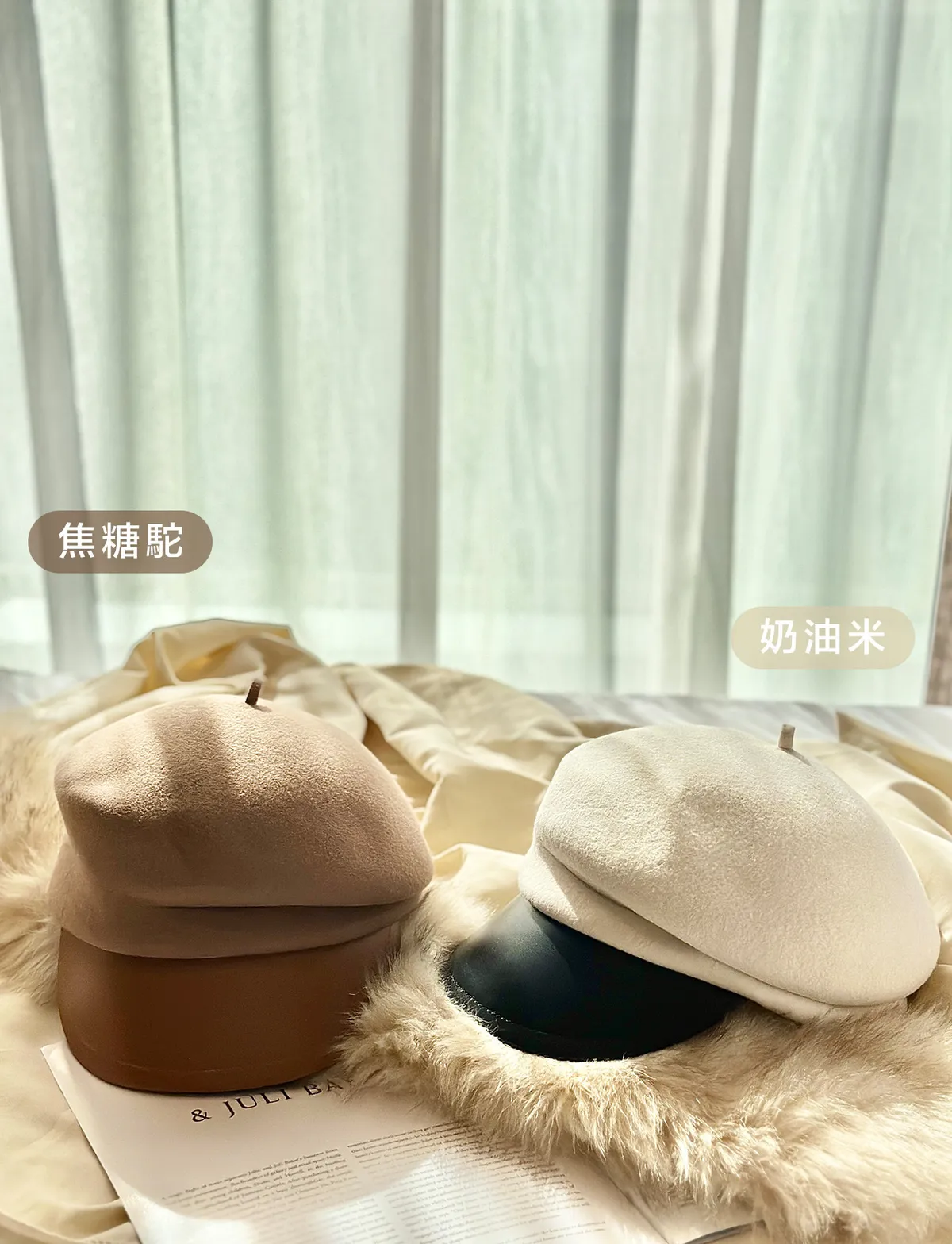 現貨-韓國 巨小臉羊毛X皮革報童帽(共兩色)