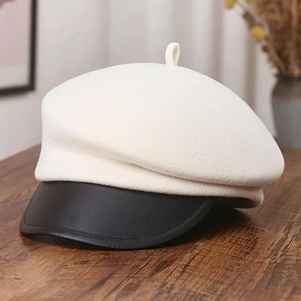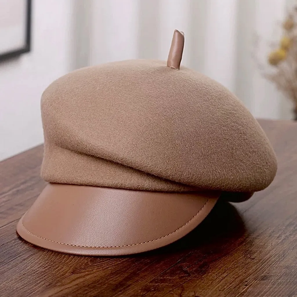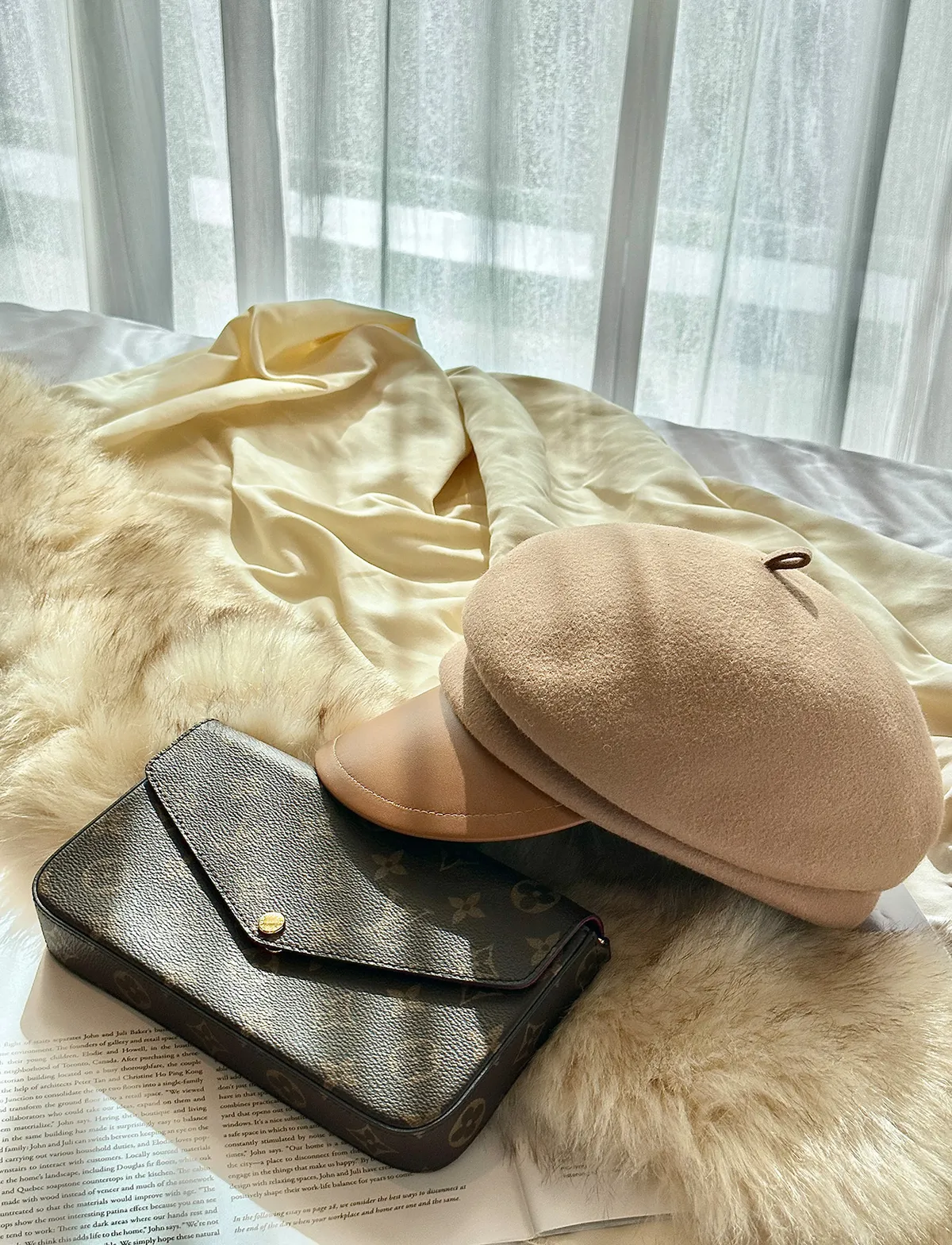 現貨-韓國 巨小臉羊毛X皮革報童帽(共兩色)