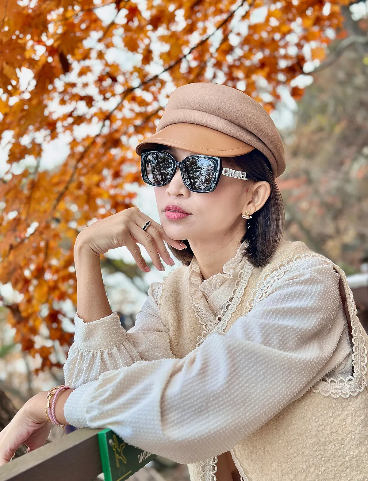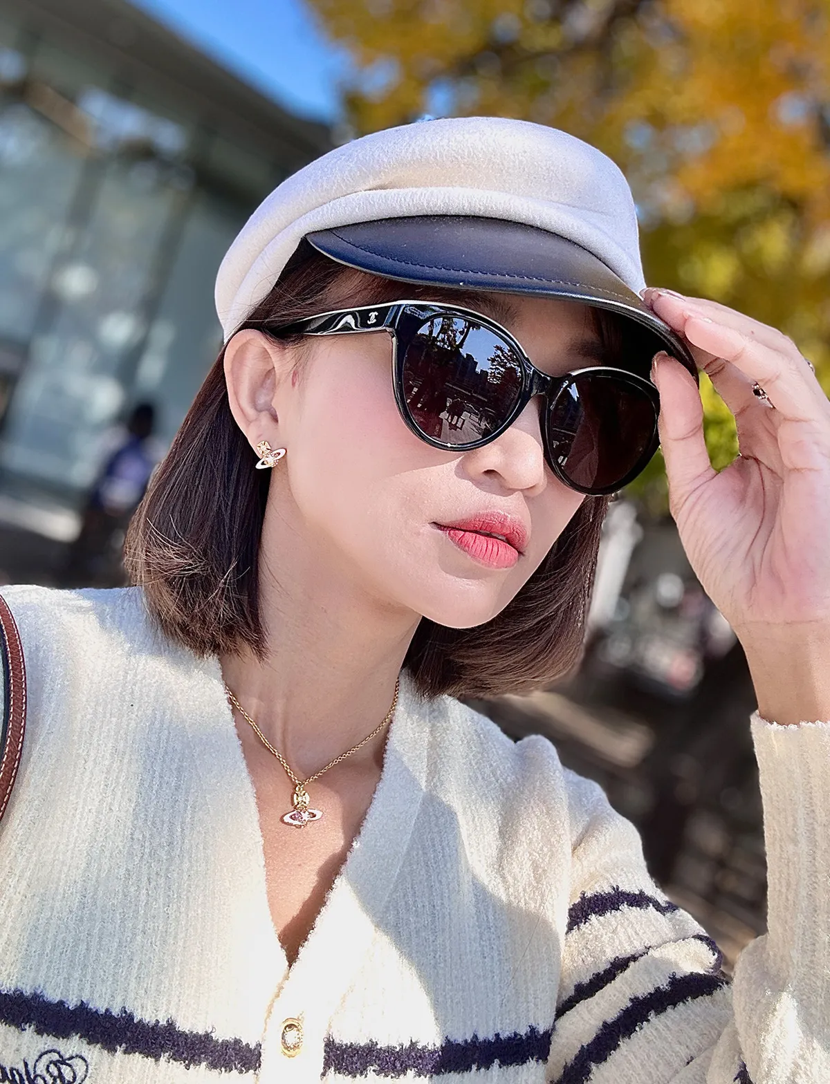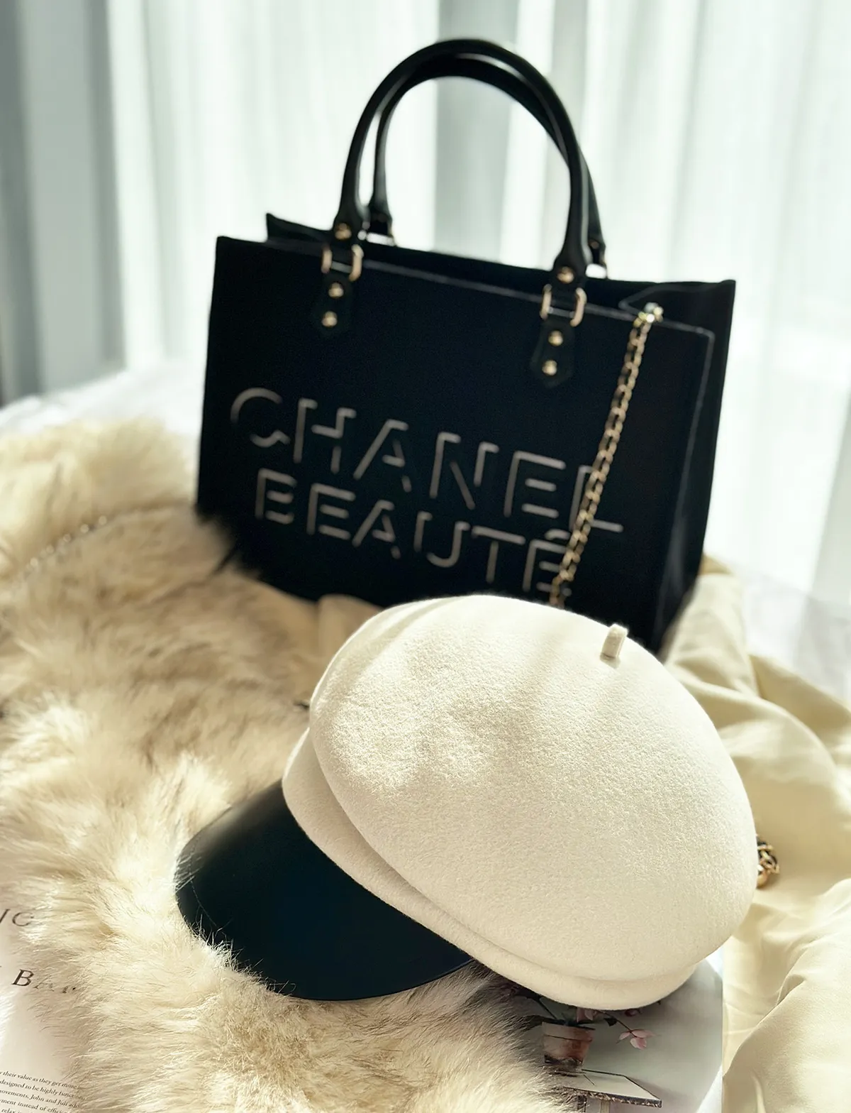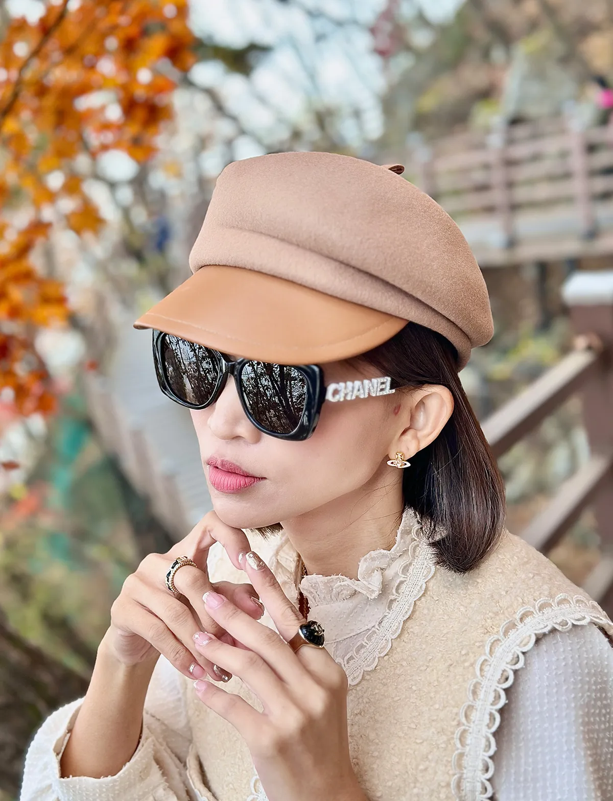 現貨-韓國 巨小臉羊毛X皮革報童帽(共兩色)