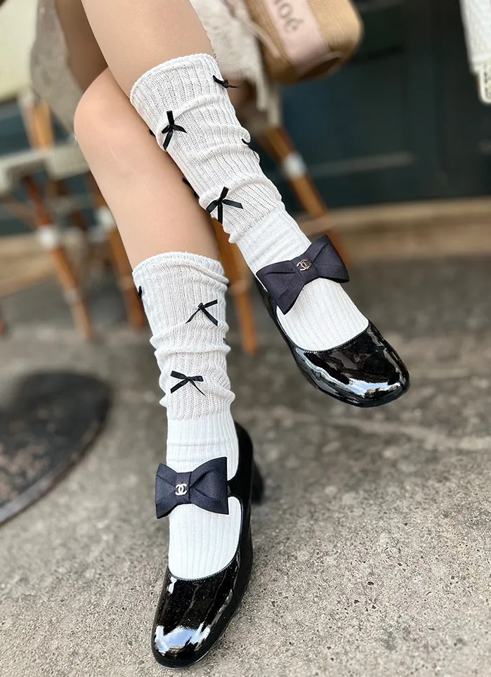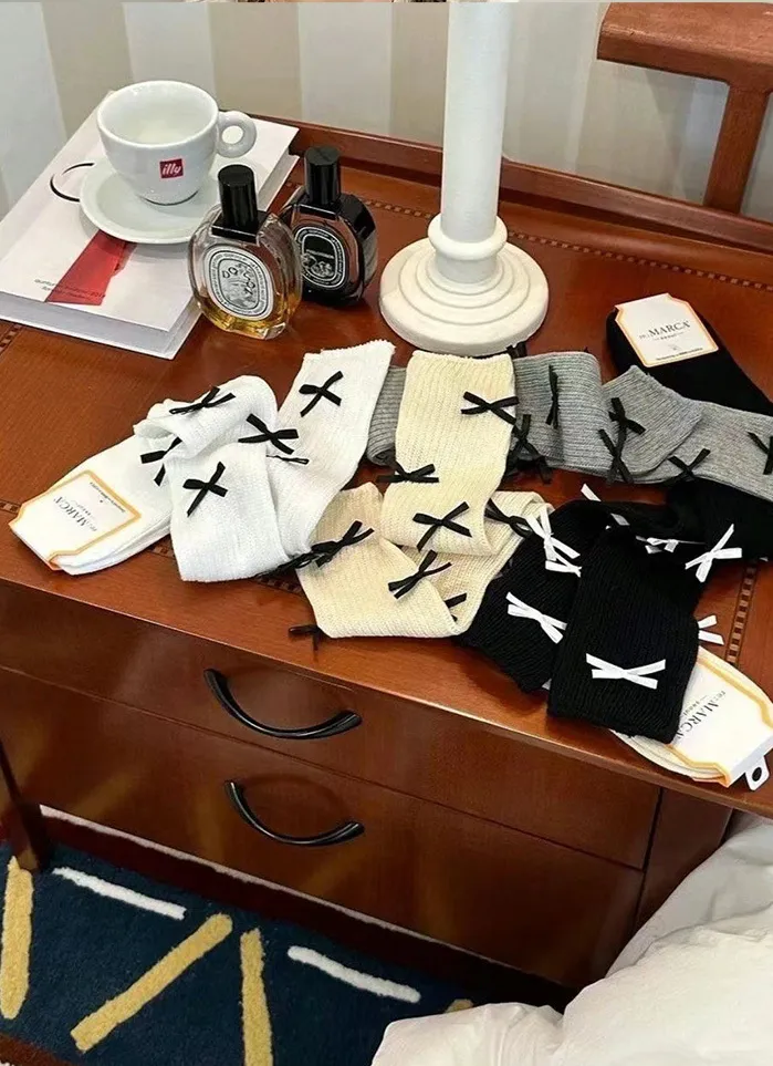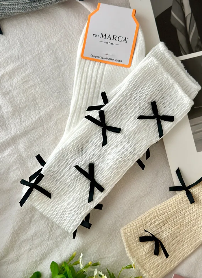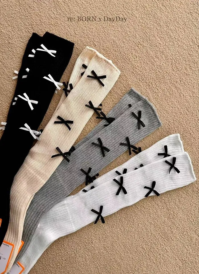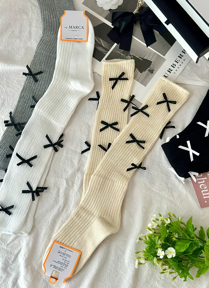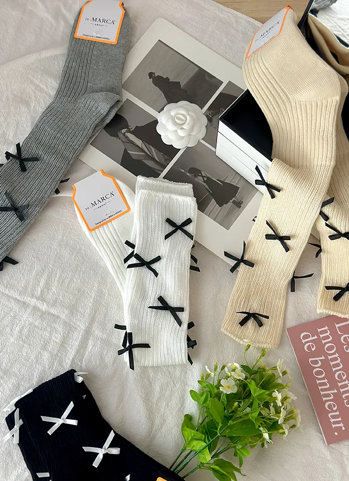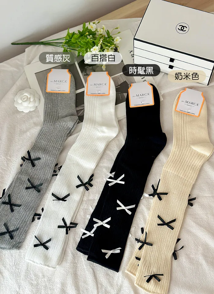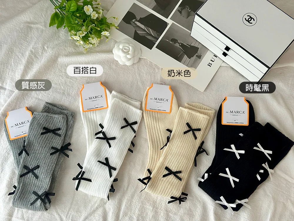 現貨-韓國製 芭蕾女孩立體蝴蝶結中筒襪(共四色)
