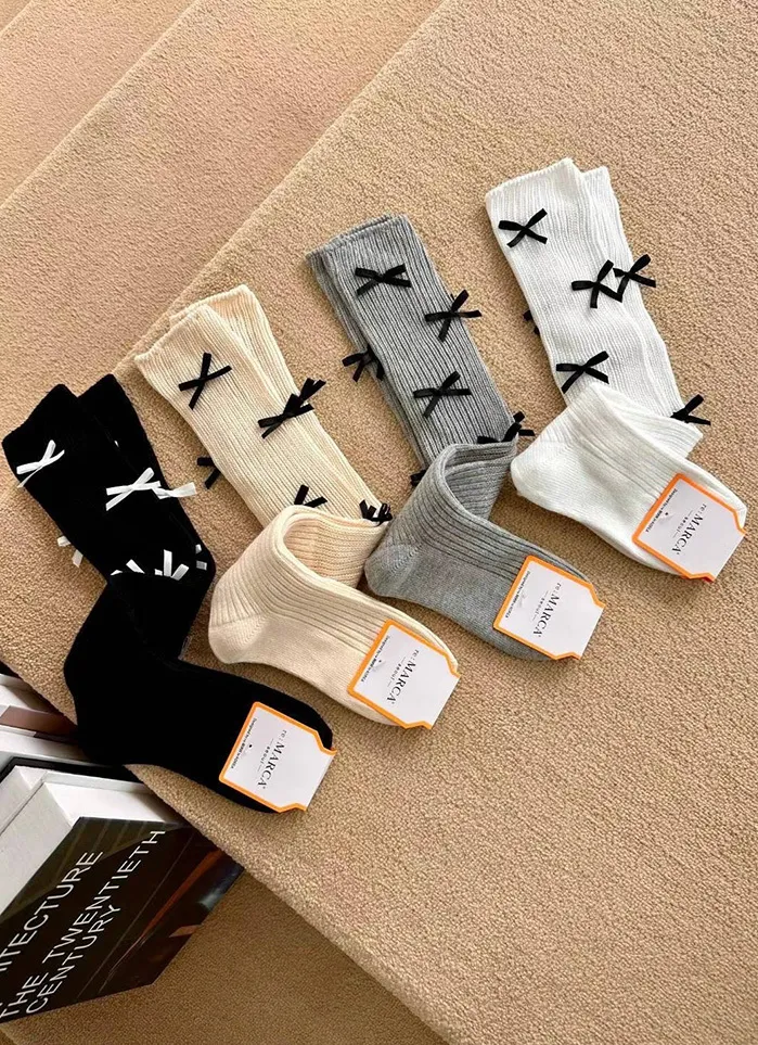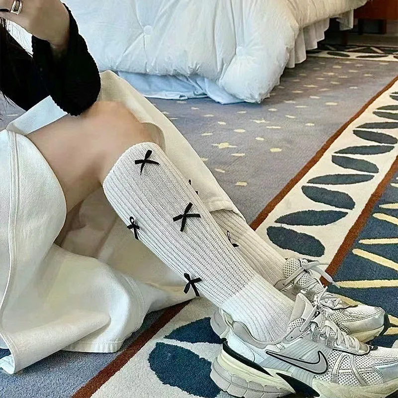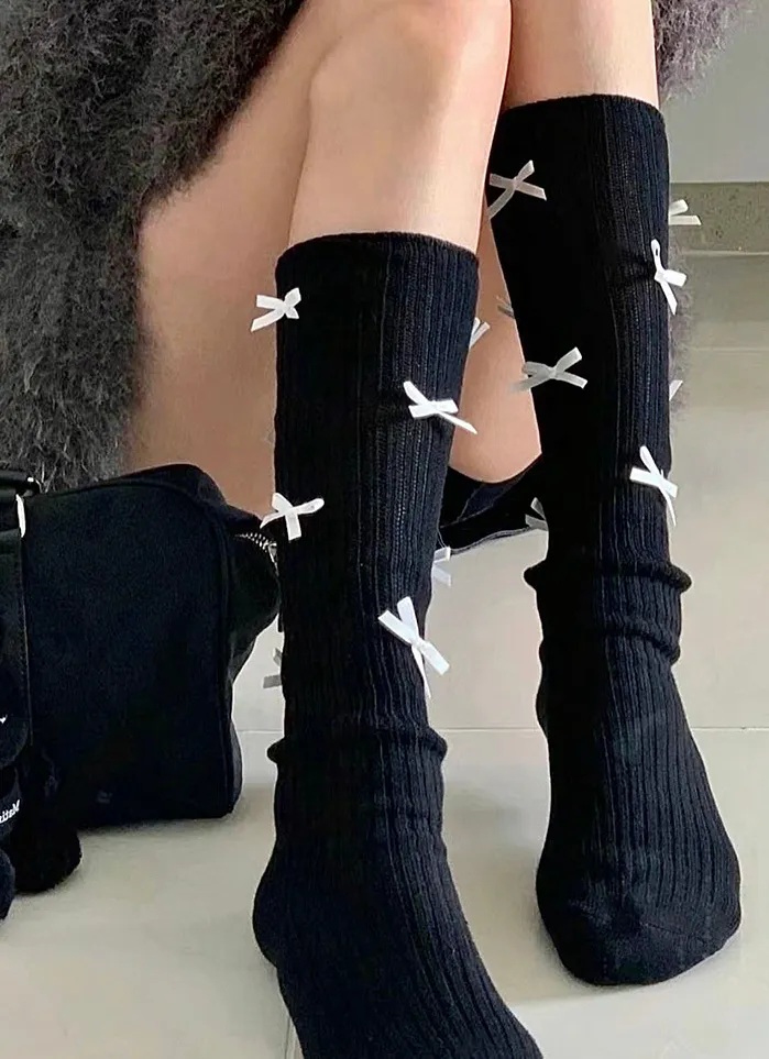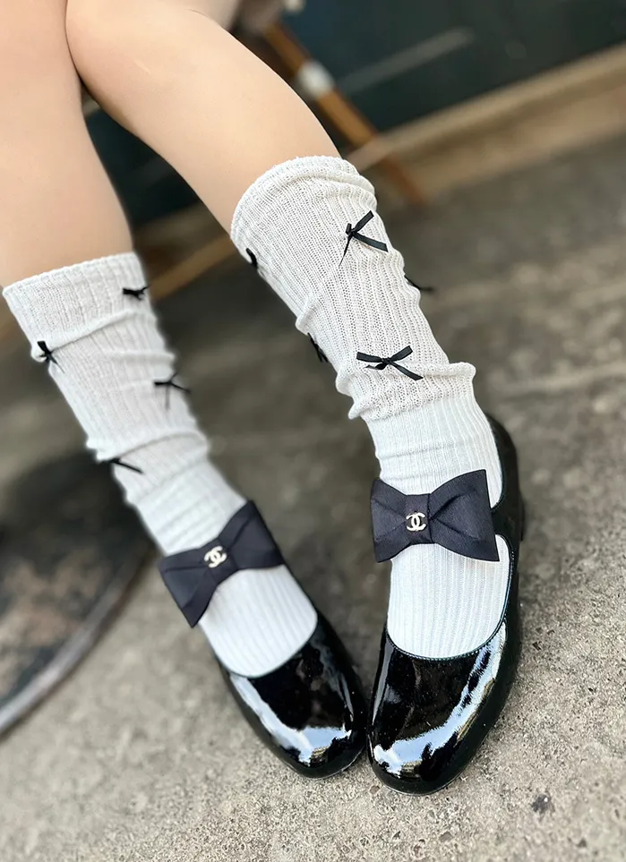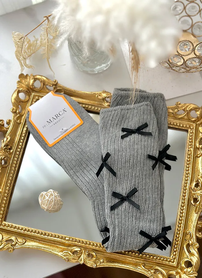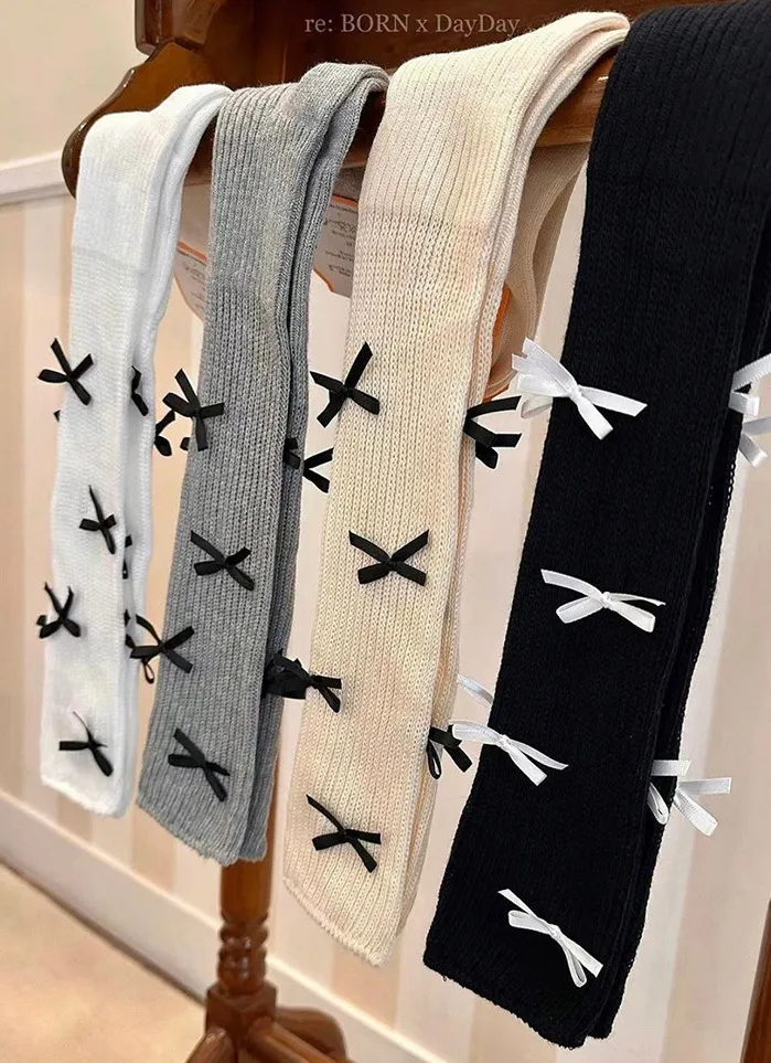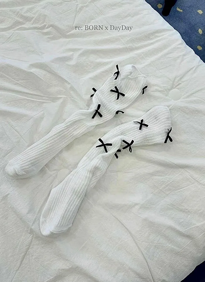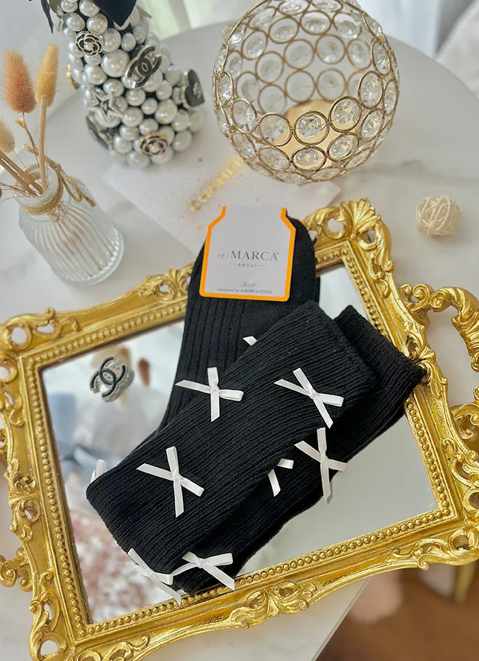 現貨-韓國製 芭蕾女孩立體蝴蝶結中筒襪(共四色)