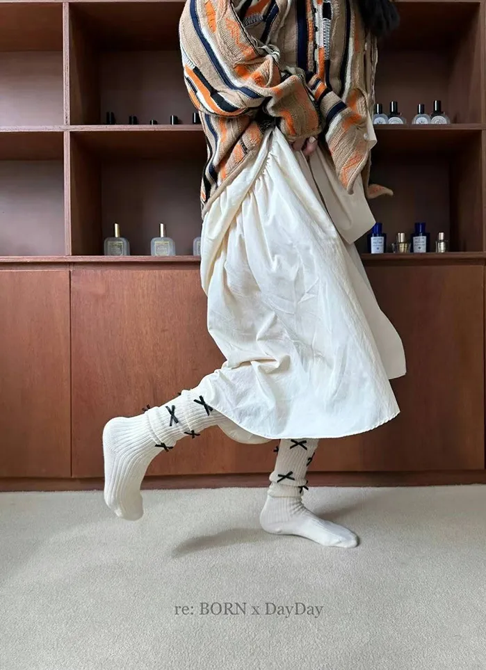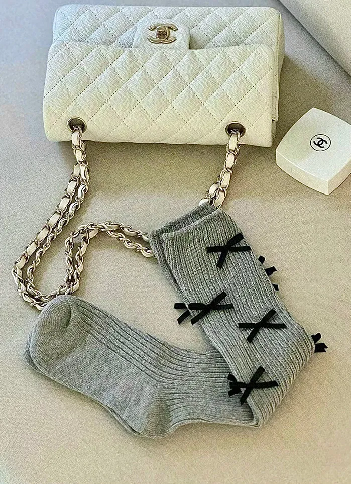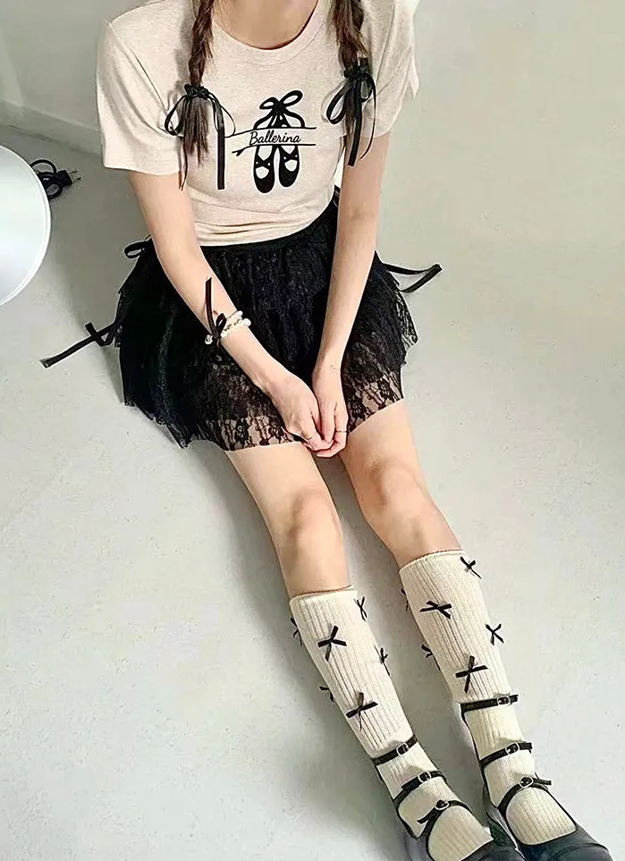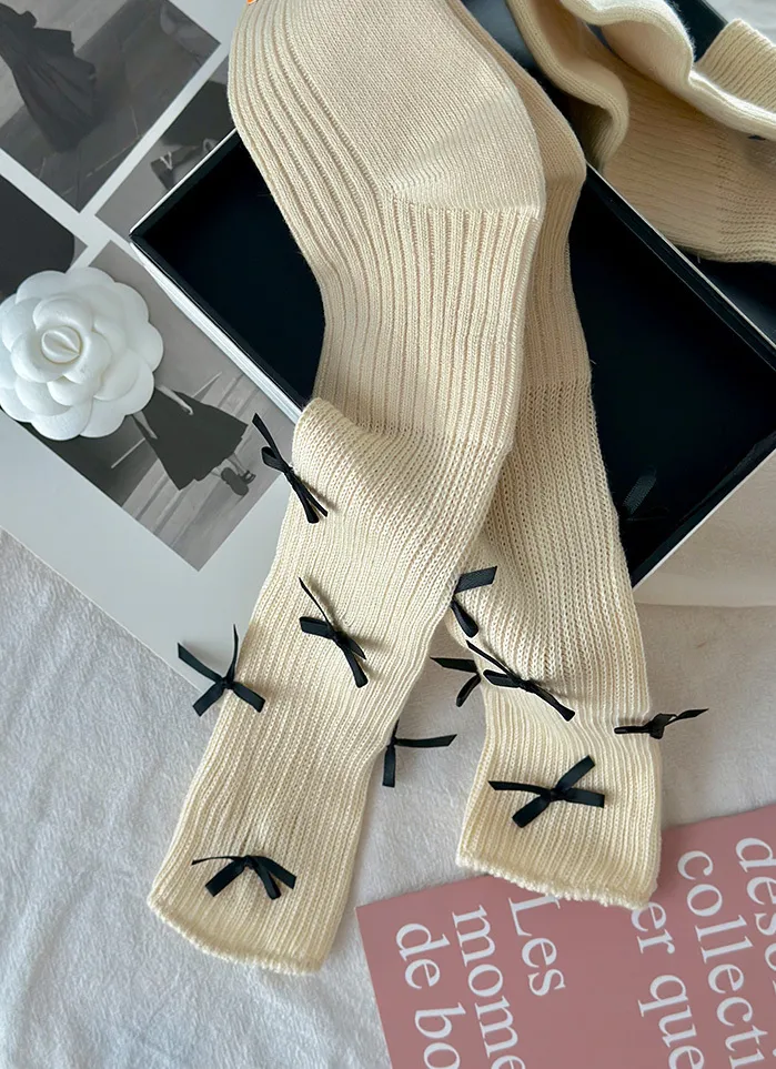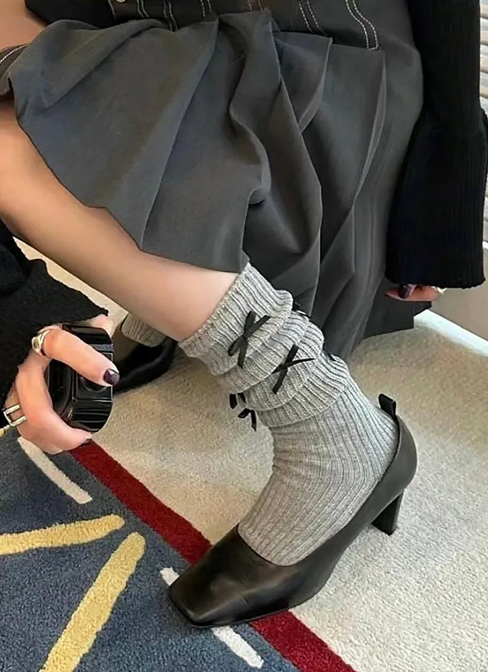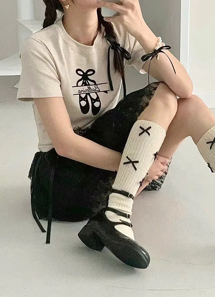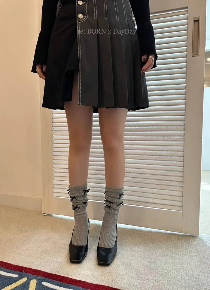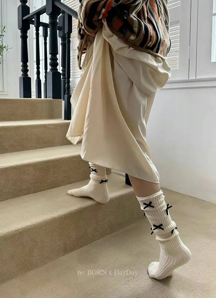 現貨-韓國製 芭蕾女孩立體蝴蝶結中筒襪(共四色)