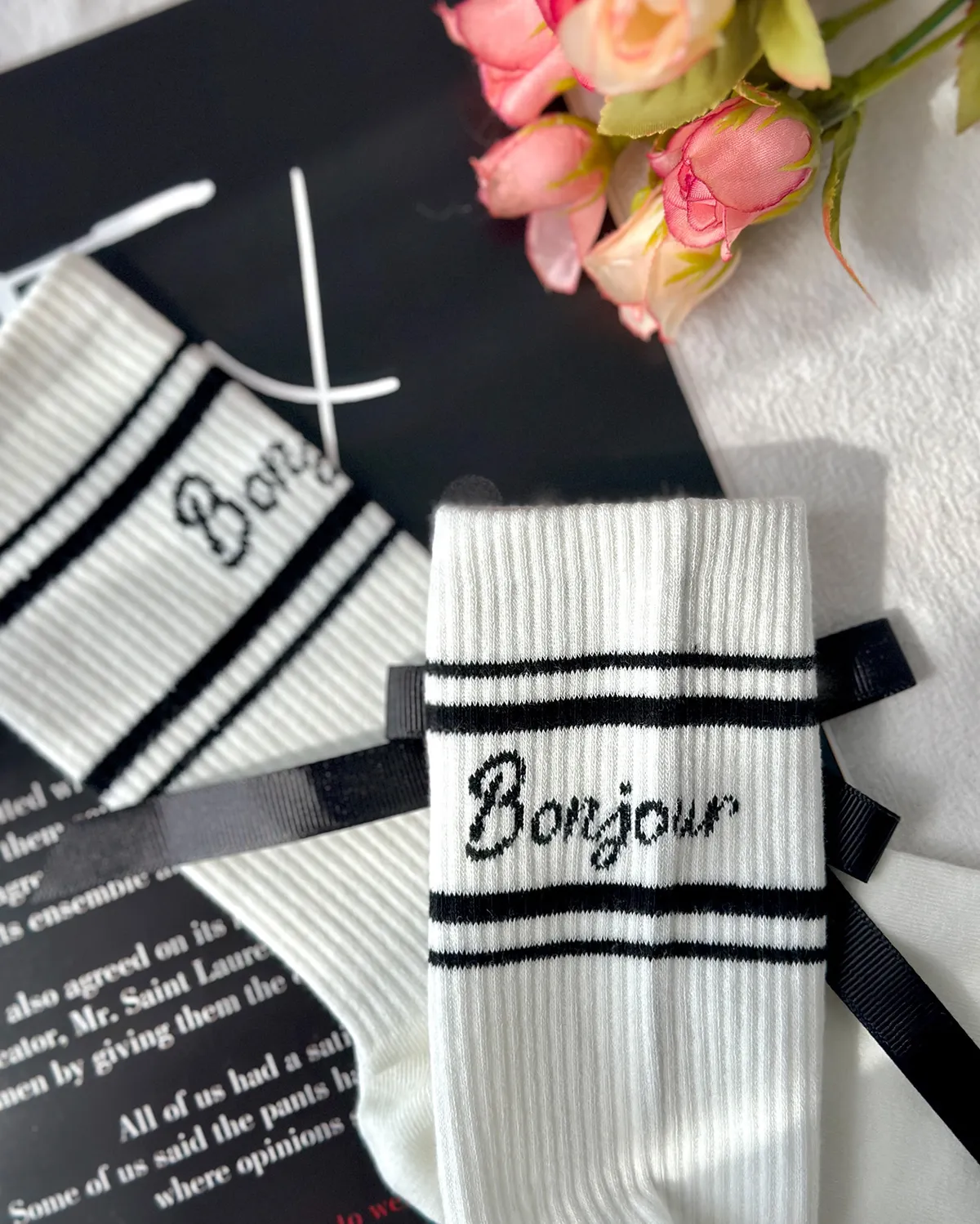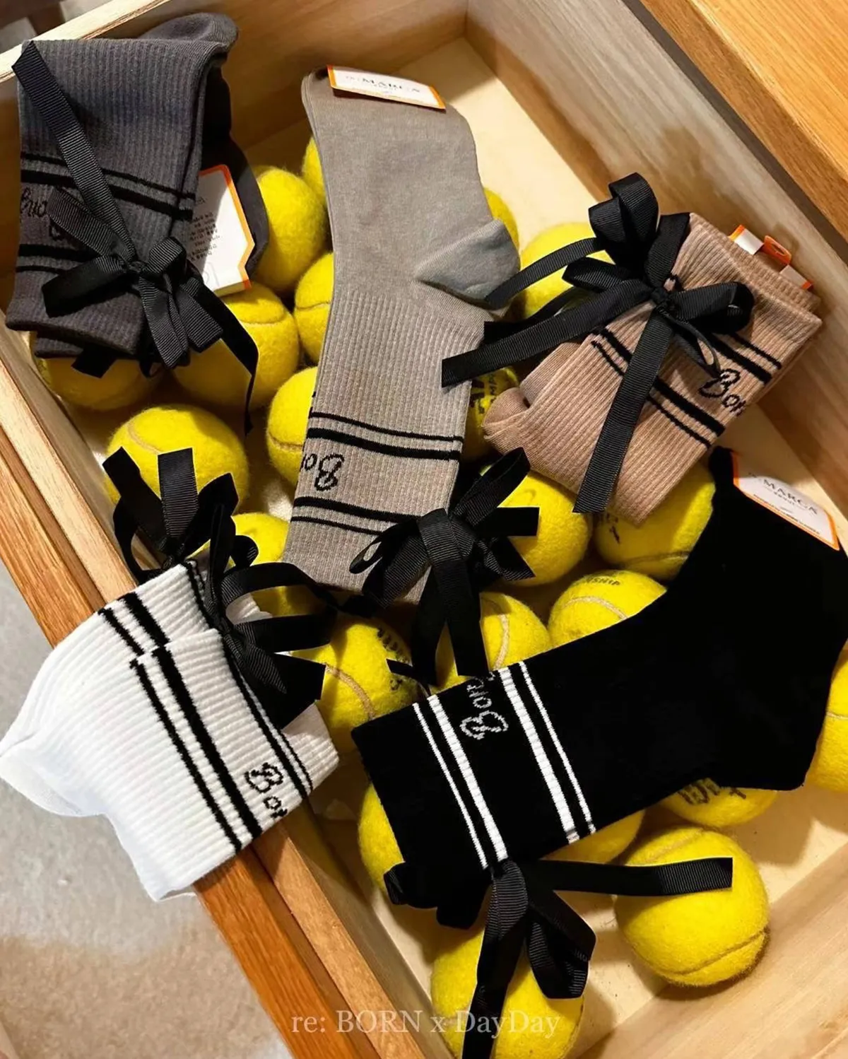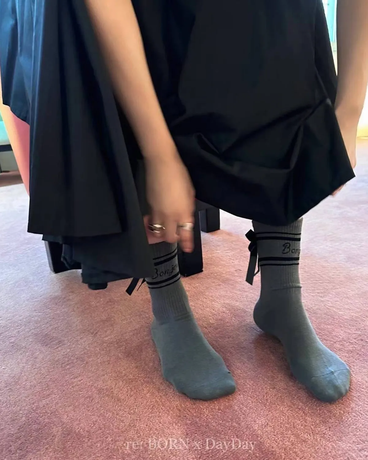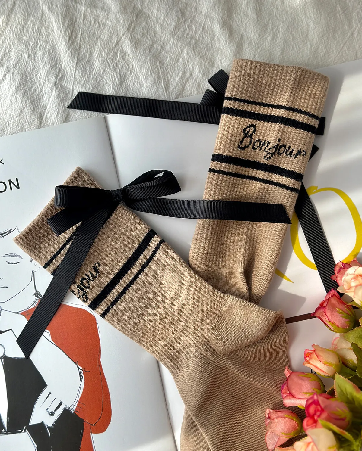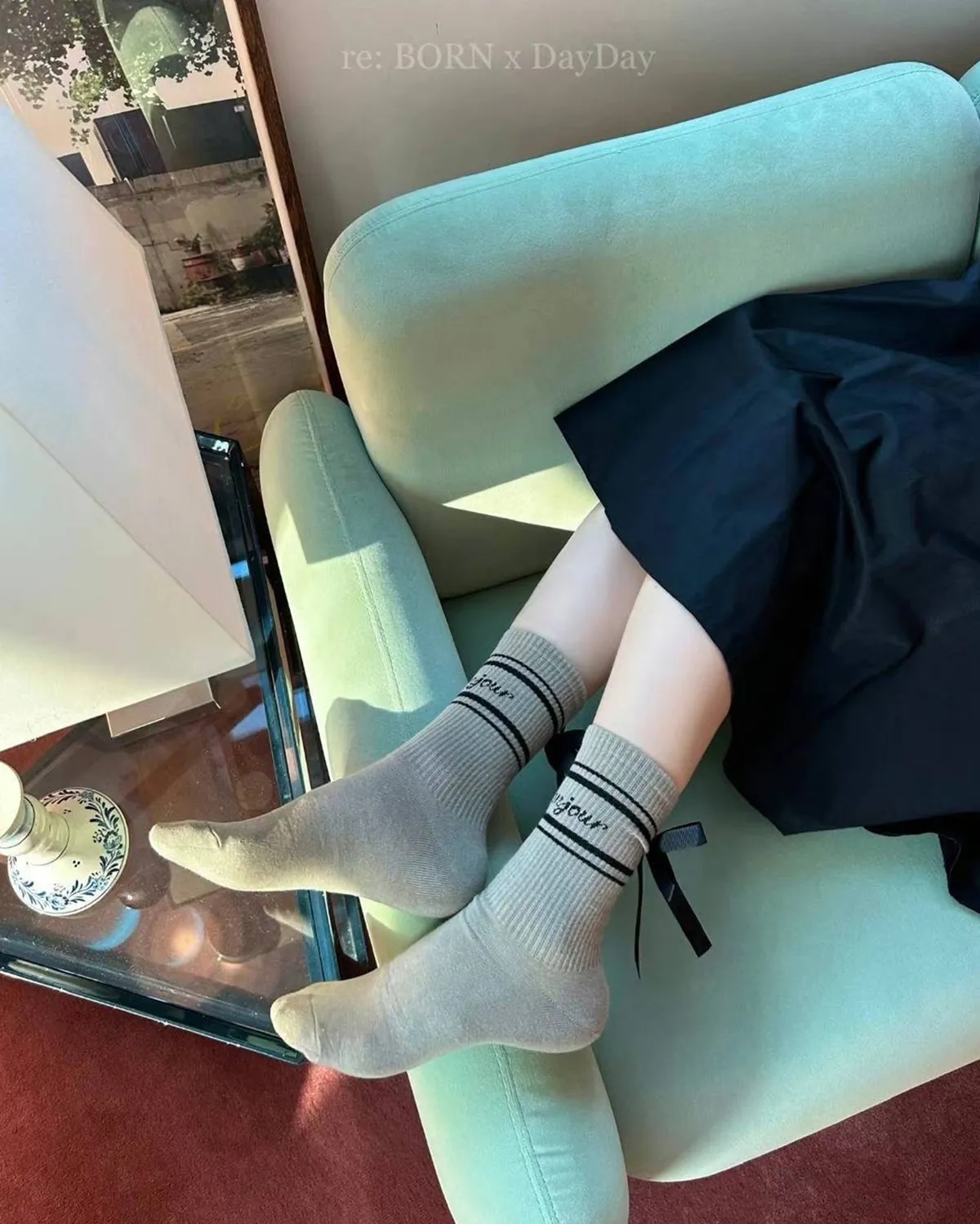 現貨-韓國製 英文立體蝴蝶結中筒襪(共三色)