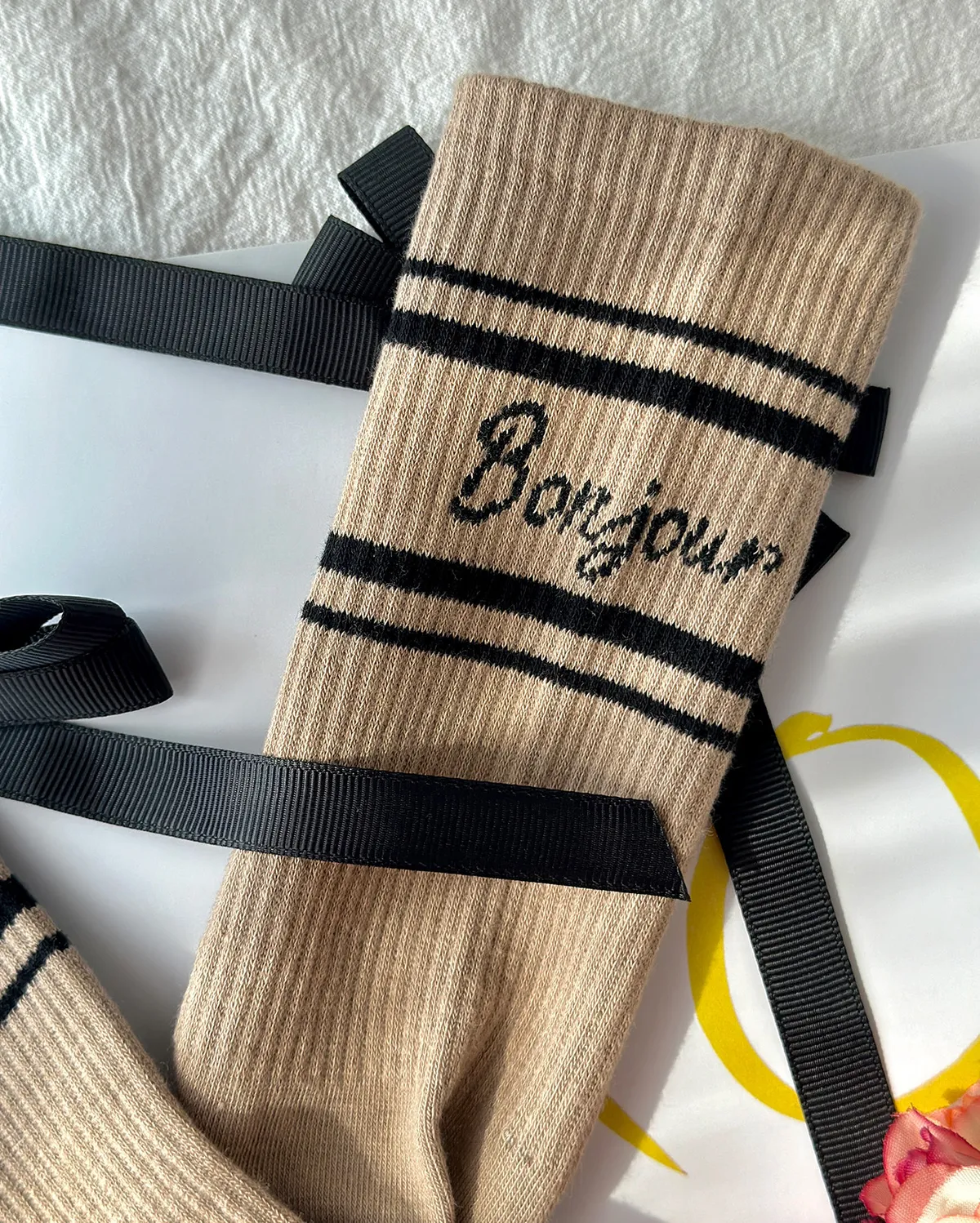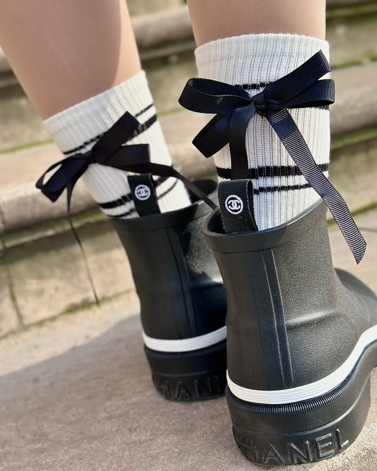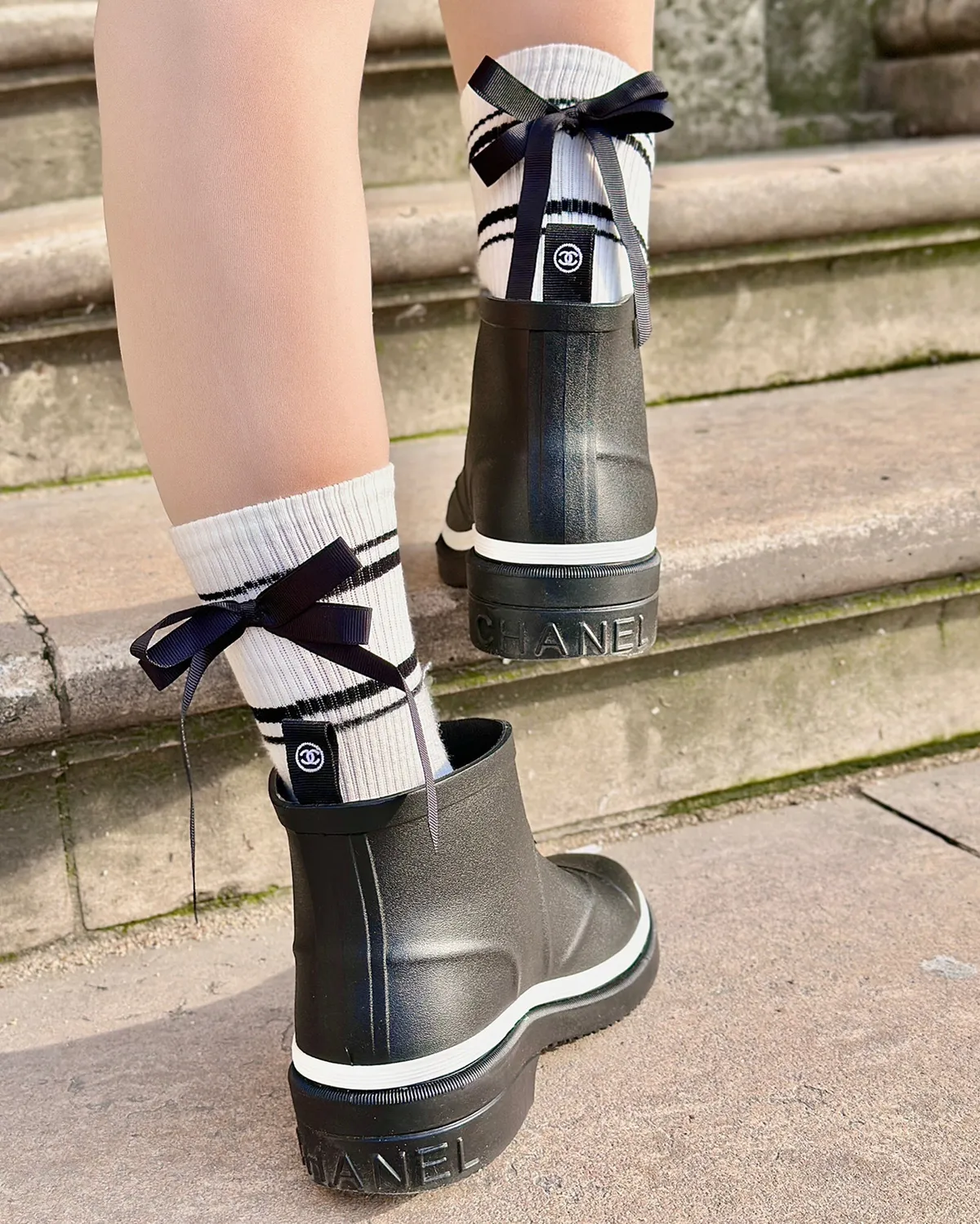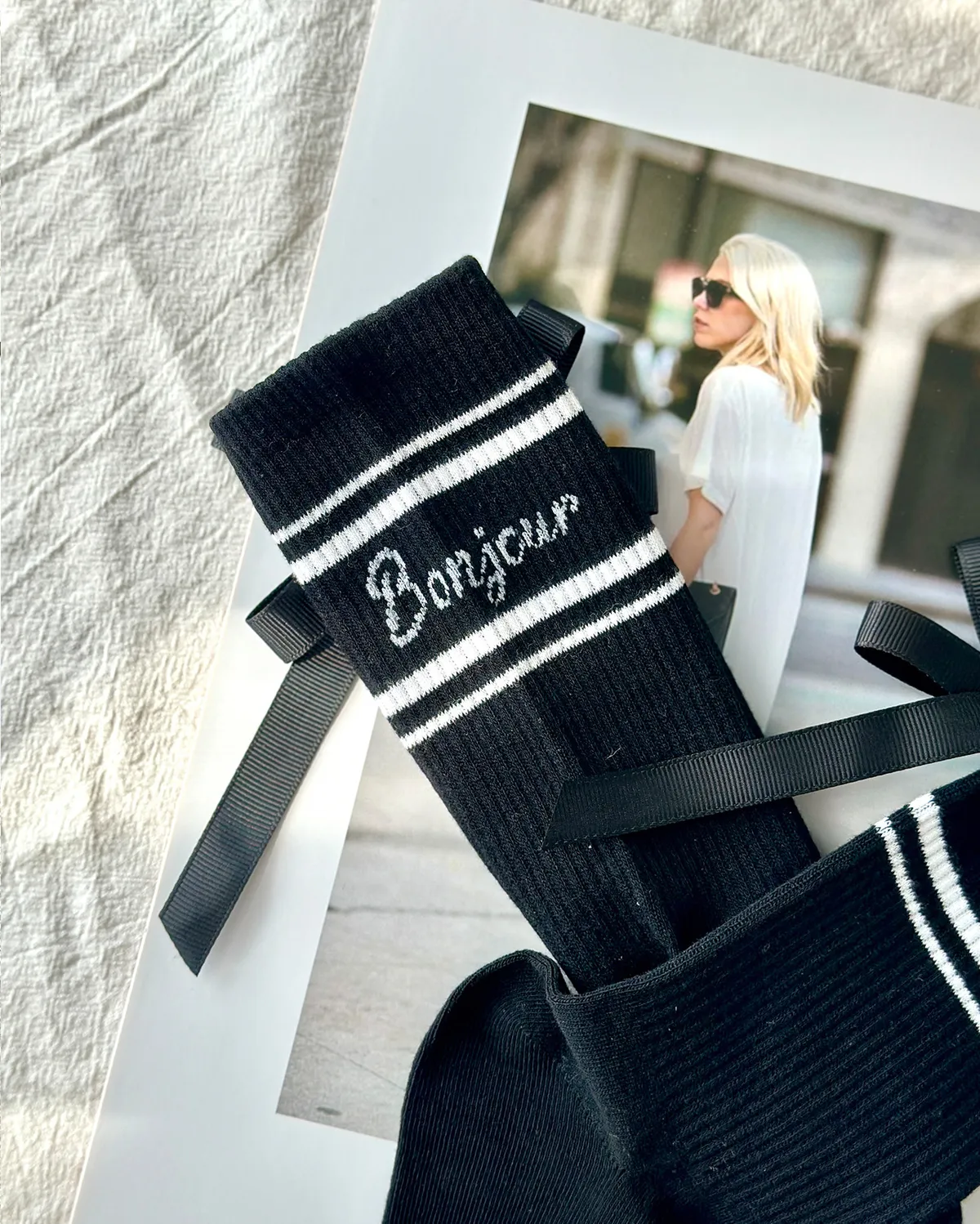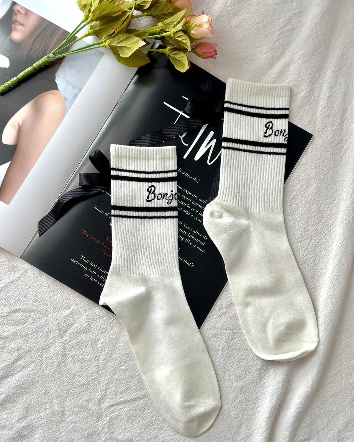 現貨-韓國製 英文立體蝴蝶結中筒襪(共三色)