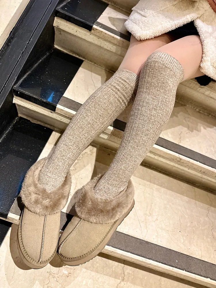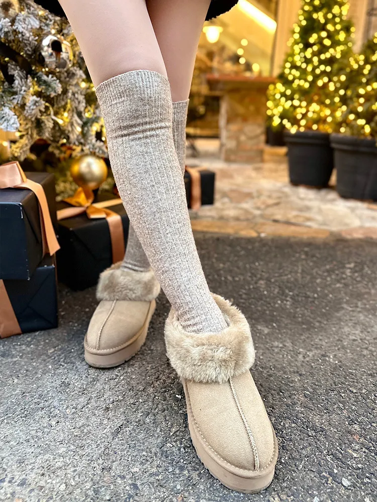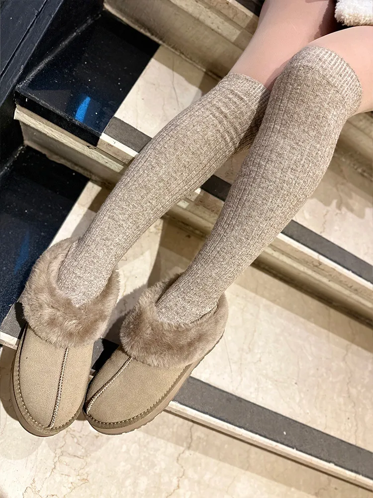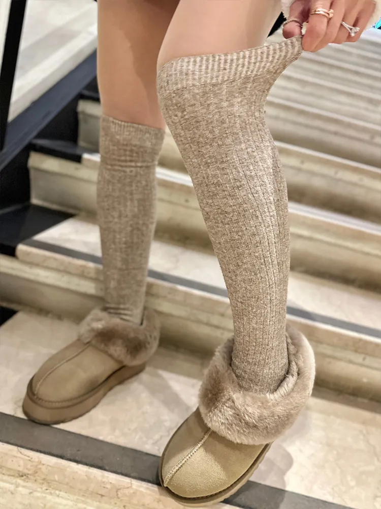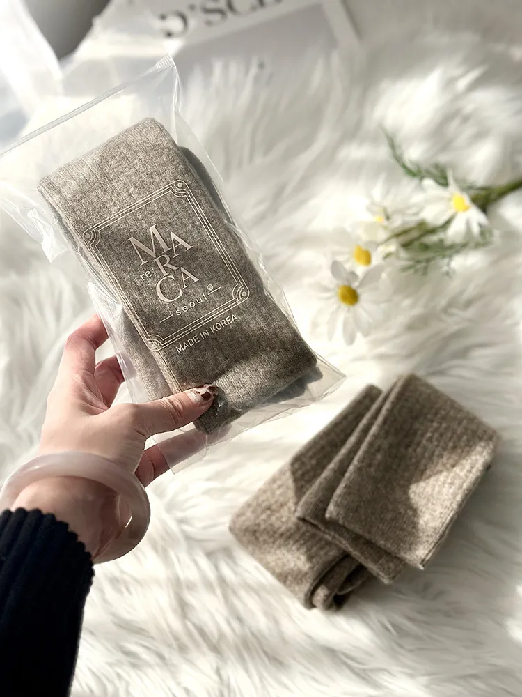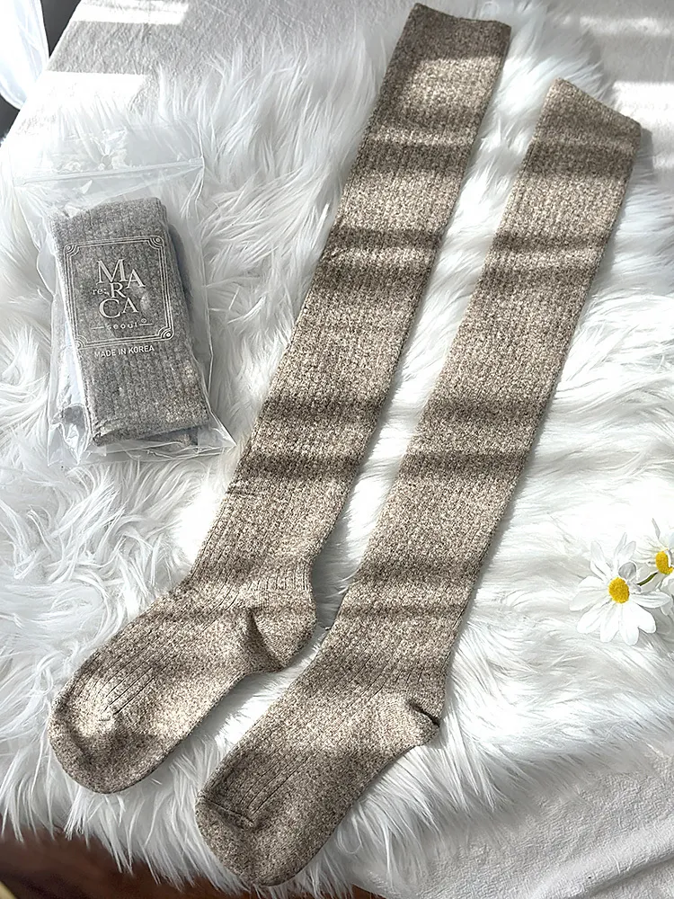 現貨-韓國製 暖呼呼奶茶色 羊毛膝上襪
