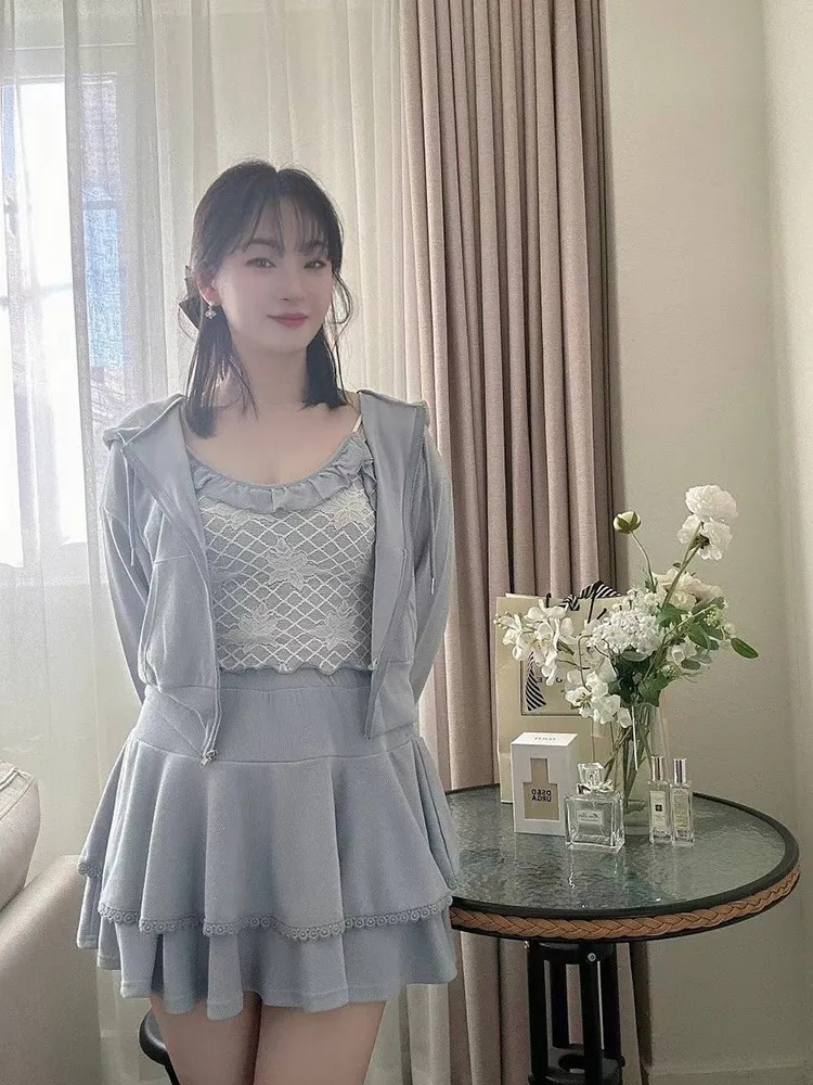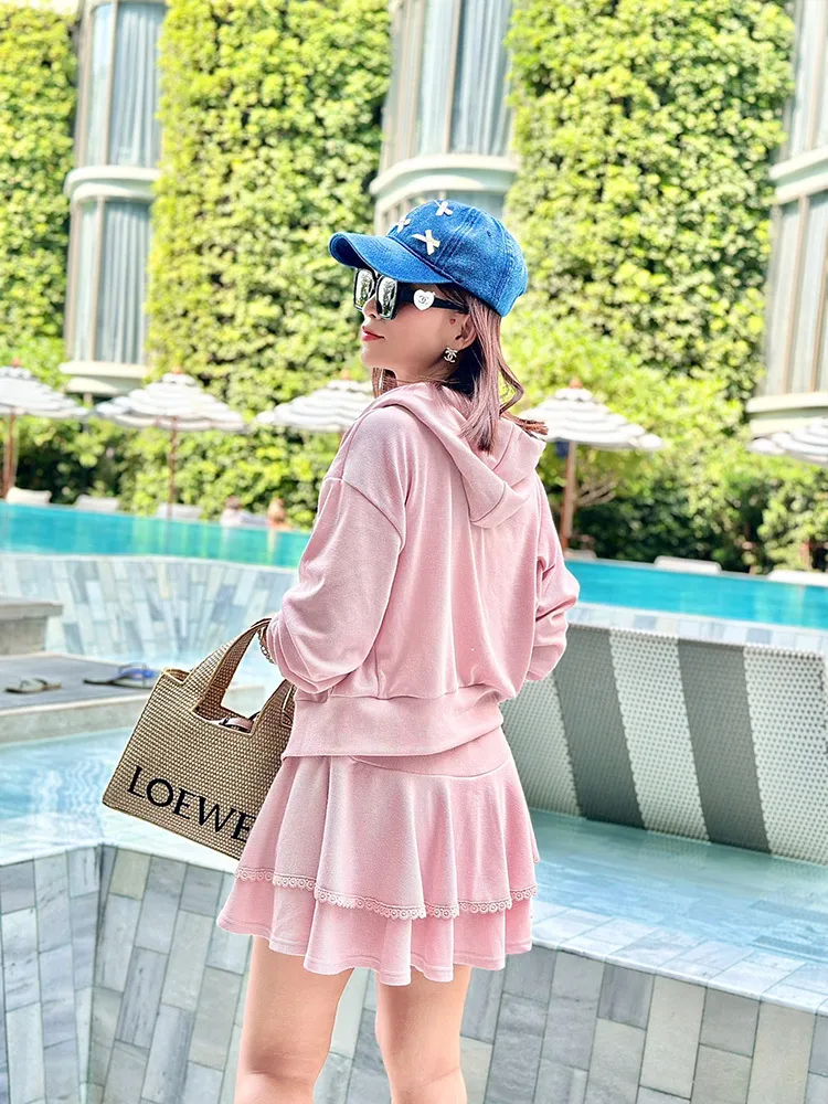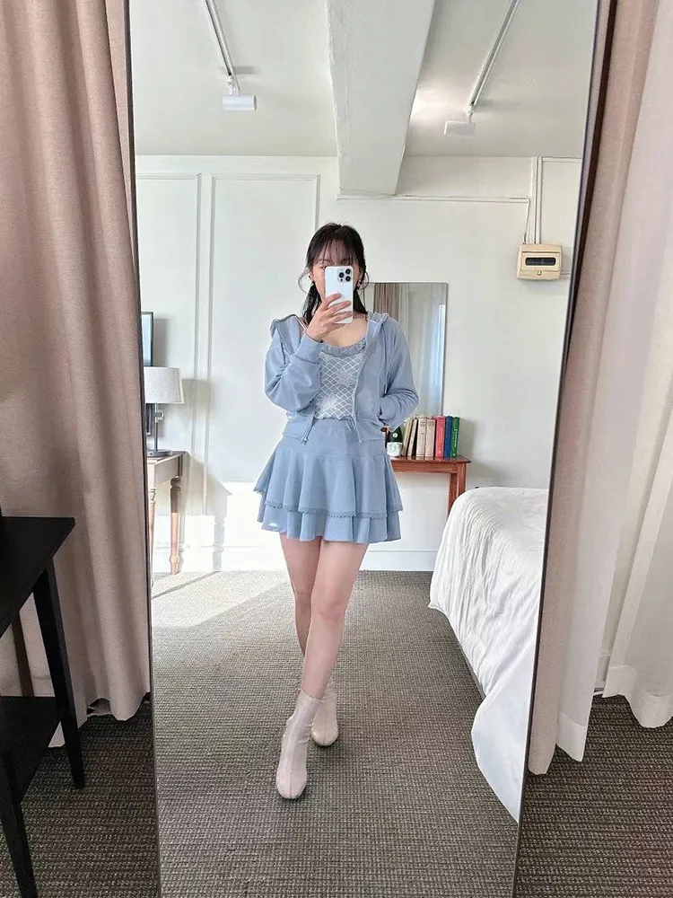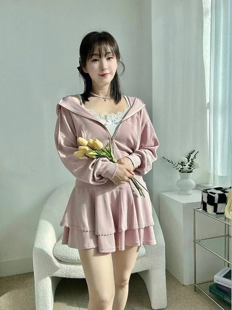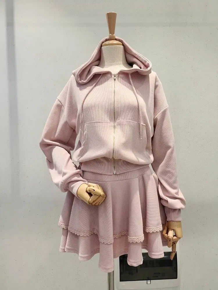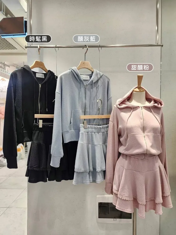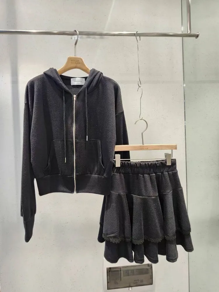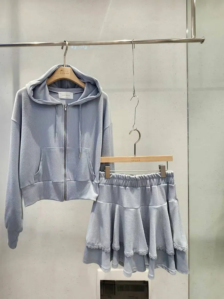 現貨-韓國熱賣款 兩件式連帽拉鍊+蛋糕短裙套裝