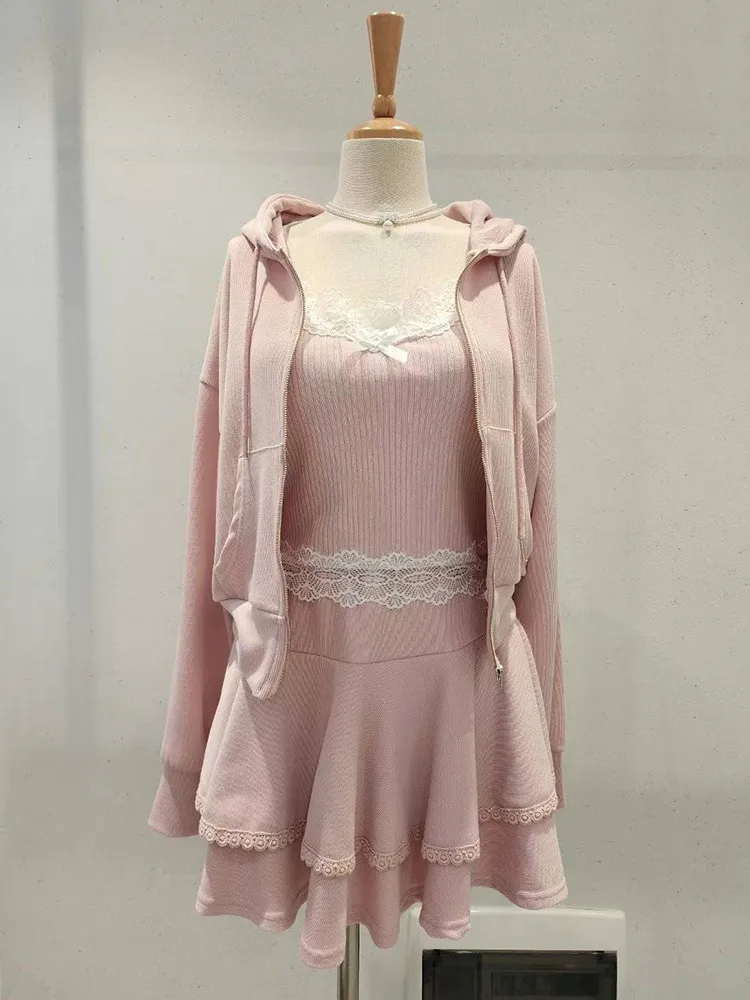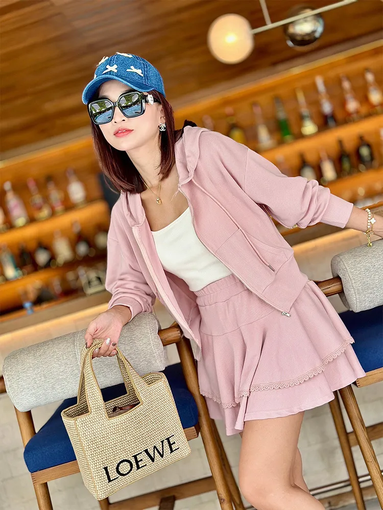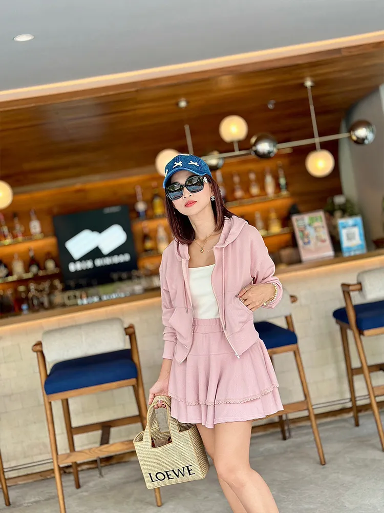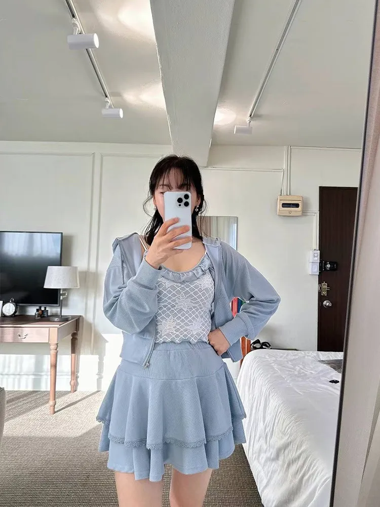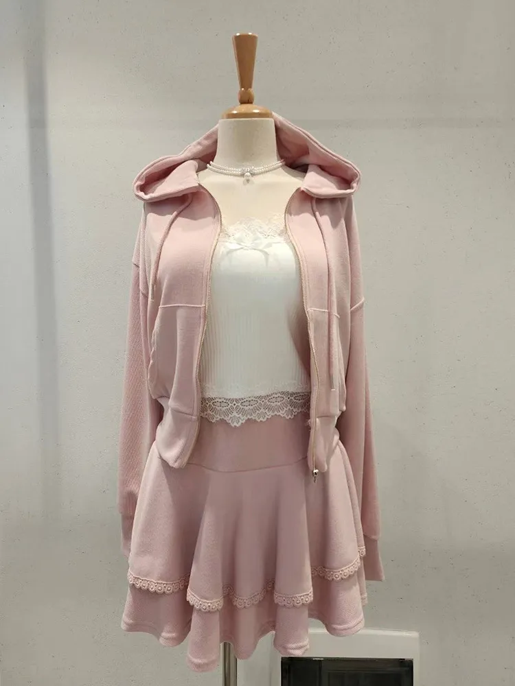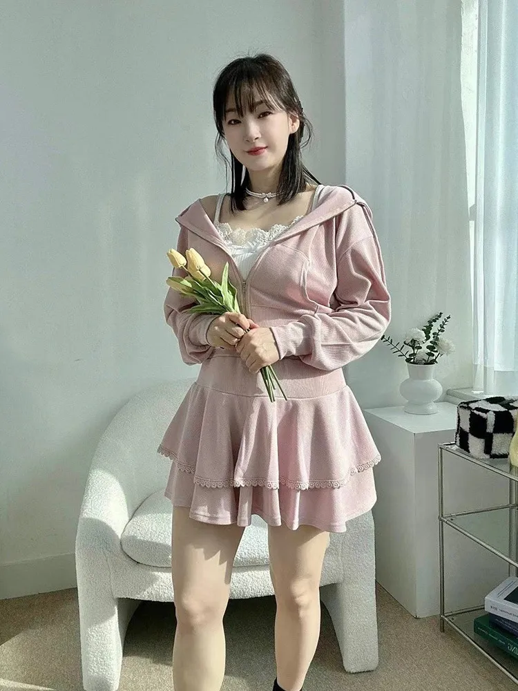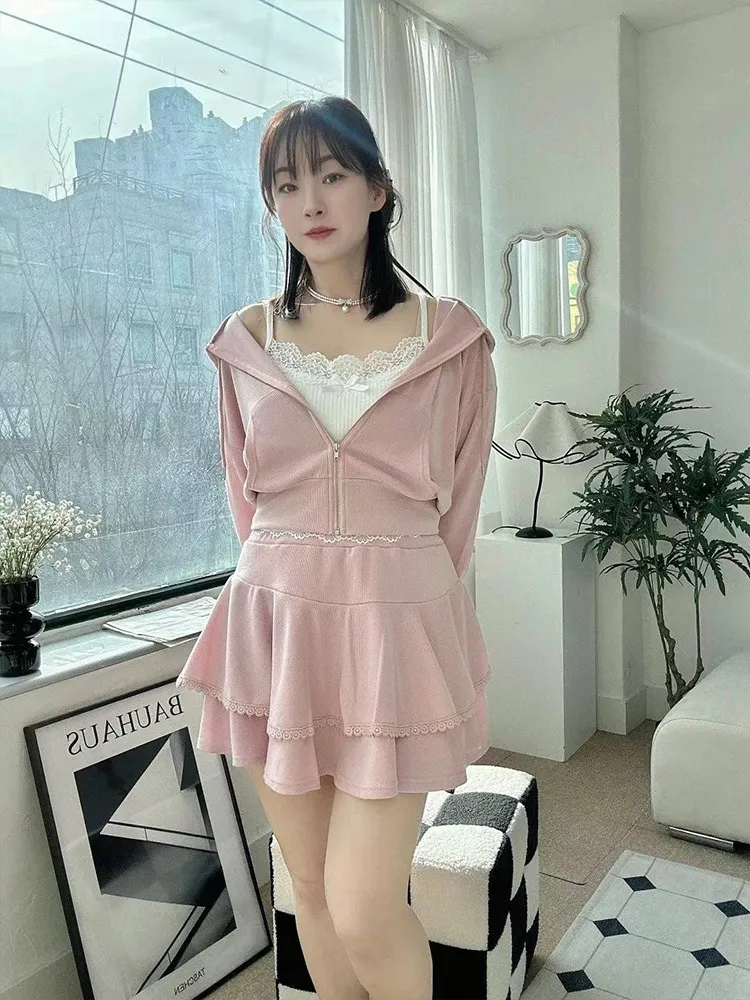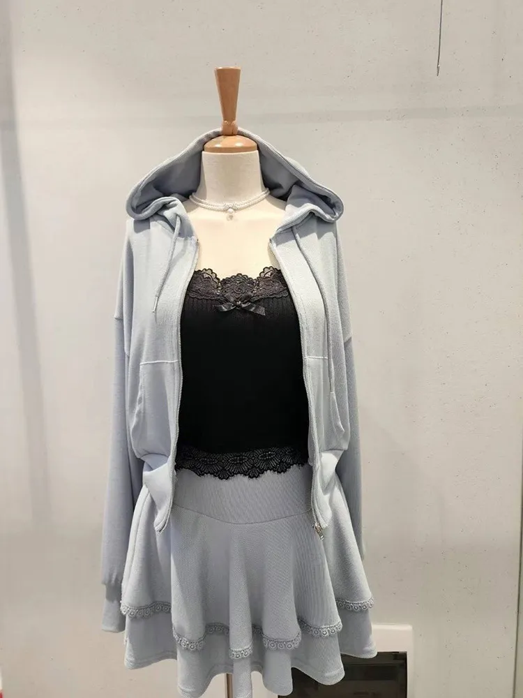 現貨-韓國熱賣款 兩件式連帽拉鍊+蛋糕短裙套裝