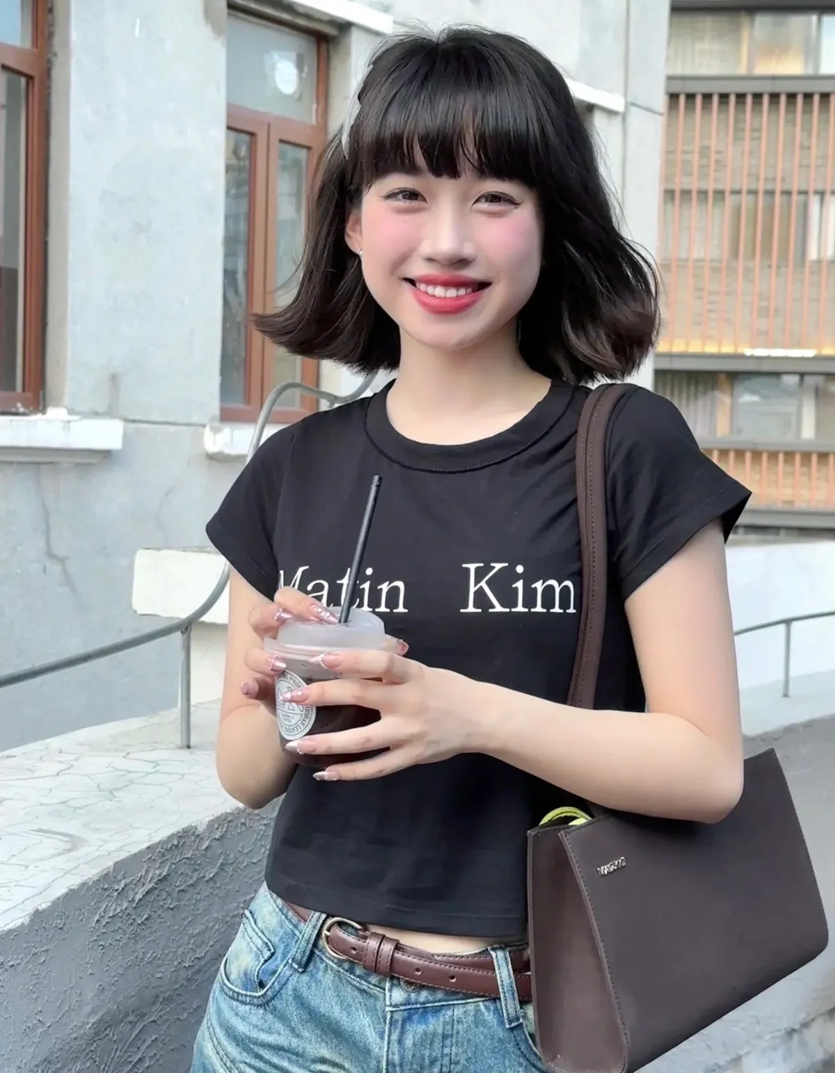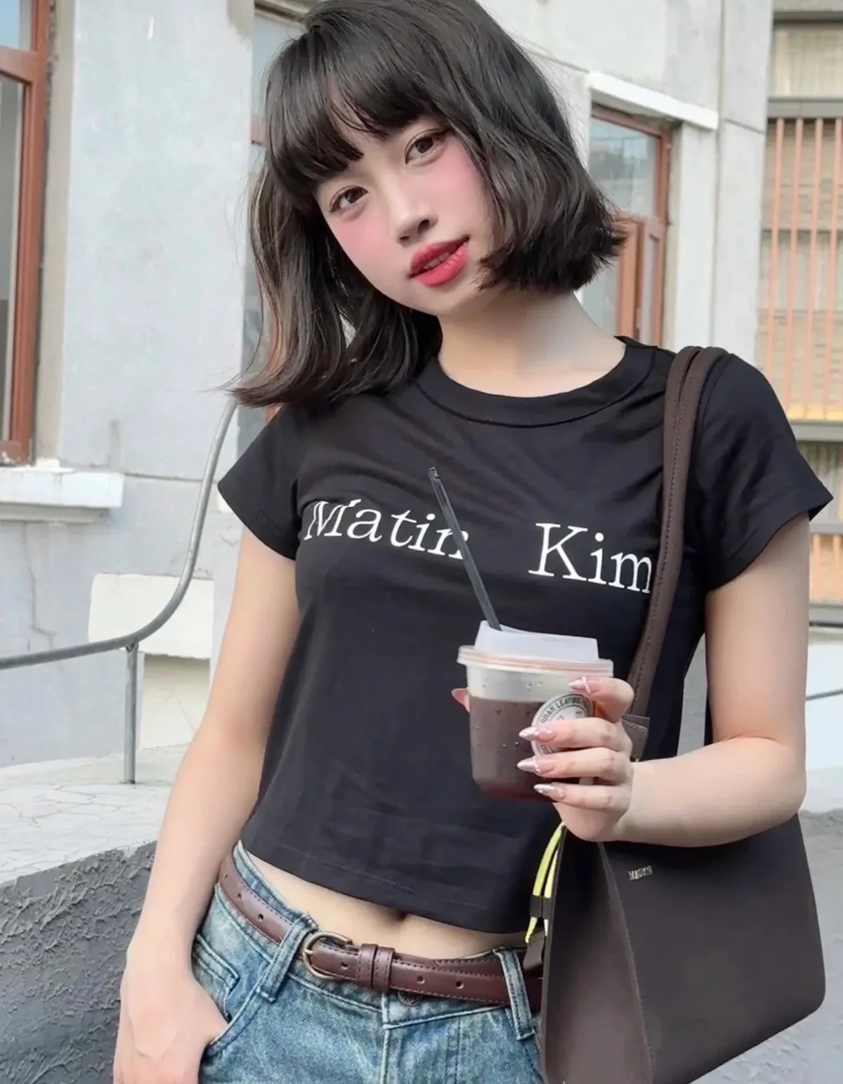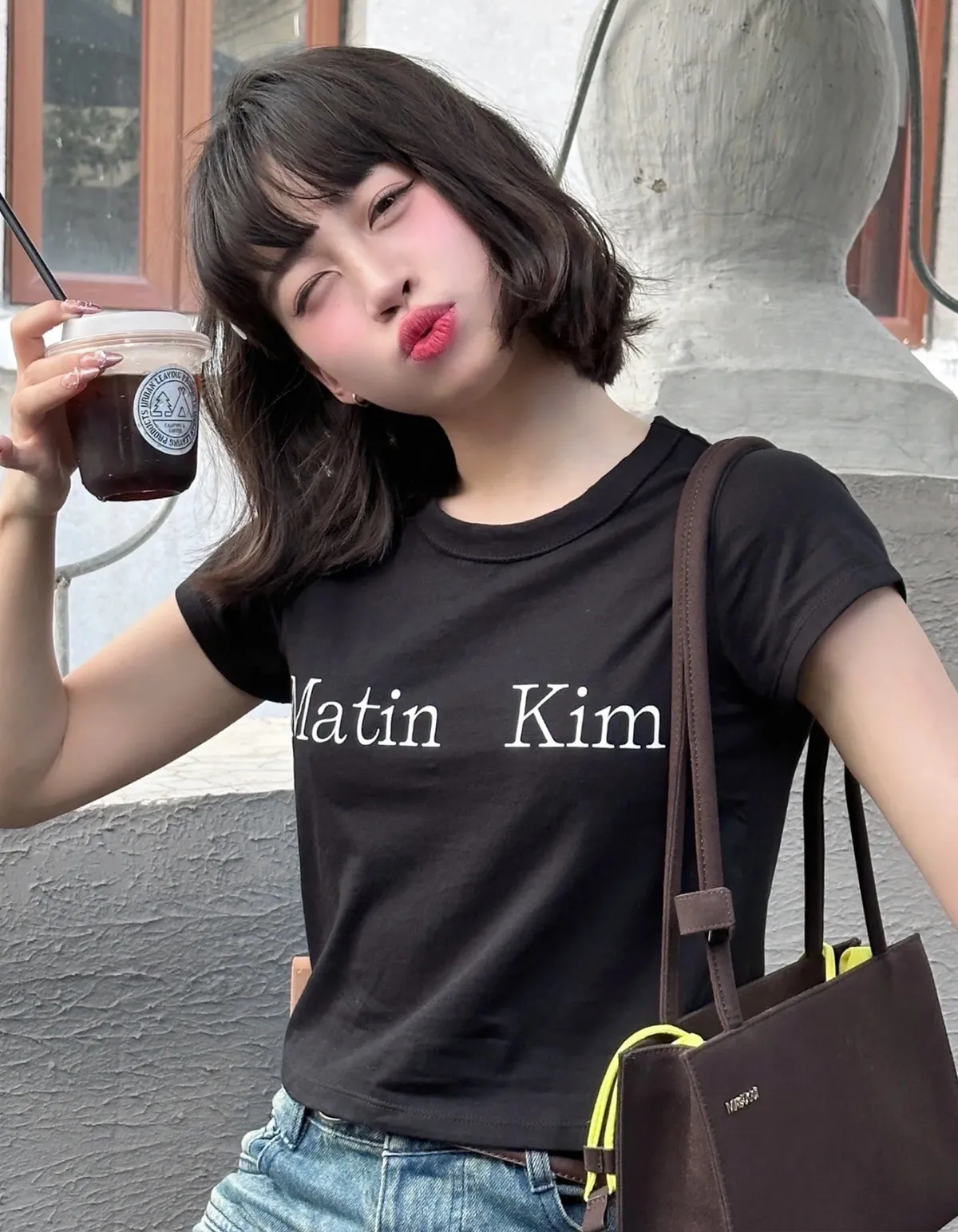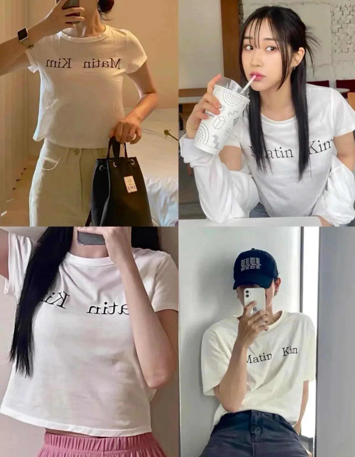 明星演員任敏 同款穿搭韓國品牌Matin kim 超搶手!沒貨不敢開團!經典好看又百搭 美式復古風版型短版~單穿還是內搭都可以【材質】棉料【尺寸】S/MS 肩寬47/胸圍41/全長47cmM 肩寬49/胸圍43/全長49cm