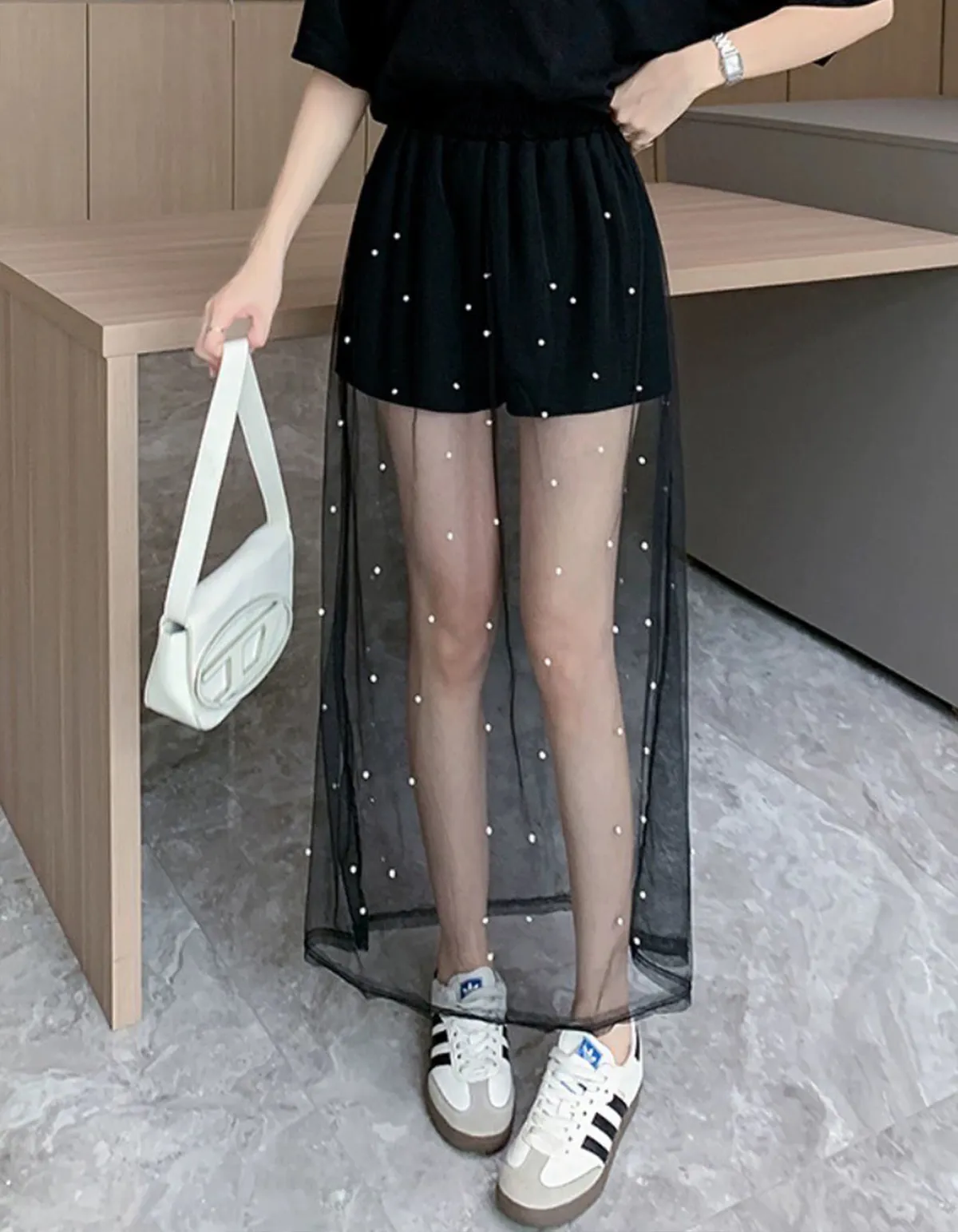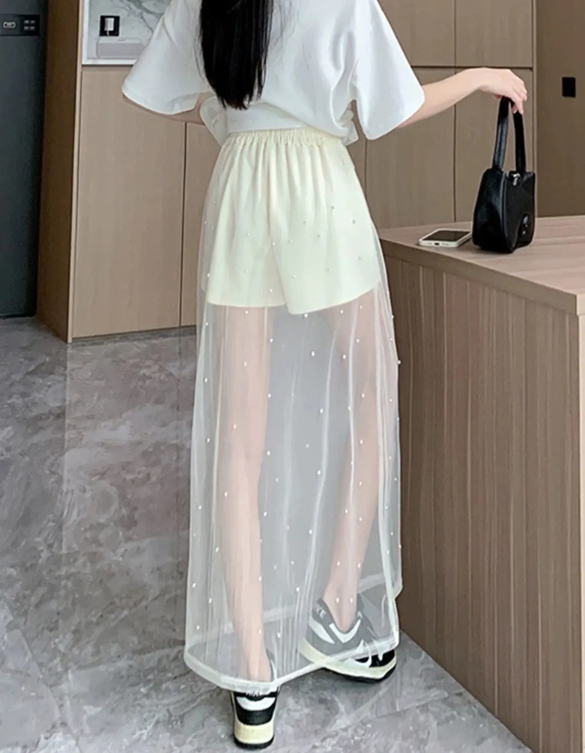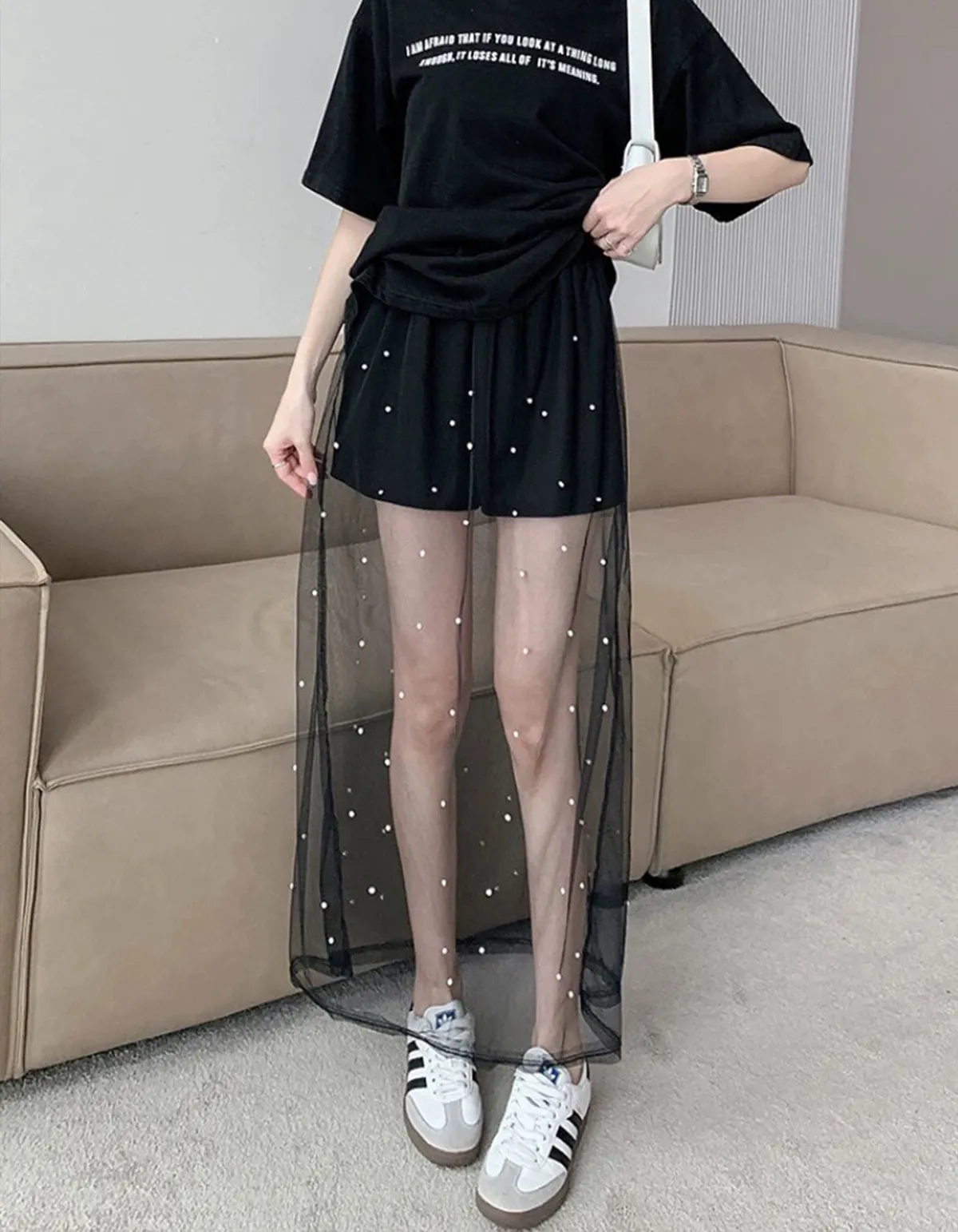 韓國店家賣翻了‼️還有好多日本訂單~蕾絲X珍珠設計自帶仙氣 上身秒氣質高雅裡面是短褲 追趕跑跳碰都可以也不會曝光蕾絲紗裙長裙若隱若現帶性感 穿起來真的只有好~仙~喔~▶️腰圍有彈性 XS~L都可以駕馭兩件式穿搭更有層次設計穿搭感【材質】蕾絲/珍珠【尺寸】腰圍29~50/臀圍48/外群全長94/內短褲全長38cm