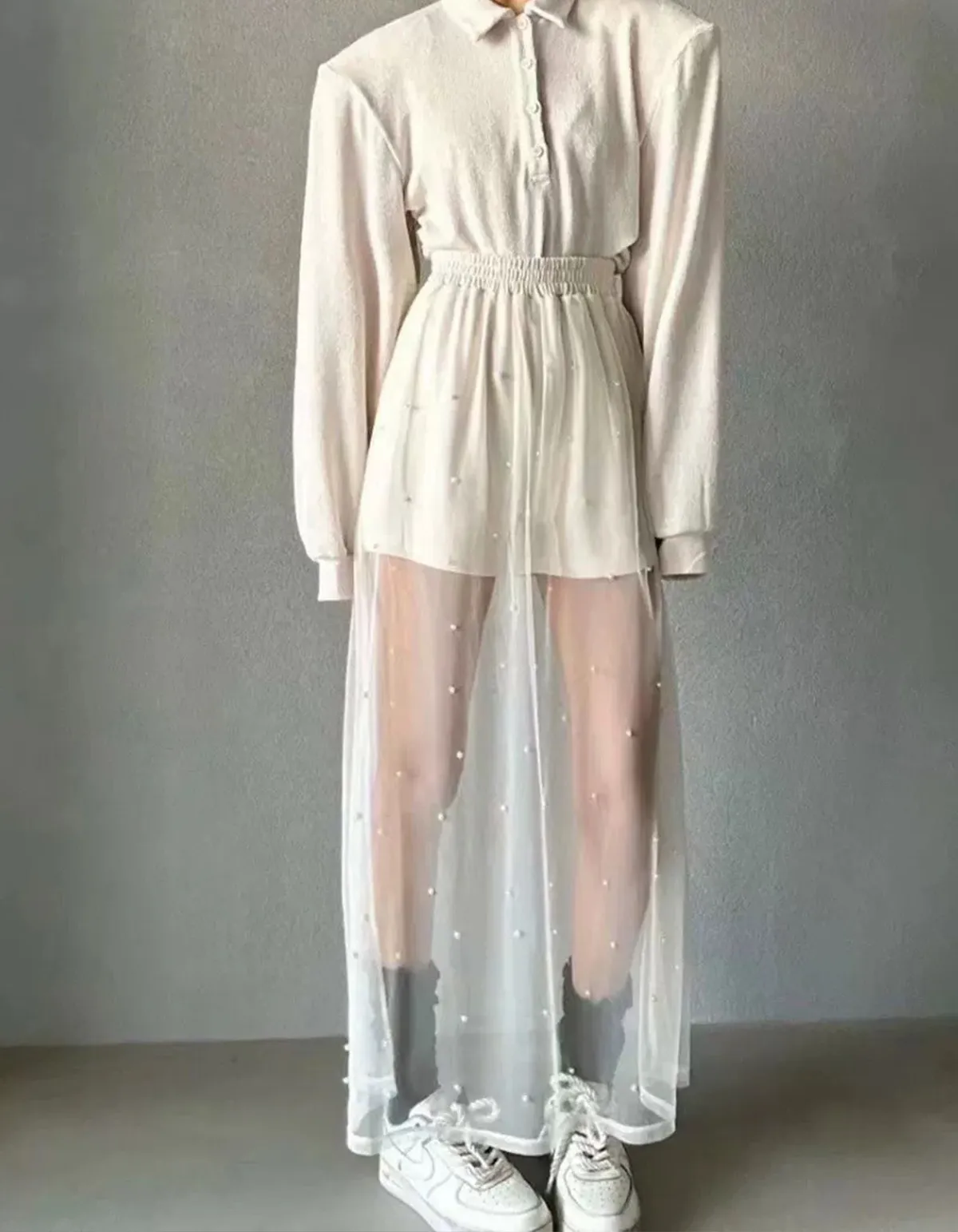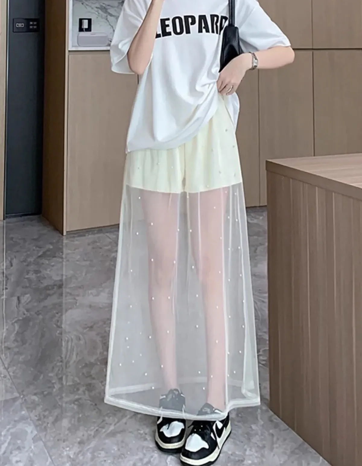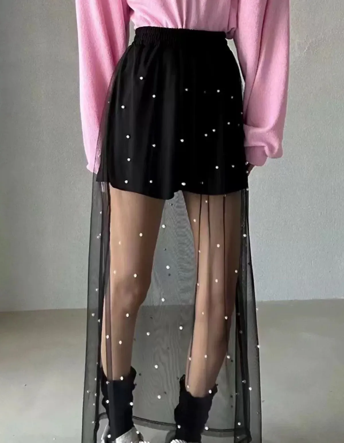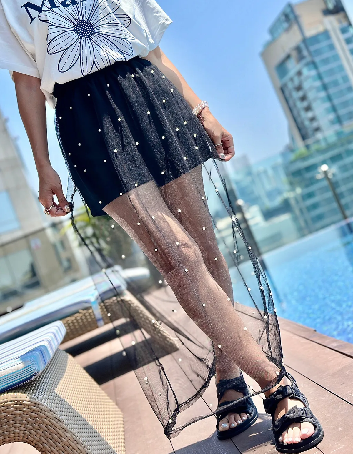韓國店家賣翻了‼️還有好多日本訂單~蕾絲X珍珠設計自帶仙氣 上身秒氣質高雅裡面是短褲 追趕跑跳碰都可以也不會曝光蕾絲紗裙長裙若隱若現帶性感 穿起來真的只有好~仙~喔~▶️腰圍有彈性 XS~L都可以駕馭兩件式穿搭更有層次設計穿搭感【材質】蕾絲/珍珠【尺寸】腰圍29~50/臀圍48/外群全長94/內短褲全長38cm