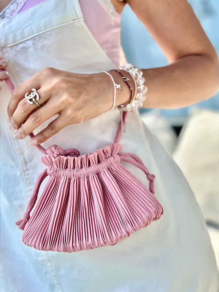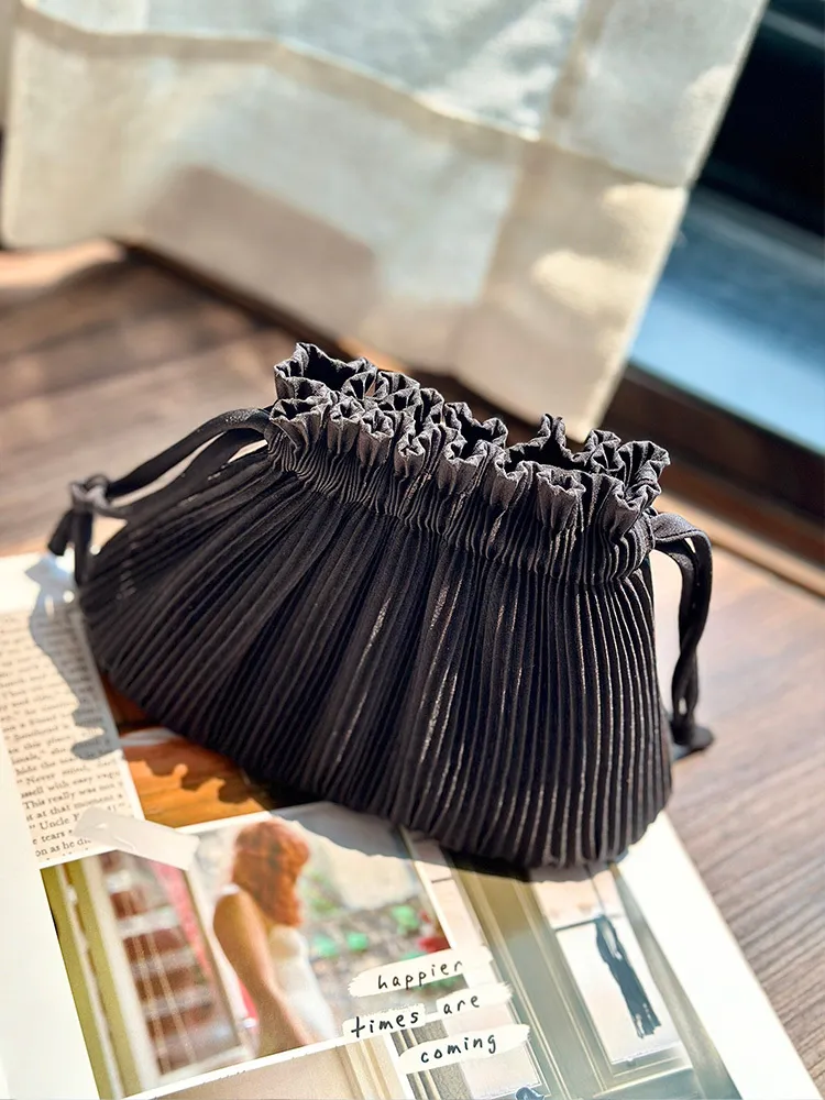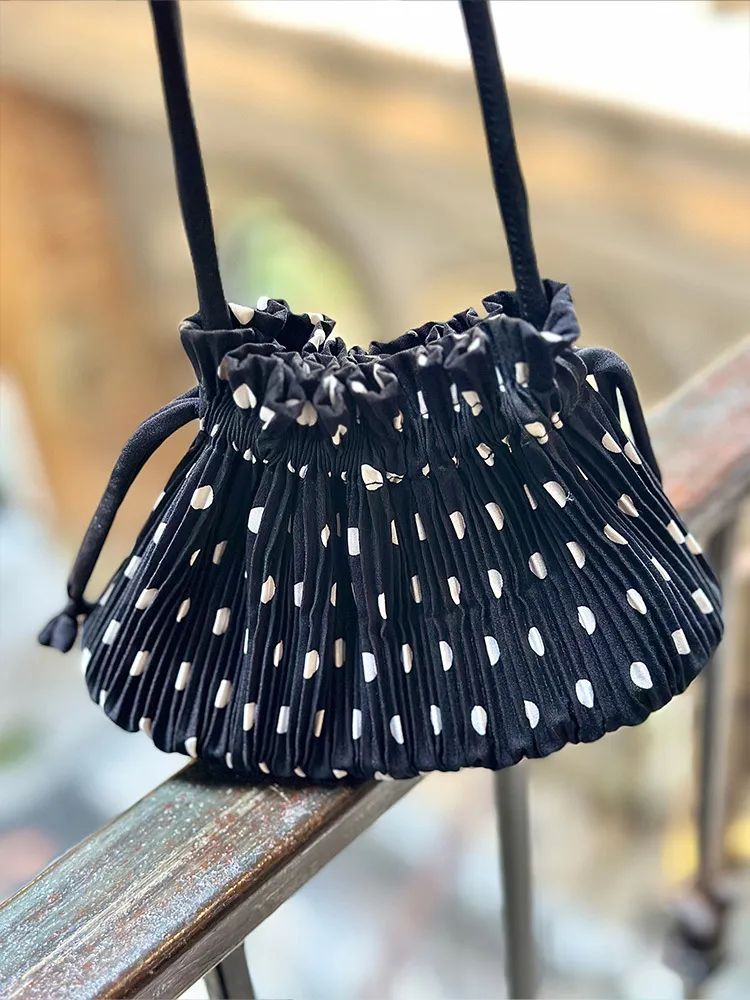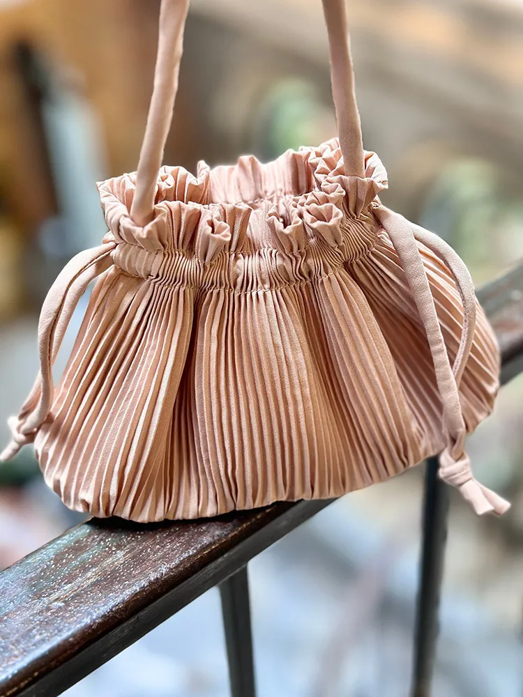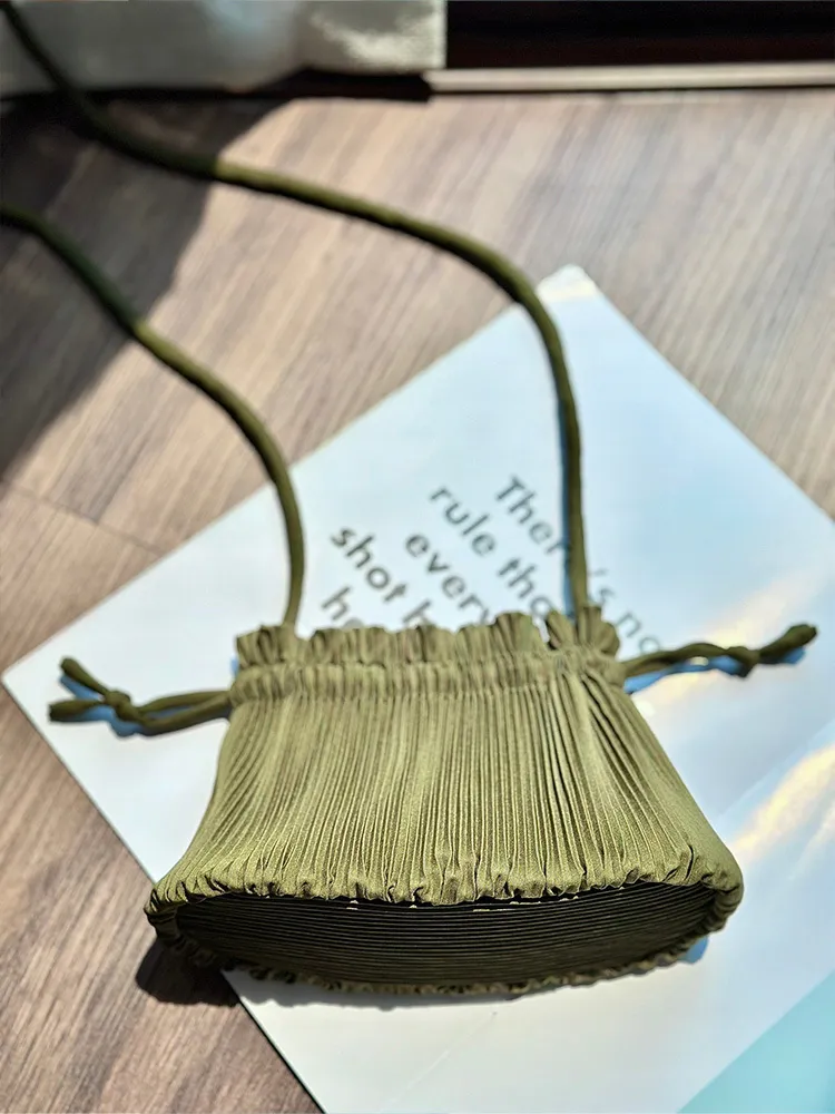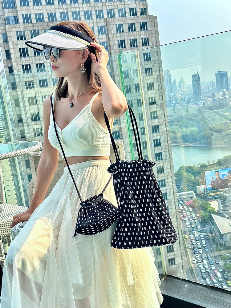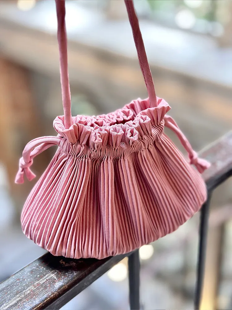 泰國設計師品牌Mini水餃包皺摺設計 造型非常時尚又可愛包包容量可以裝手機/短夾沒問題重點非常耐重 有底版設計不會往下沈 怎麼放包型一樣都好看肩背/斜背任何身高都可駕馭背帶長度可以自己打結就可變短 【尺寸】底長20/底寬9/高13/提把長60cm