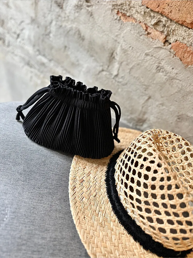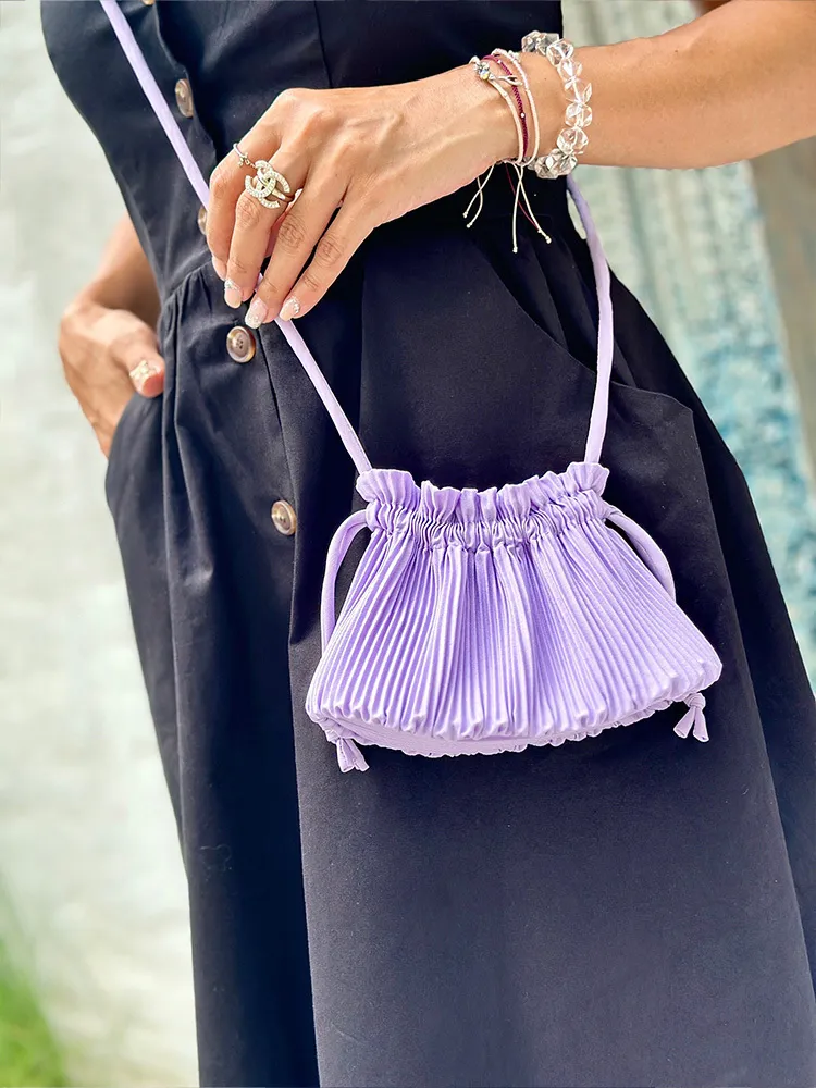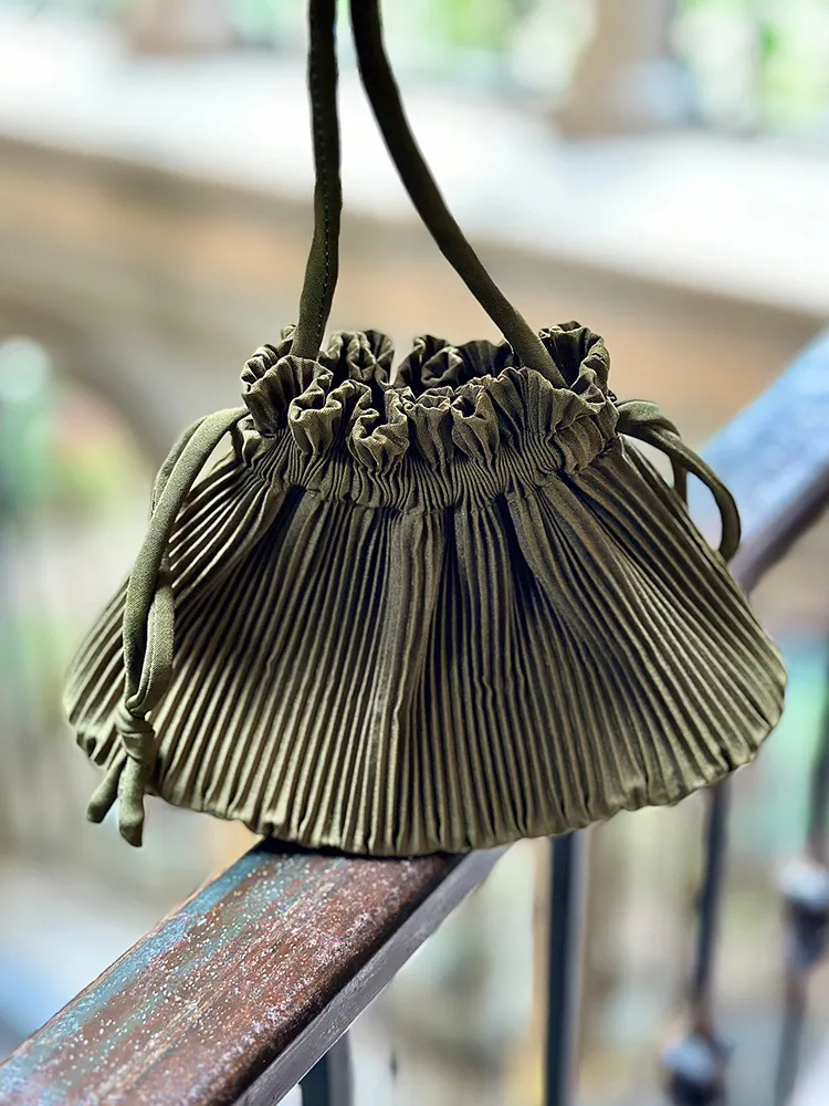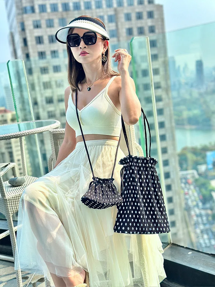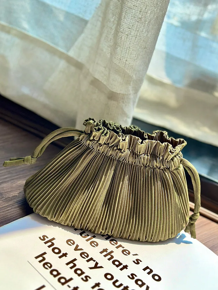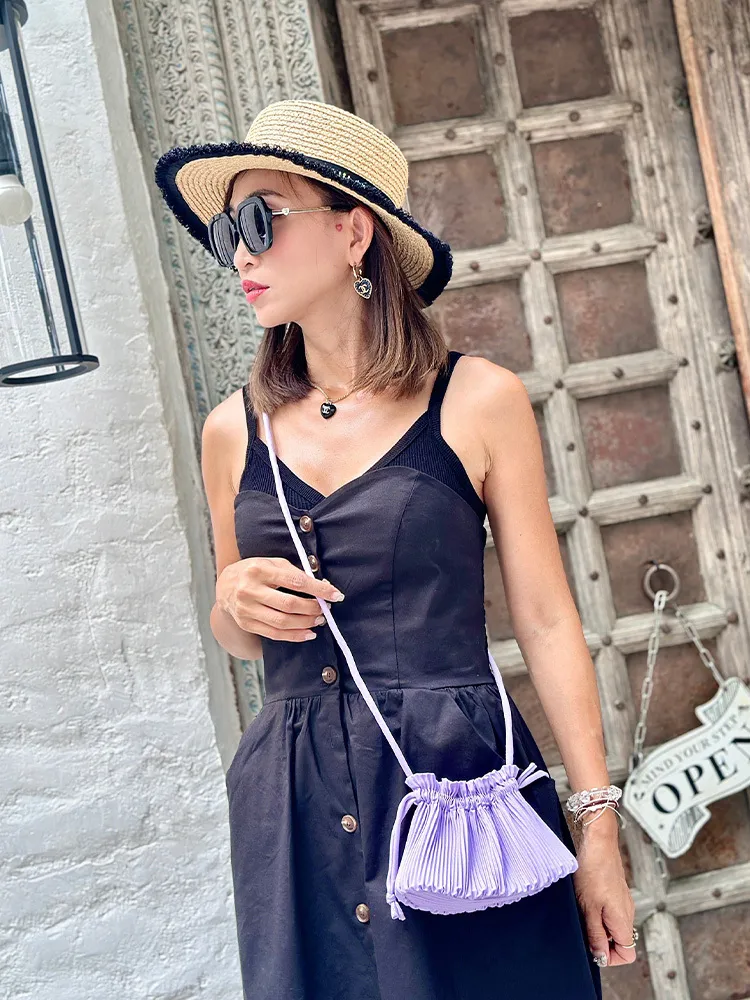 泰國設計師品牌Mini水餃包皺摺設計 造型非常時尚又可愛包包容量可以裝手機/短夾沒問題重點非常耐重 有底版設計不會往下沈 怎麼放包型一樣都好看肩背/斜背任何身高都可駕馭背帶長度可以自己打結就可變短 【尺寸】底長20/底寬9/高13/提把長60cm
