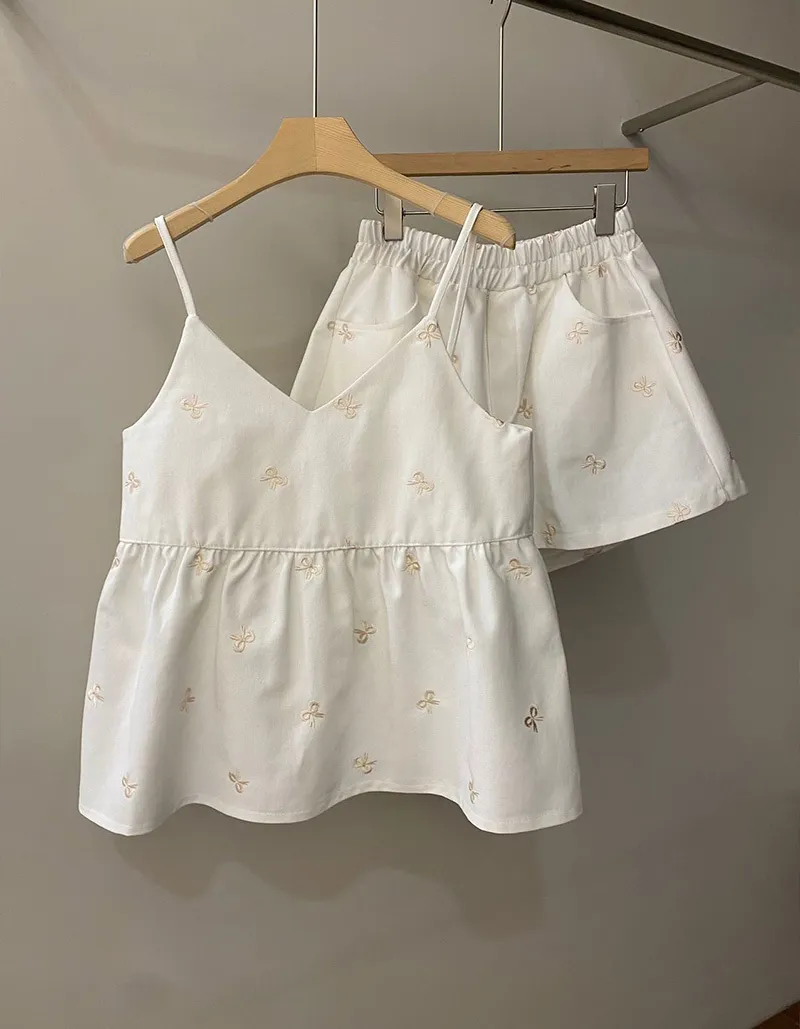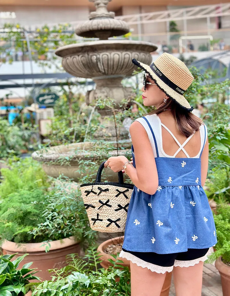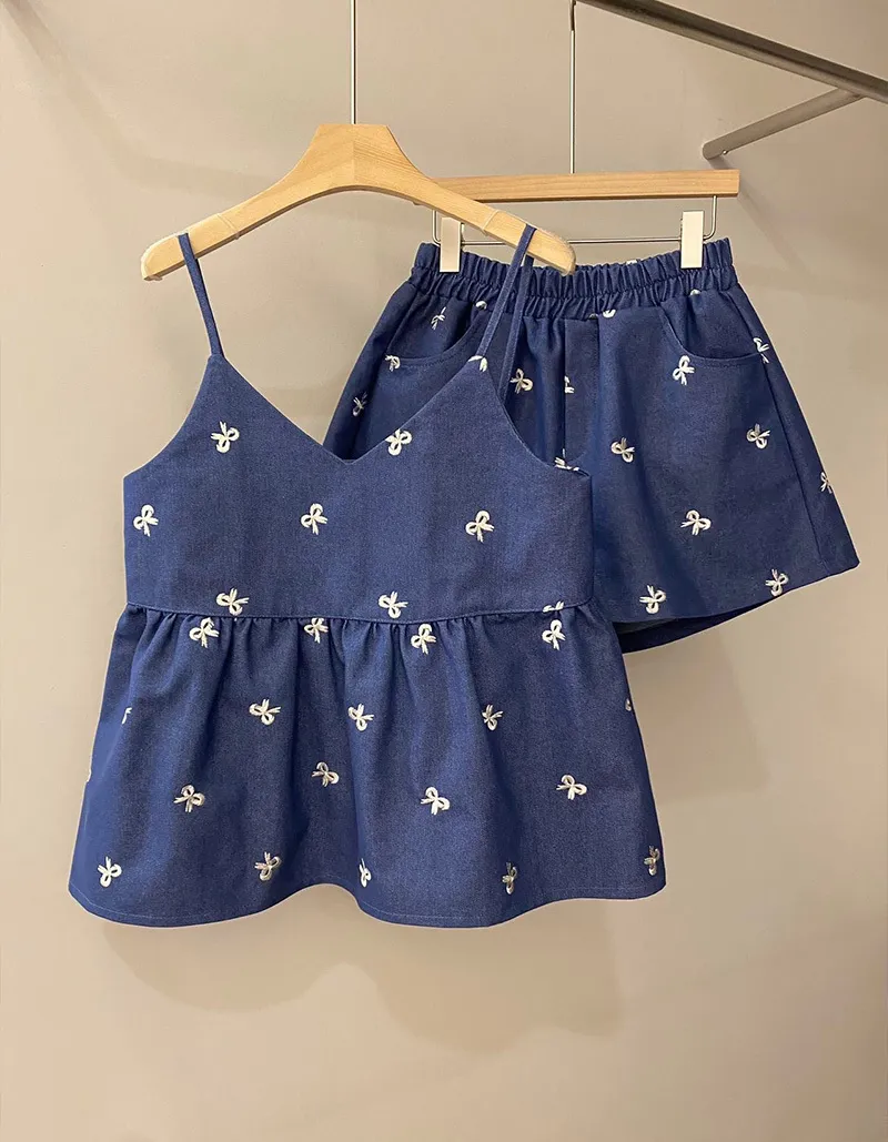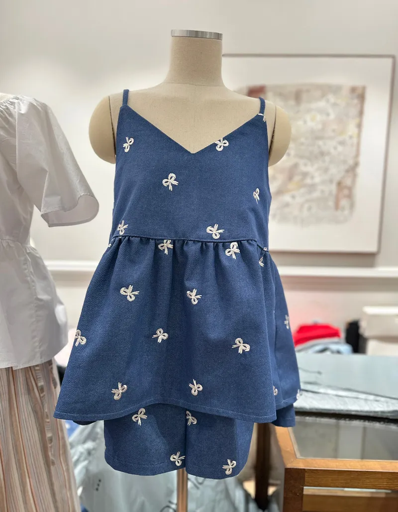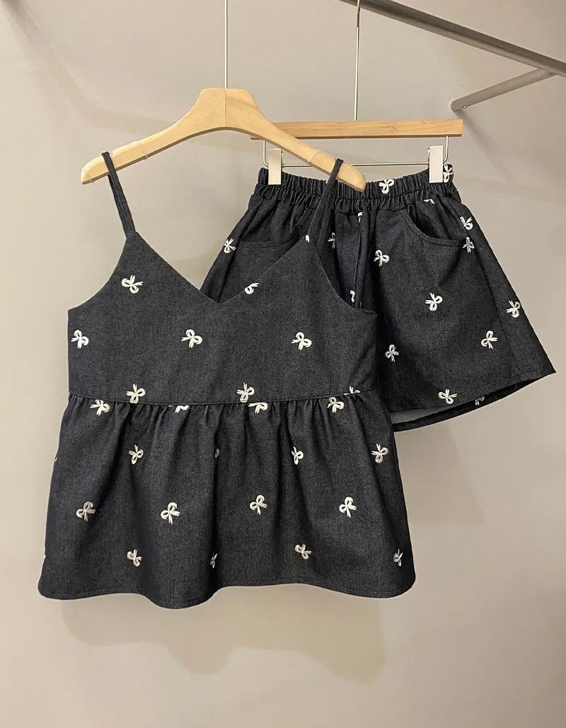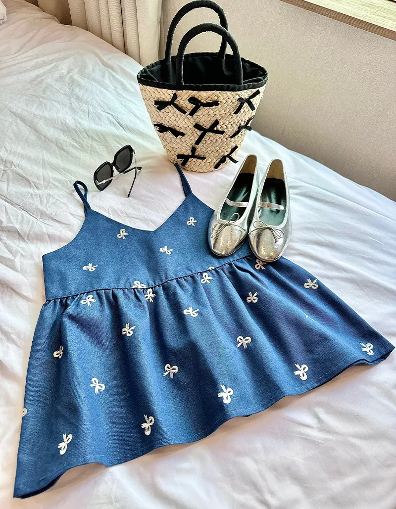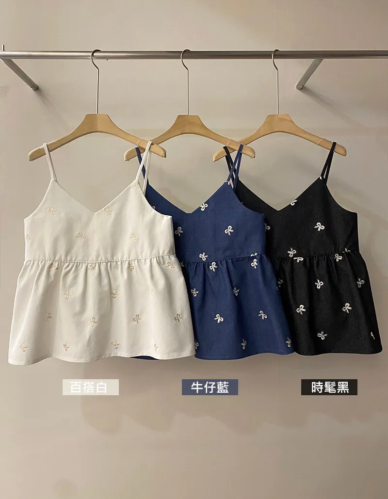 🟡可以整套購買 也可以單獨背心或是褲子刺繡蝴蝶結質感超好牛仔棉布料非常挺不會軟趴趴的~背心娃娃裝剪裁 增加甜美感版型孕婦也可以駕馭褲子腰圍有彈性~兩側有口袋更實穿【材質】牛仔棉【背心尺寸】肩帶長 11 / 胸圍 44 / 衣長 63cm【褲子尺寸】腰圍 32~50 / 臀圍 60 / 全長34cm
