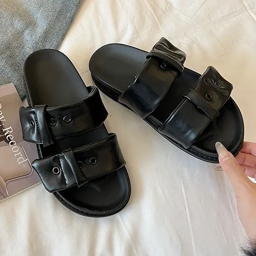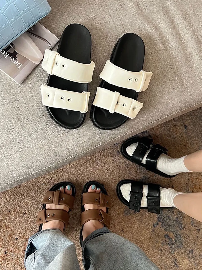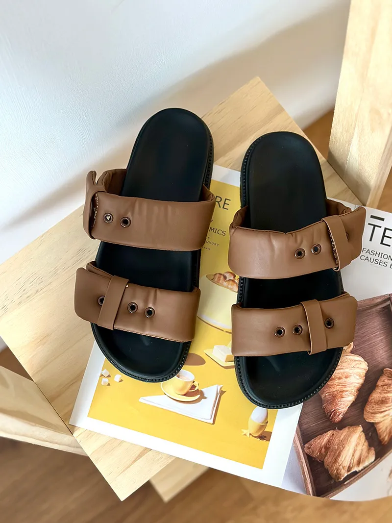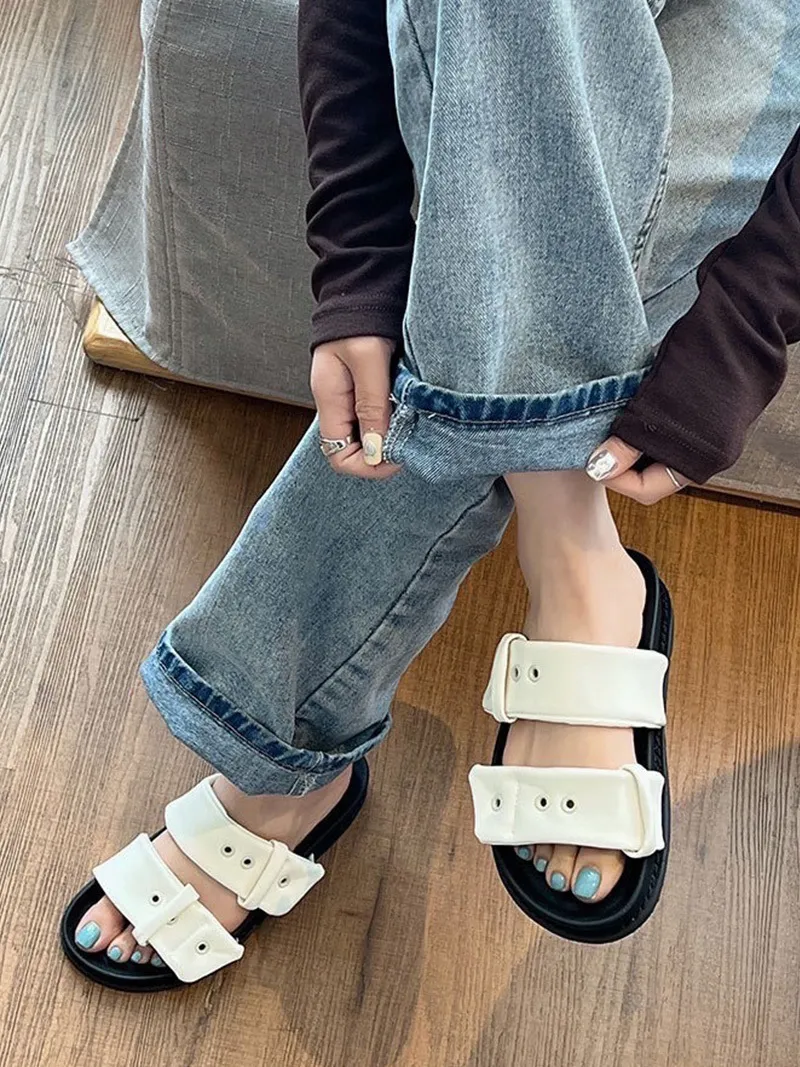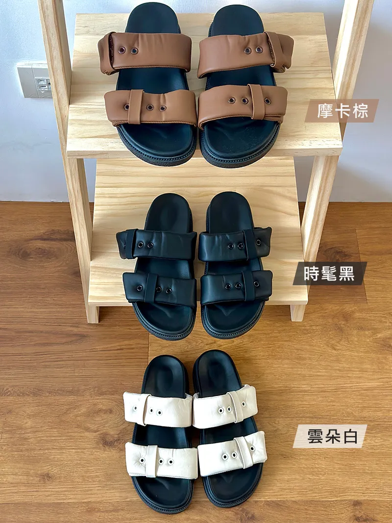 英倫風滿滿的設計感胖胖雲朵的雙皮帶造型增加時髦鞋底選用了加厚的橡膠底部 非常好走又Q彈好走又好穿 還有時尚感不是一般的拖鞋!3色都百搭雲朵白▶️白色百搭 時髦黑▶️黑色個性摩卡棕▶️棕色流行⇨厚底鞋跟高度3公分 上腳秒增高整體鞋身很輕!上腳輕鬆無負擔!這雙拖鞋不管是整體的色調跟設計 完全找不到缺點能長高又好穿好搭還很輕百元商品價格也好甜~真心非常推薦入手☝🏻【尺寸】22.5~25(有半碼)【版型】正常版【鞋跟高】3cm