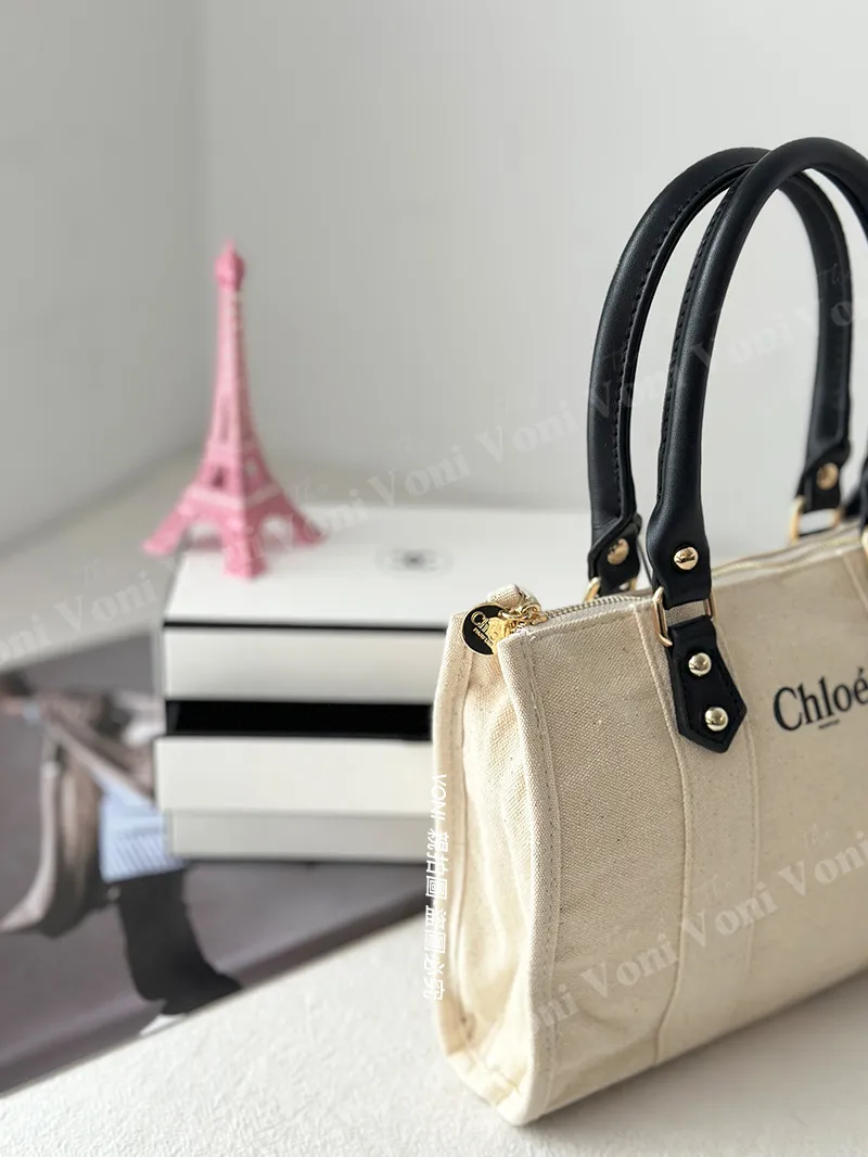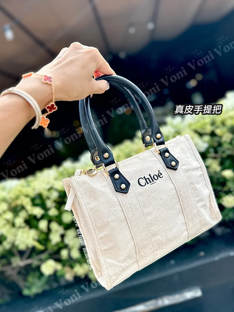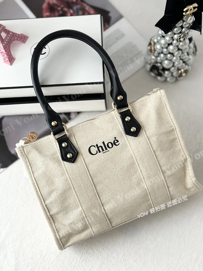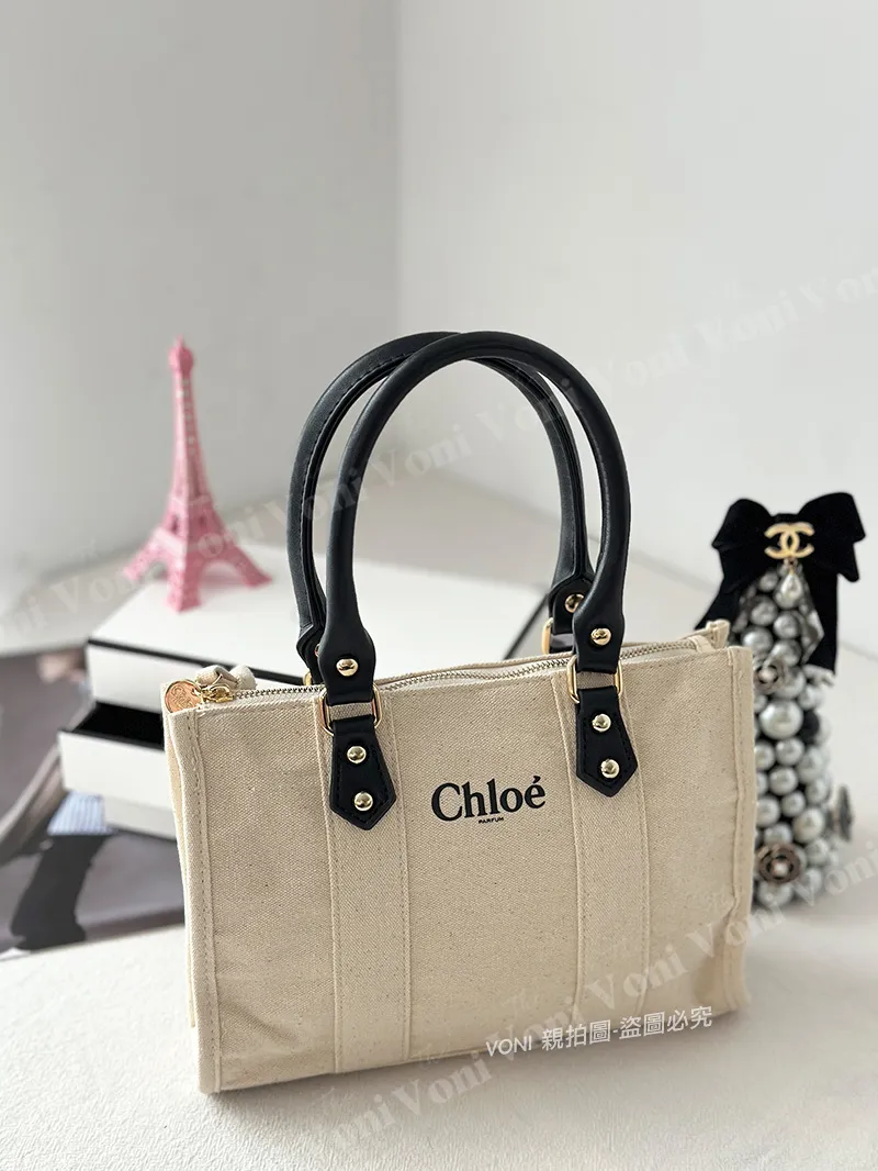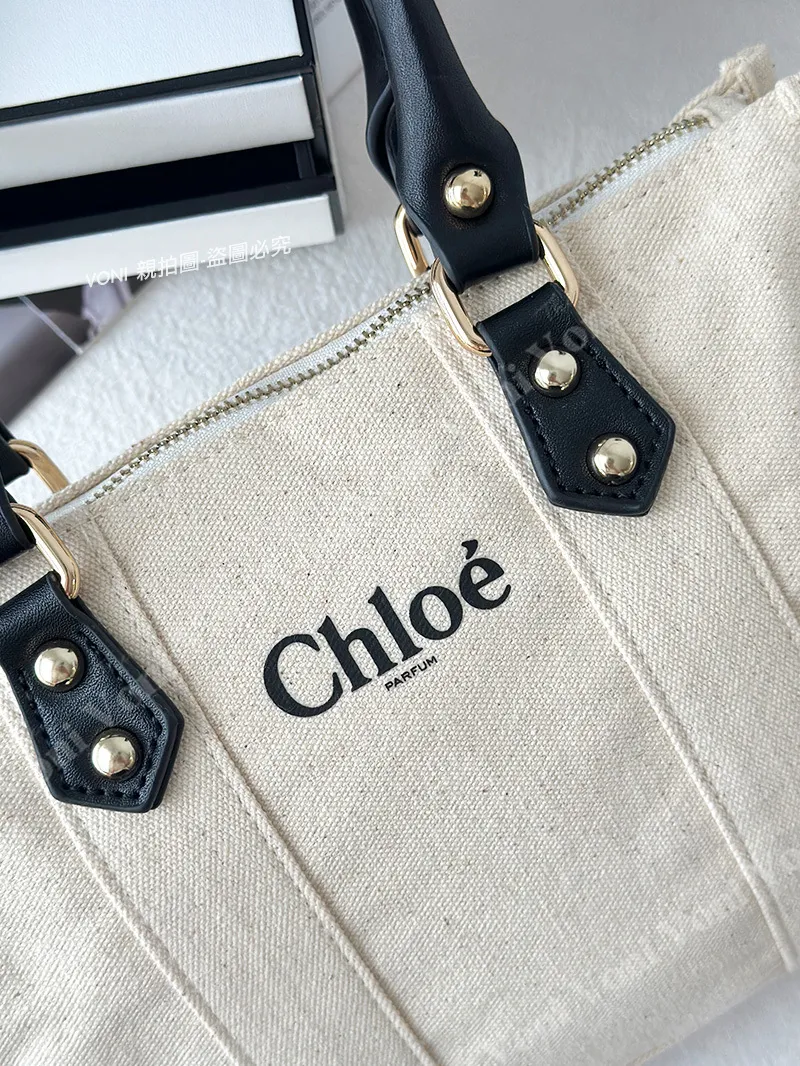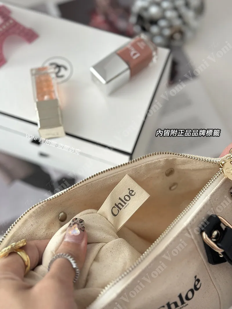 Chloé 芳心之旅香水贈禮化妝包化妝包數量珍貴!外面都絕版了!太香了~收到就是可以直接帶出門⮕ ⮕ 手提托特包😍▶️手提材質真皮手提把▶️簡單又好看的設計▶️ 拉鍊上金色LOGO標示▶️拉鍊上有金色品牌Chloé LOGO▶️內都有Chloé品牌LOGO內標▶️帆布材質 背起來不會軟啪啪的~☝🏻重點容量很好裝 長夾+手機沒問題👍【材質】帆布【尺寸】23cm x 5cm x 17cm