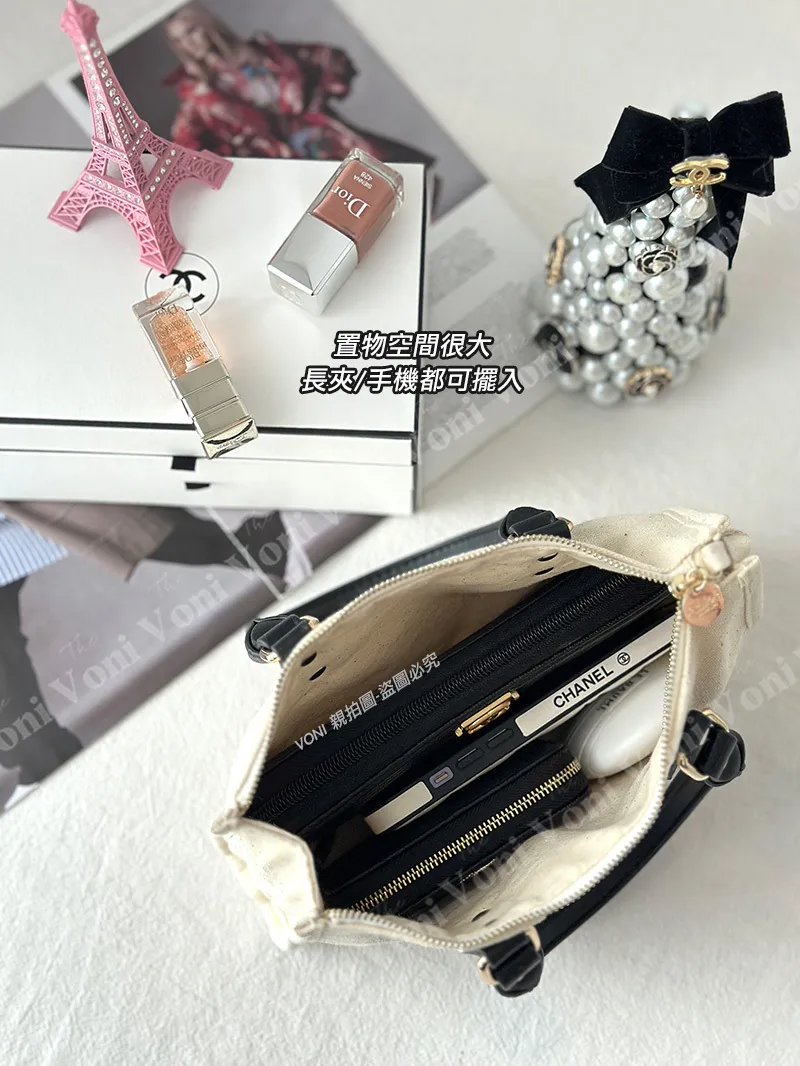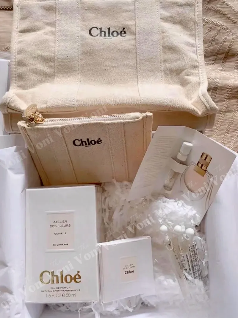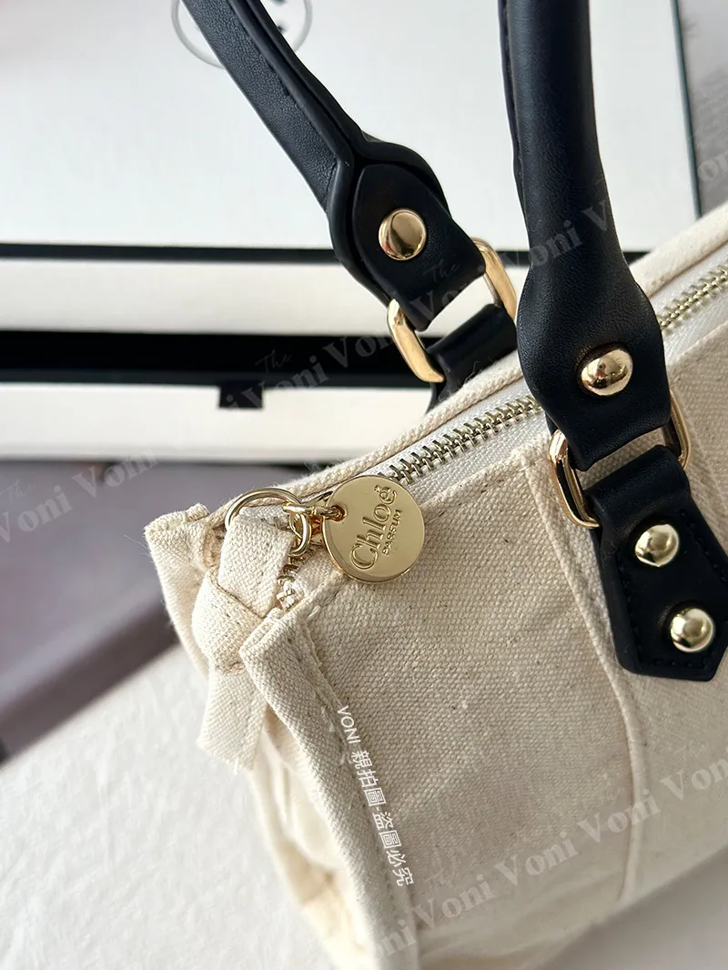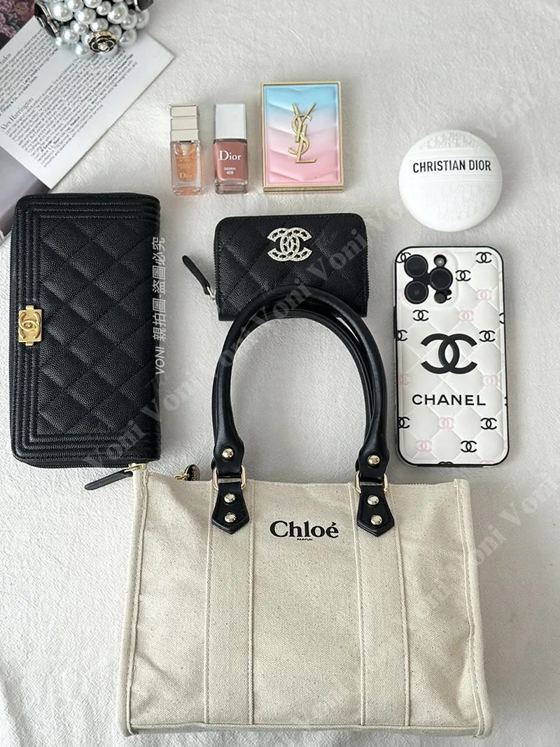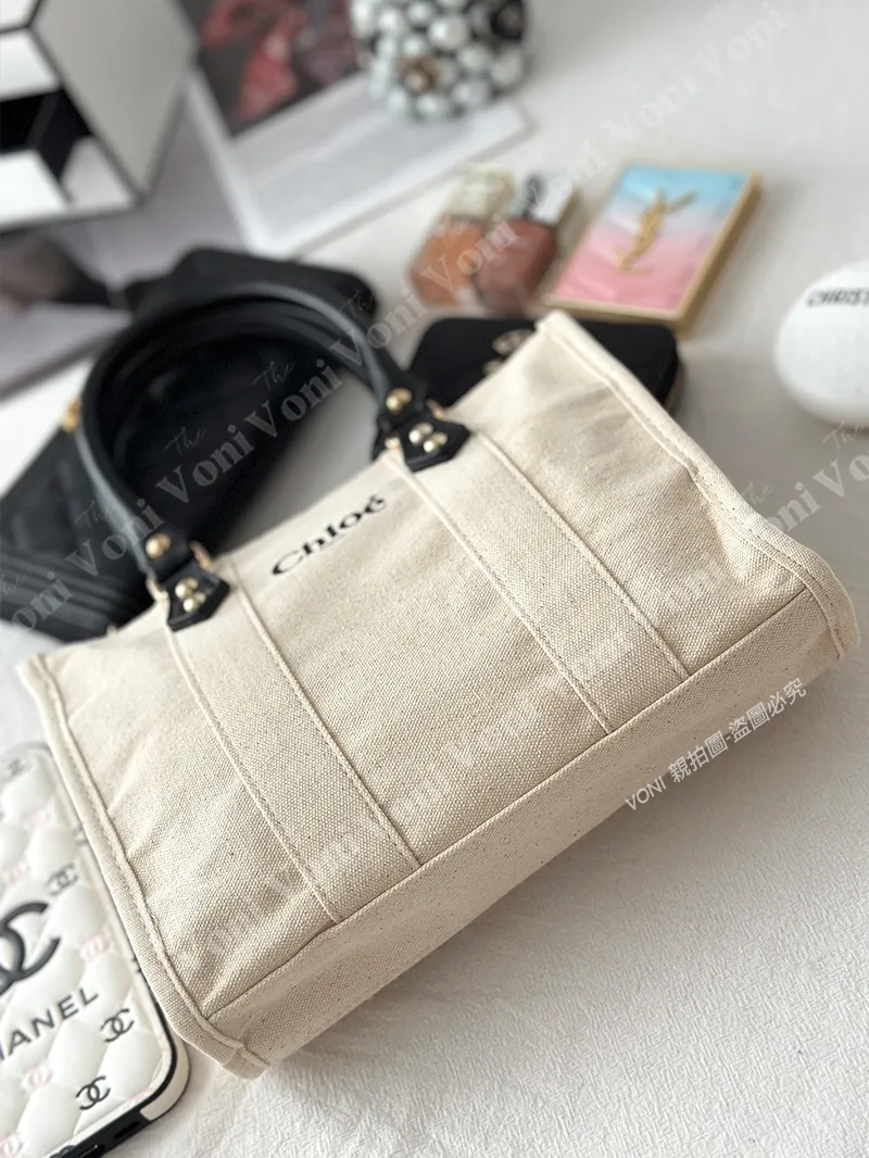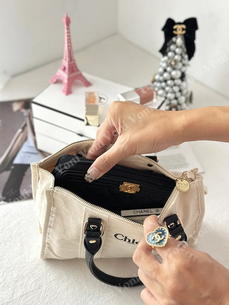 Chloé 芳心之旅香水贈禮化妝包化妝包數量珍貴!外面都絕版了!太香了~收到就是可以直接帶出門⮕ ⮕ 手提托特包😍▶️手提材質真皮手提把▶️簡單又好看的設計▶️ 拉鍊上金色LOGO標示▶️拉鍊上有金色品牌Chloé LOGO▶️內都有Chloé品牌LOGO內標▶️帆布材質 背起來不會軟啪啪的~☝🏻重點容量很好裝 長夾+手機沒問題👍【材質】帆布【尺寸】23cm x 5cm x 17cm