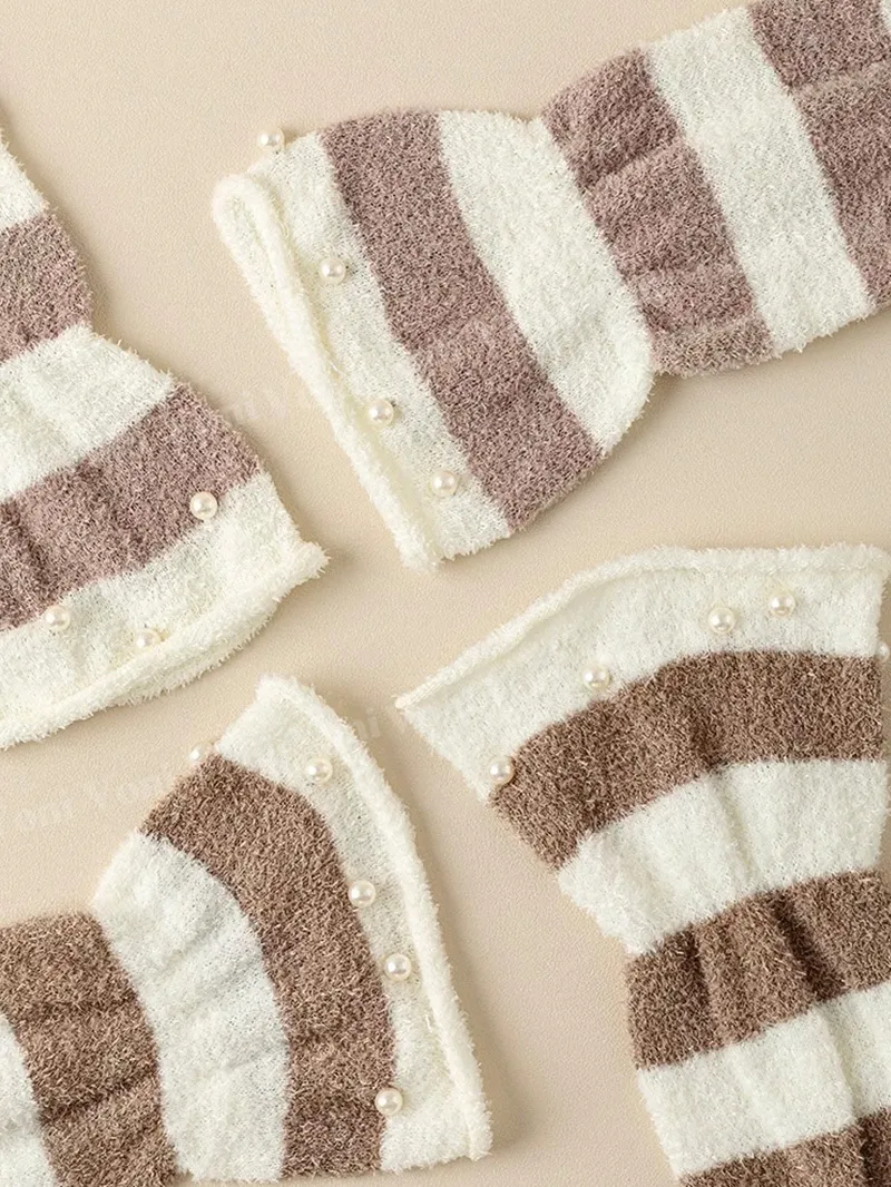 橫條X珍珠 有著高級感十足的設計 在寒冷的季節里也能成為時尚焦點