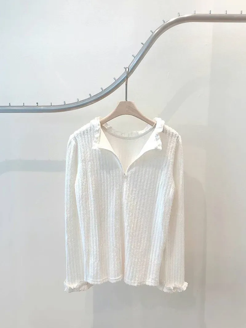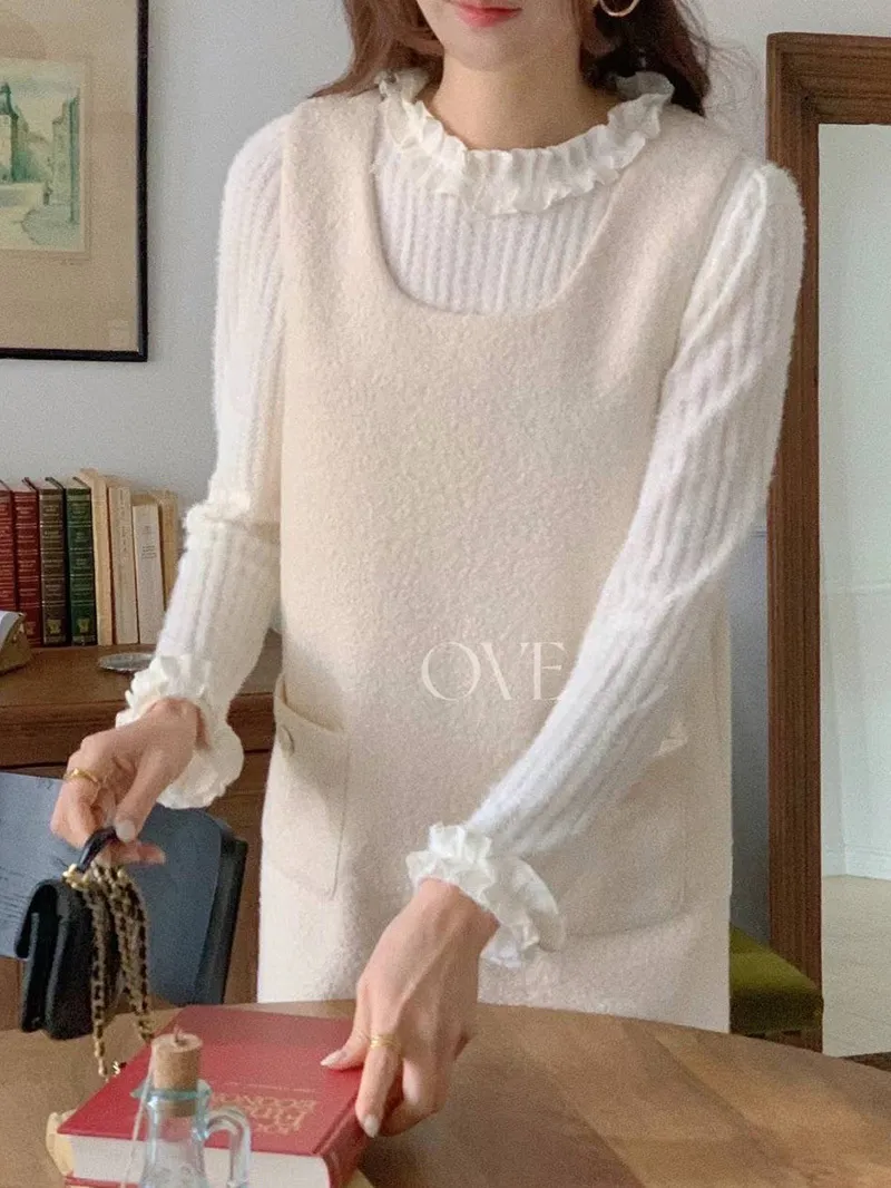 低調輕奢好質感 簡單卻好迷人😍仿水貂毛的觸感相當柔軟不刺癢剛剛好的長度上衣 紮~不紮都很氣質後面有拉鍊設計好穿脫袖子和領口花邊設計 更顯女人優雅氣質【材質】仿水貂毛【尺寸】肩寬39/胸圍48/全長52cm