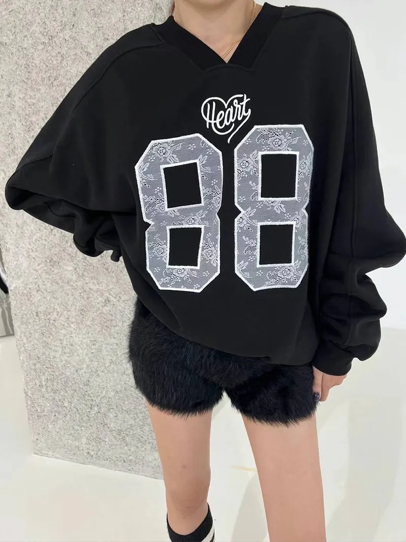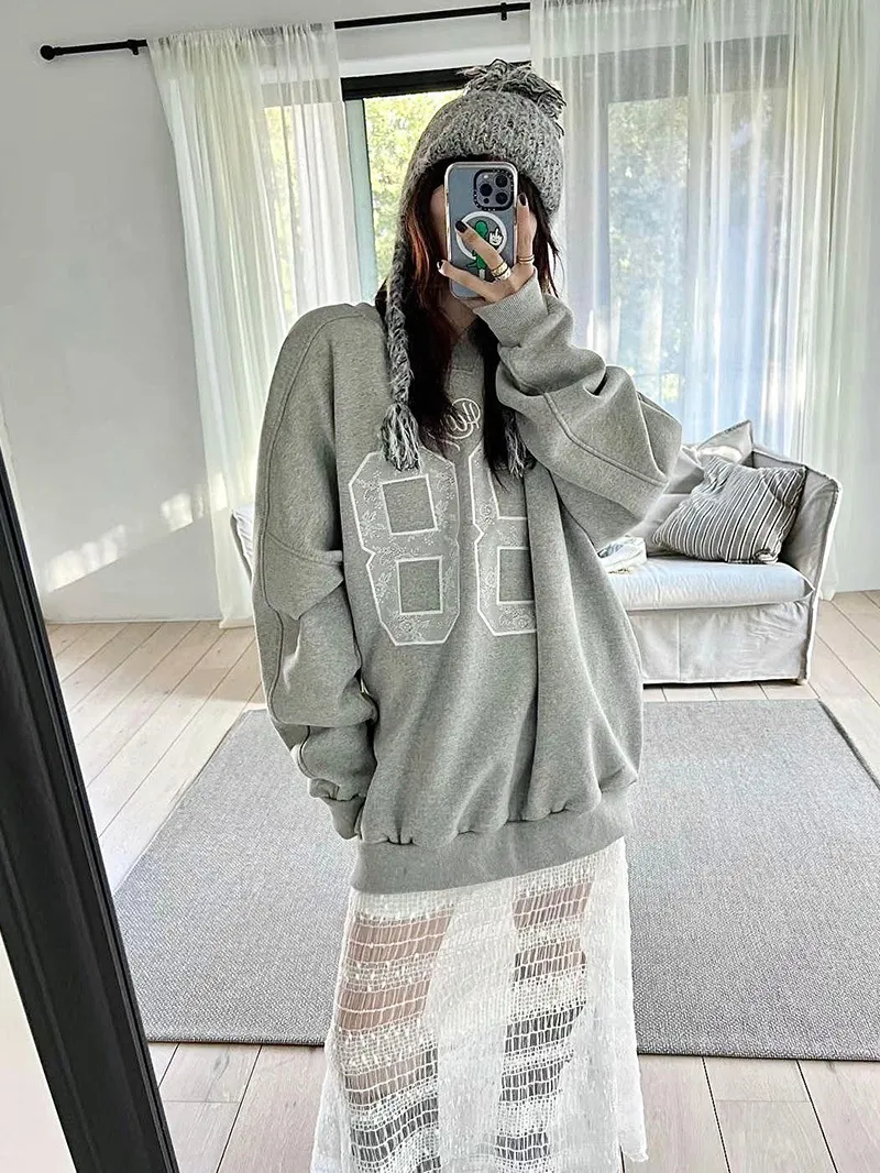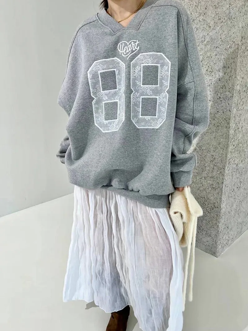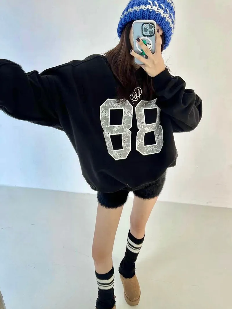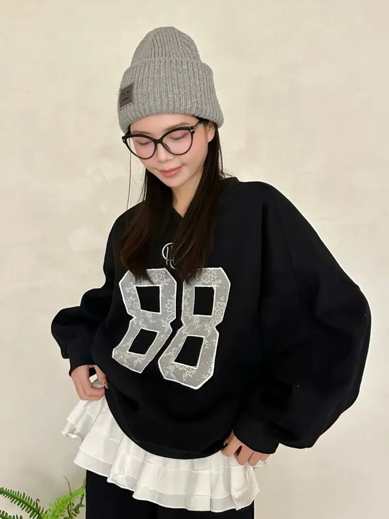 現貨-穿起來好韓妞 88蕾絲數字內刷毛長版上衣(共兩色)