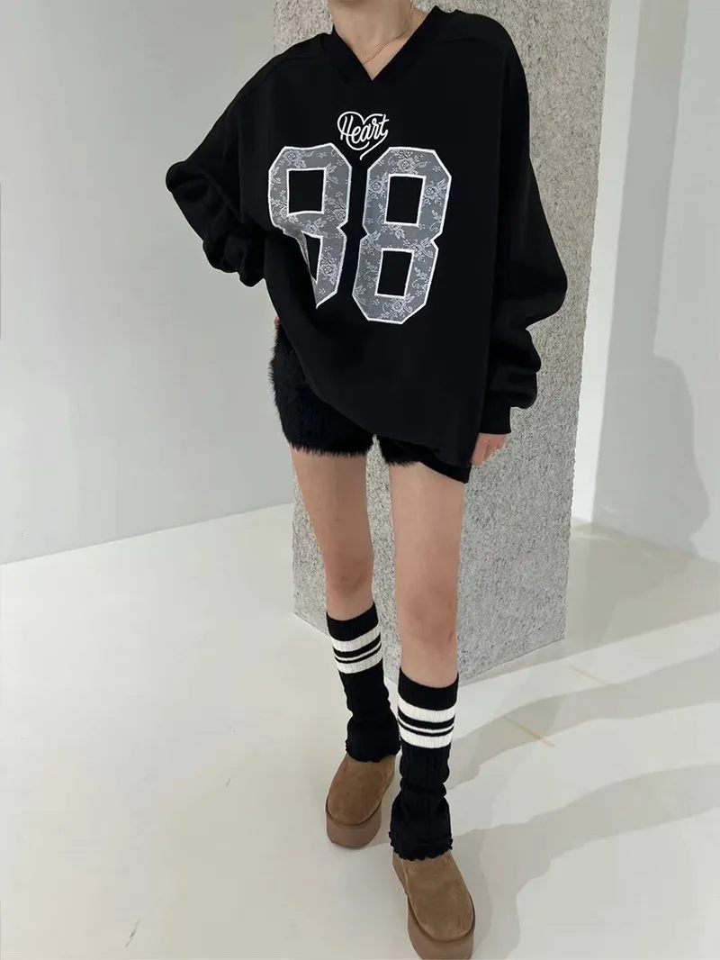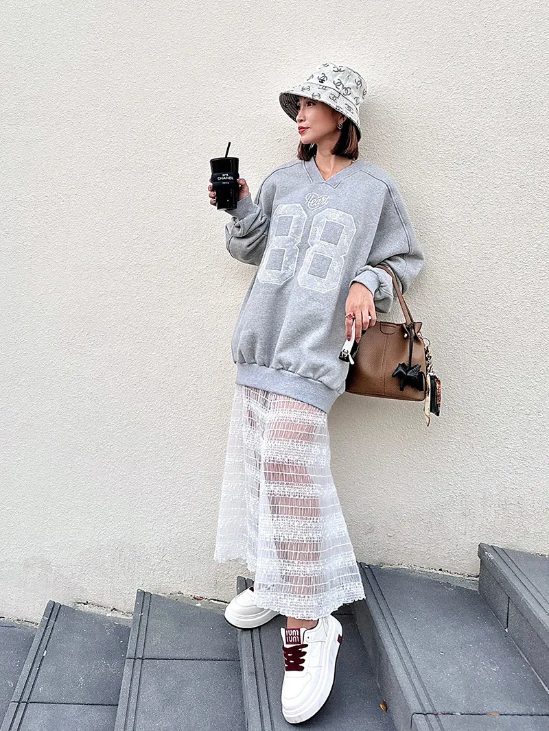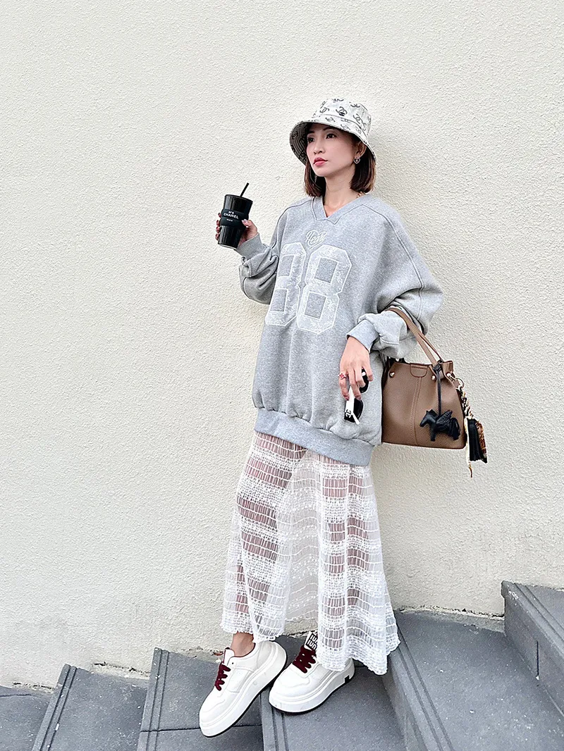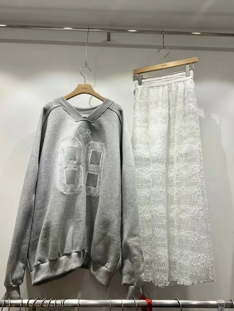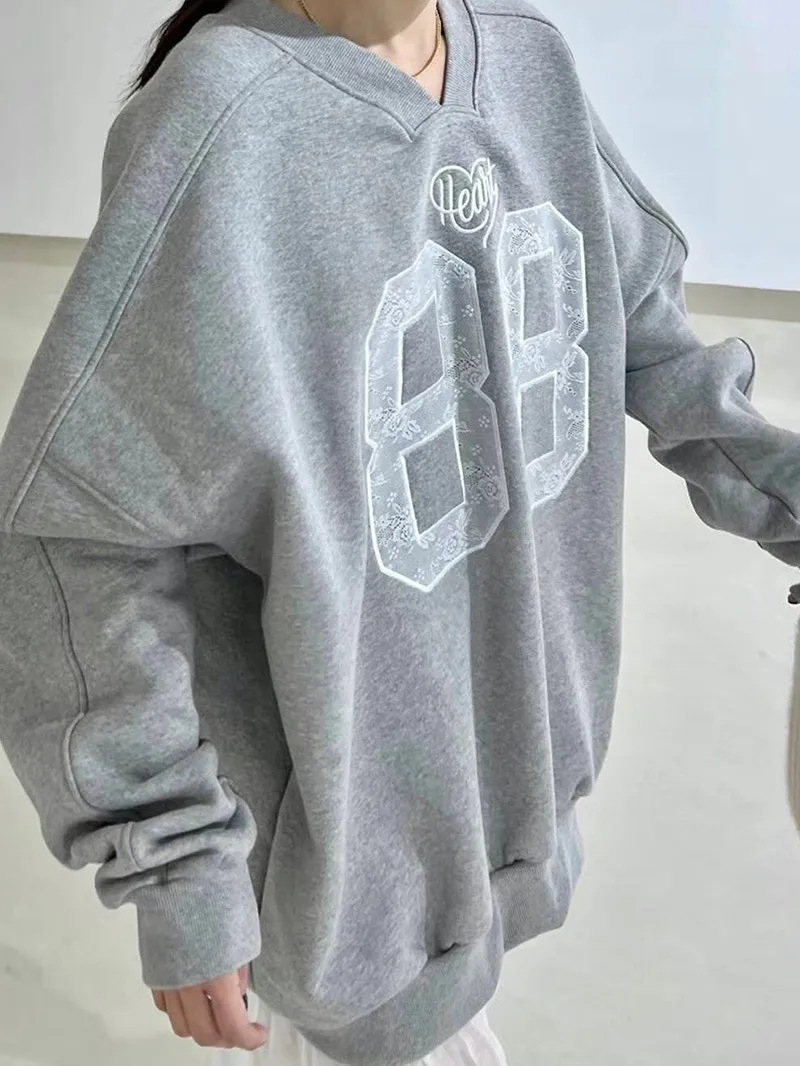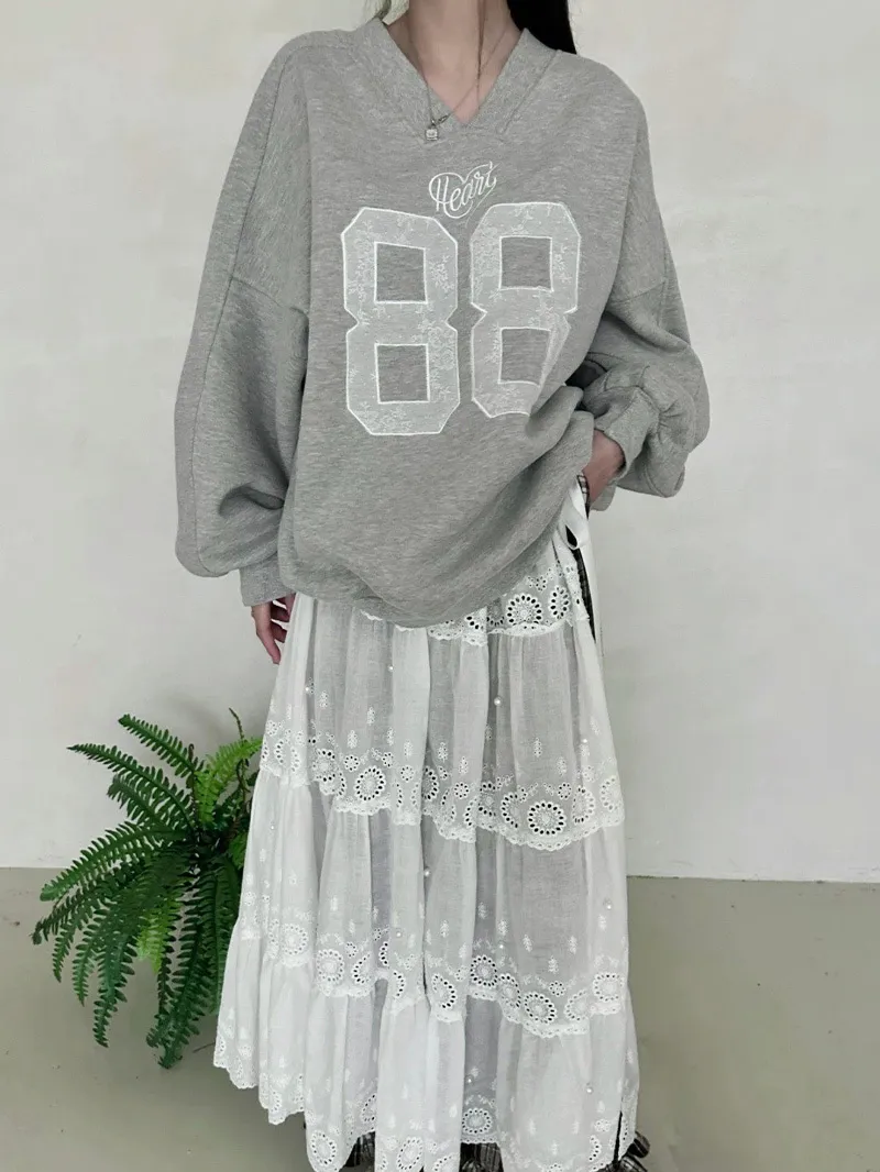 現貨-穿起來好韓妞 88蕾絲數字內刷毛長版上衣(共兩色)