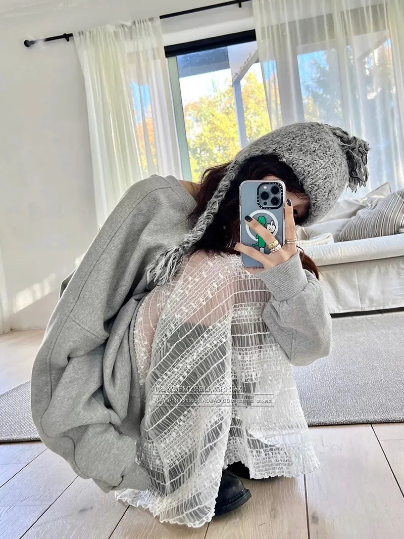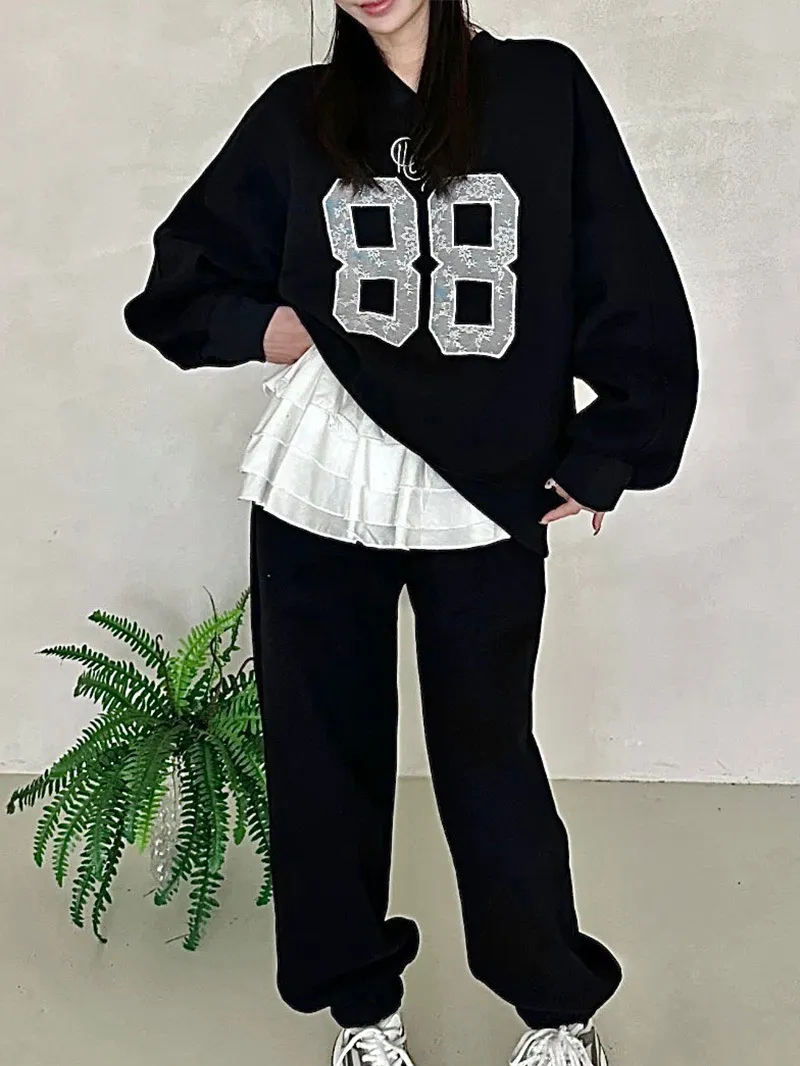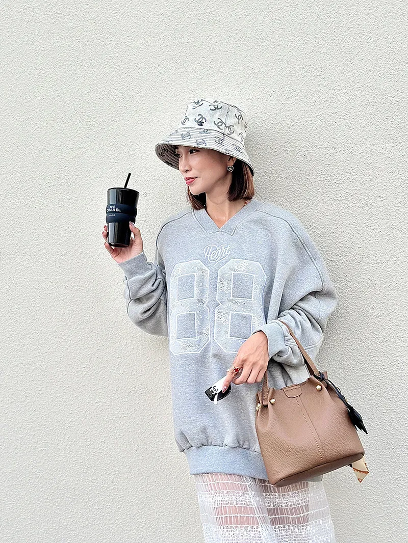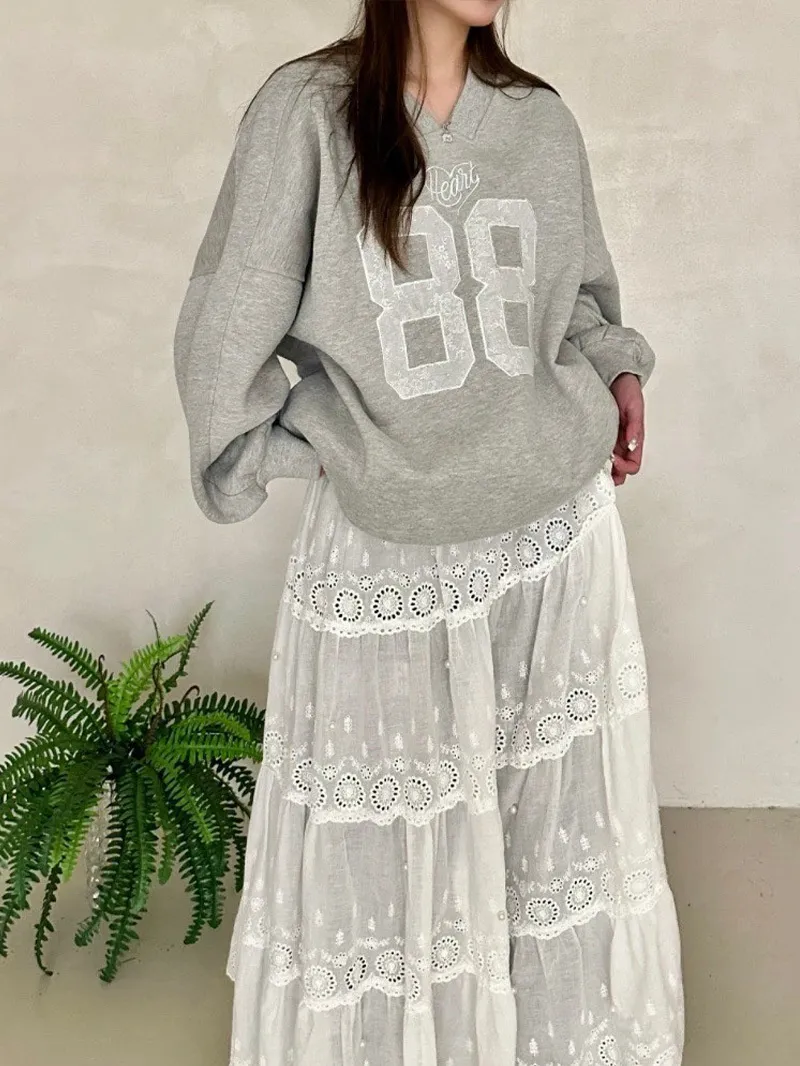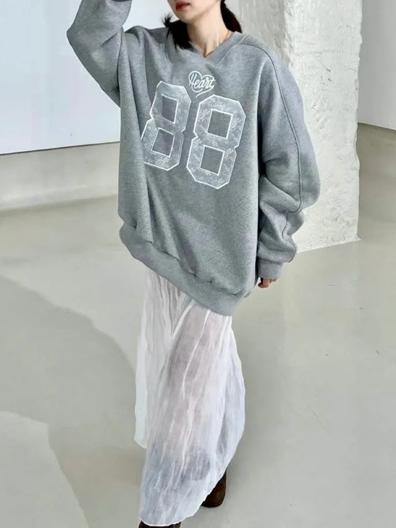 現貨-穿起來好韓妞 88蕾絲數字內刷毛長版上衣(共兩色)