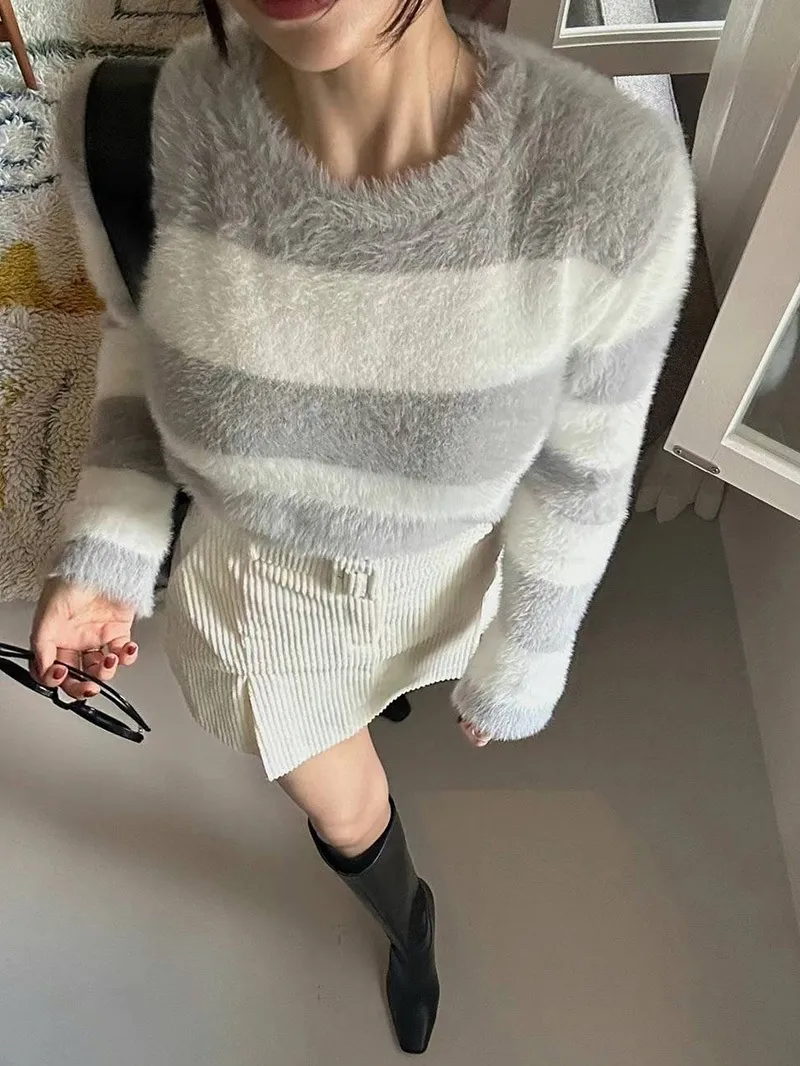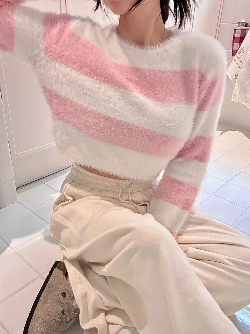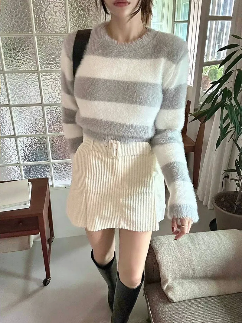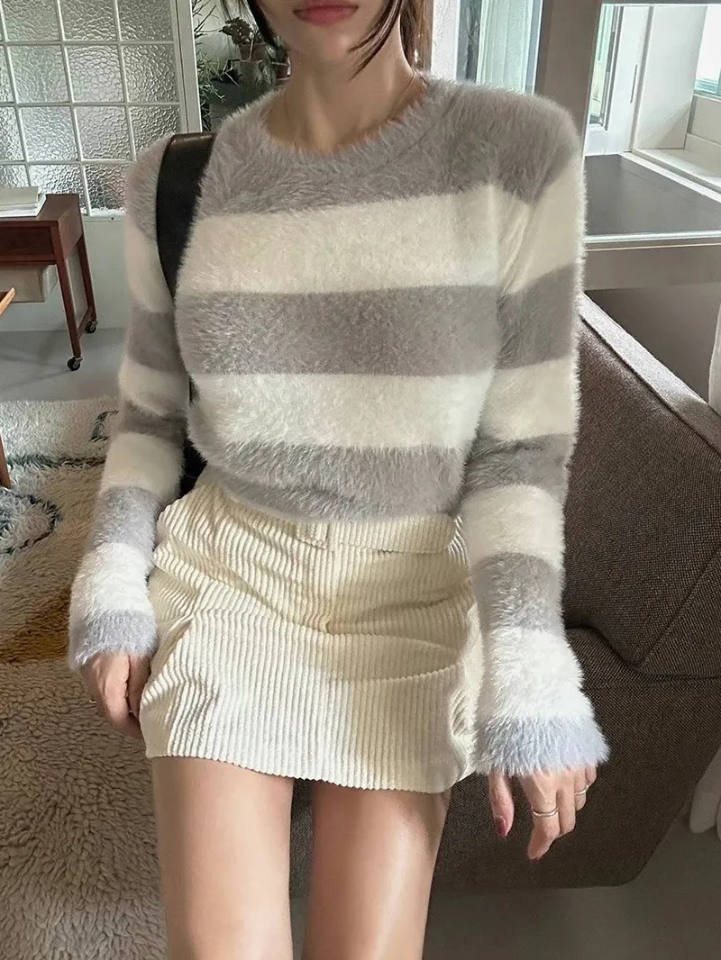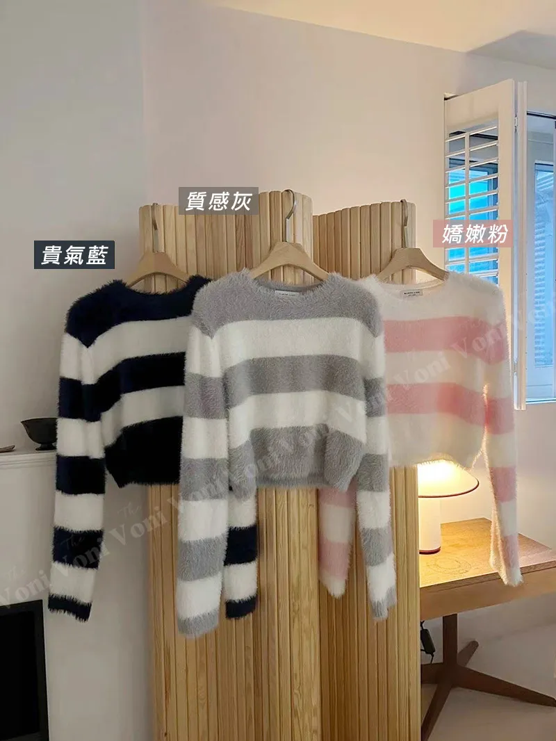 韓國氣質小姐姐 人造貂毛橫條上衣超舒服的人造貂毛 穿起來很保暖🔥配色都好甜美❣️3色都好看 ✔️嬌嫩粉✔️貴氣藍✔️質感灰簡約造型搭裙~搭褲~輕鬆就能穿搭【材質】人造貂毛【尺寸】肩寬40/全長42/胸圍46cm