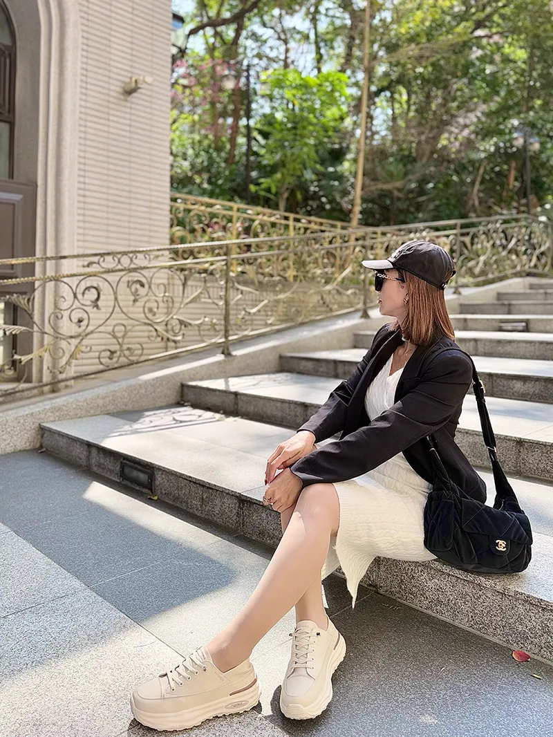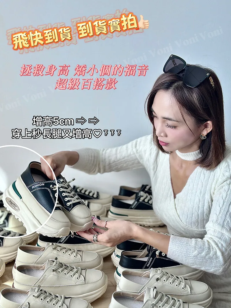 ➋鞋底軟Q厚底增高5cm ⮕ 一穿拉長小腿比例 舒適增高顯腿長
