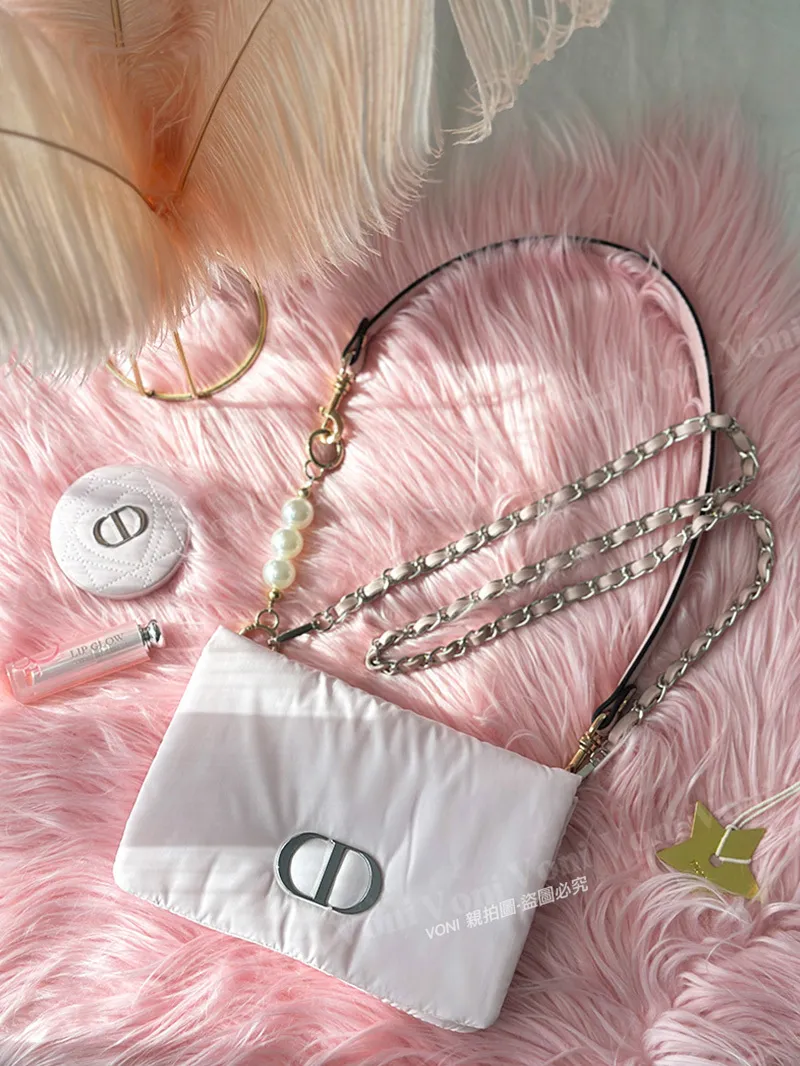 雲朵化妝包上面有立體銀色CD LOGO絕美~好有品牌感~
