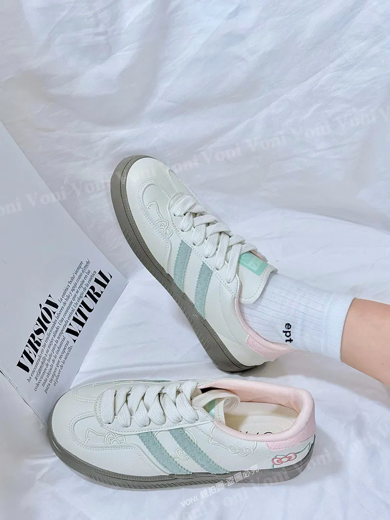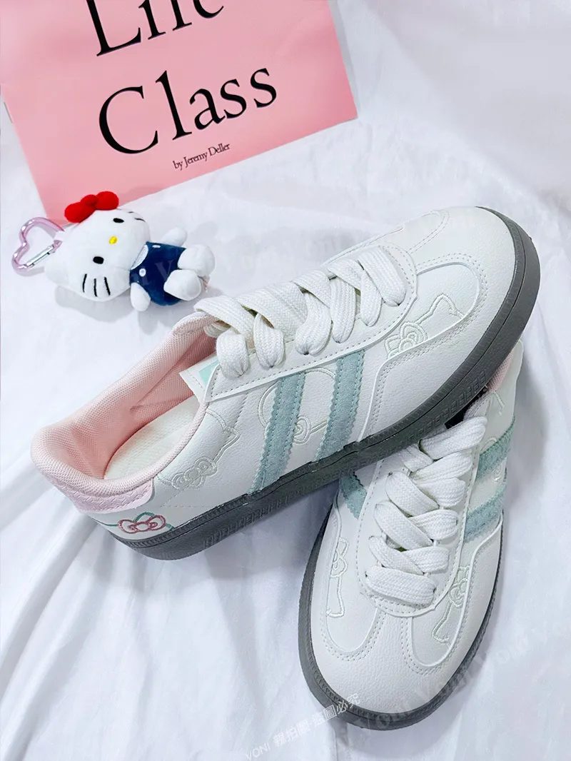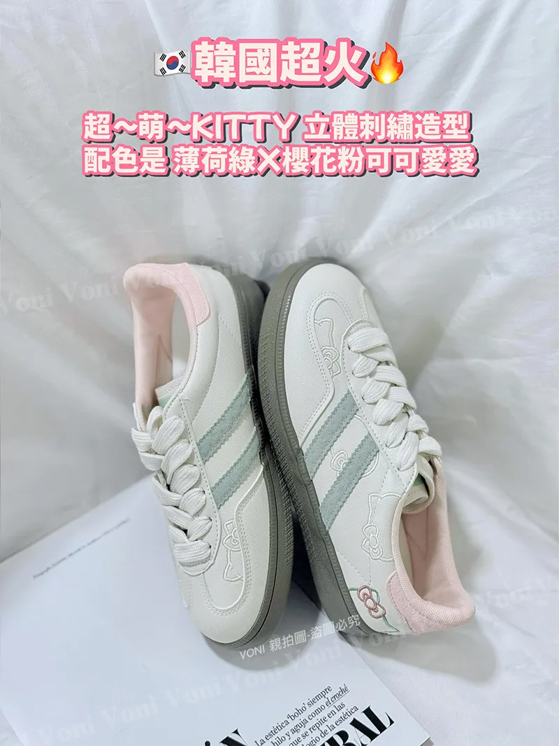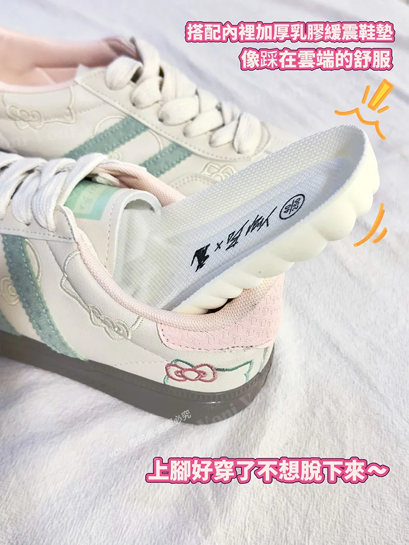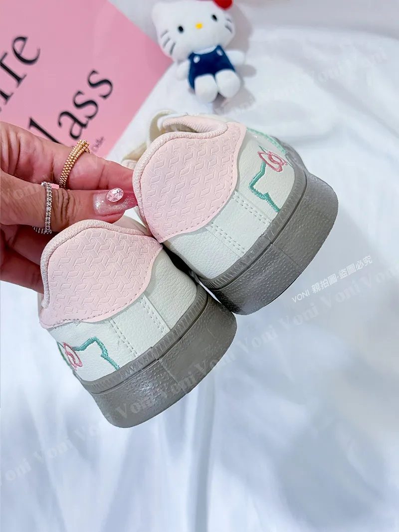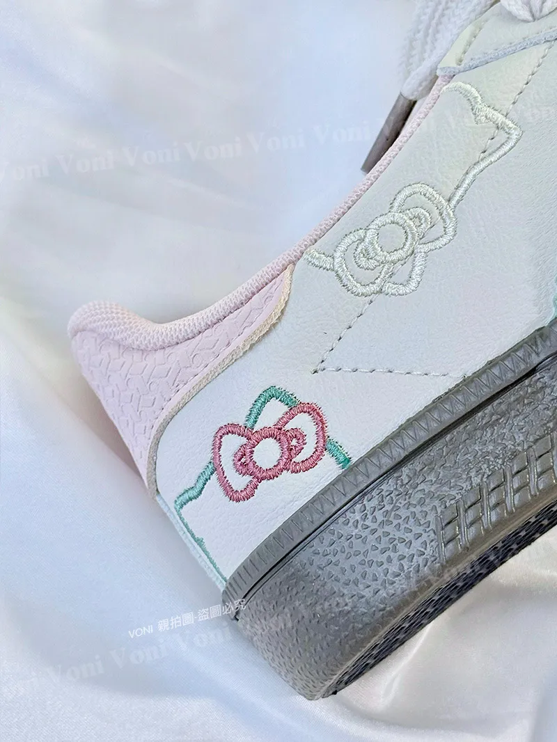 鞋側的KITTY造型以及鞋後跟超療癒的粉色拼接設計