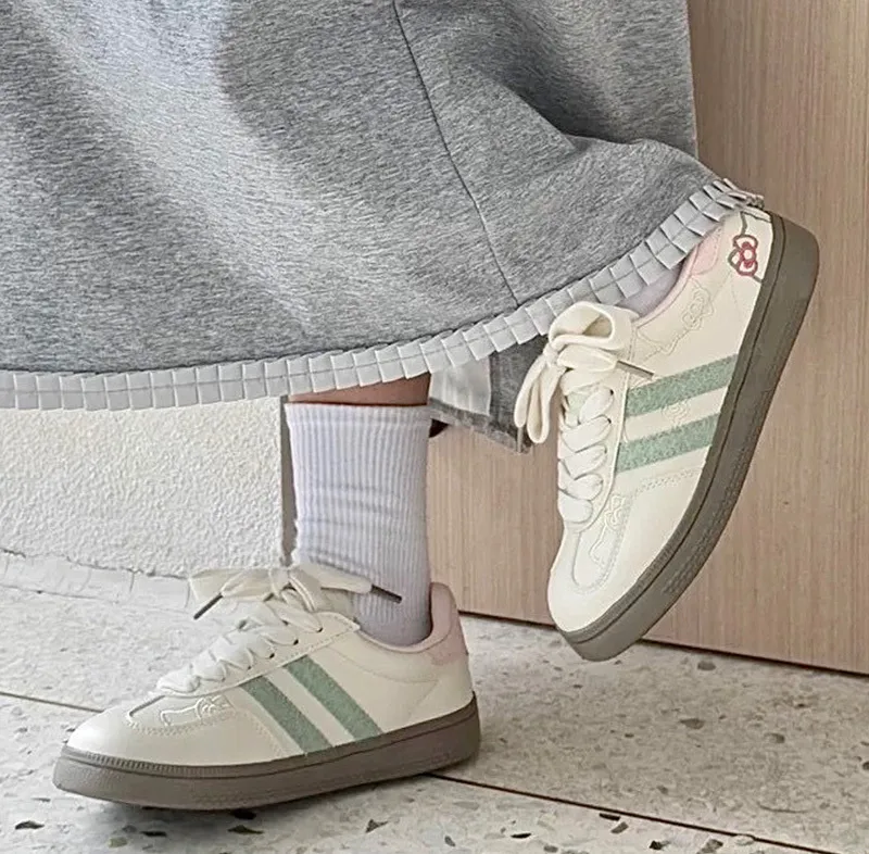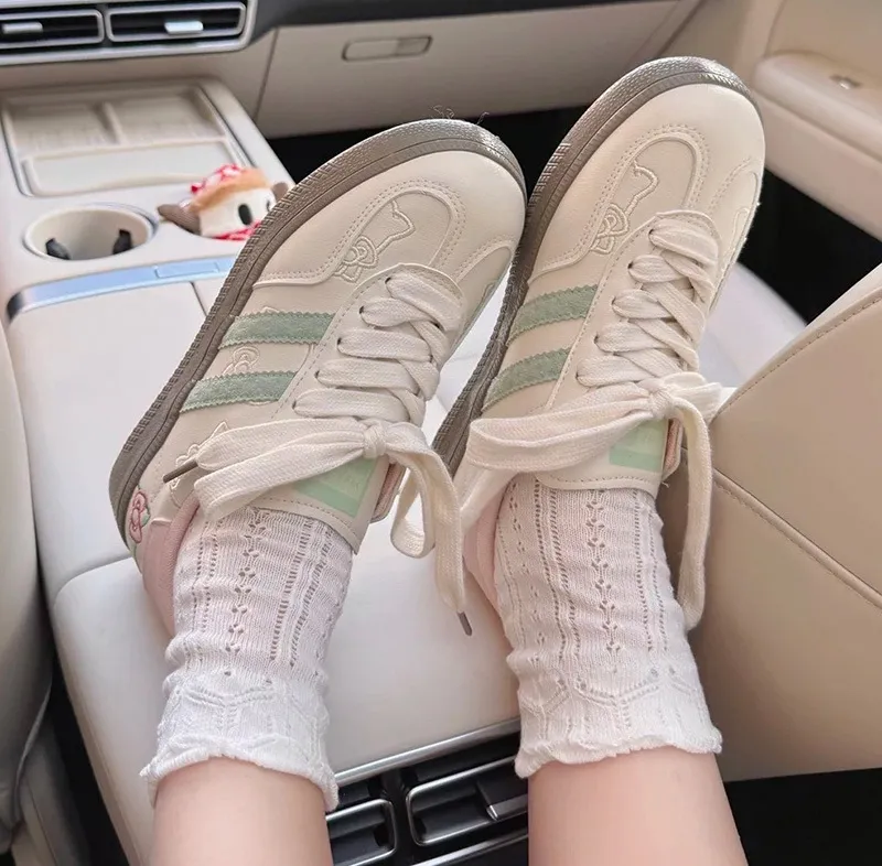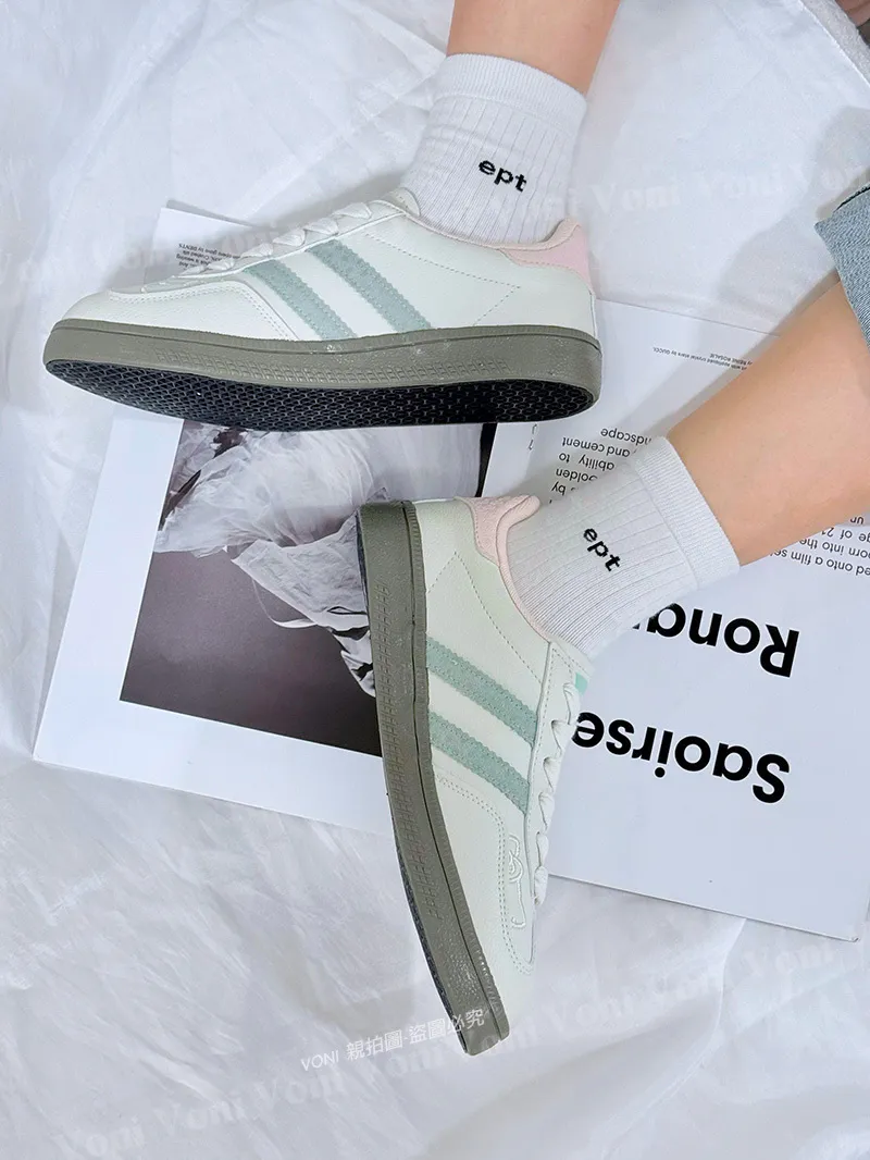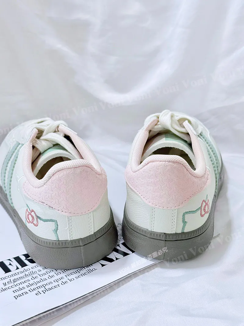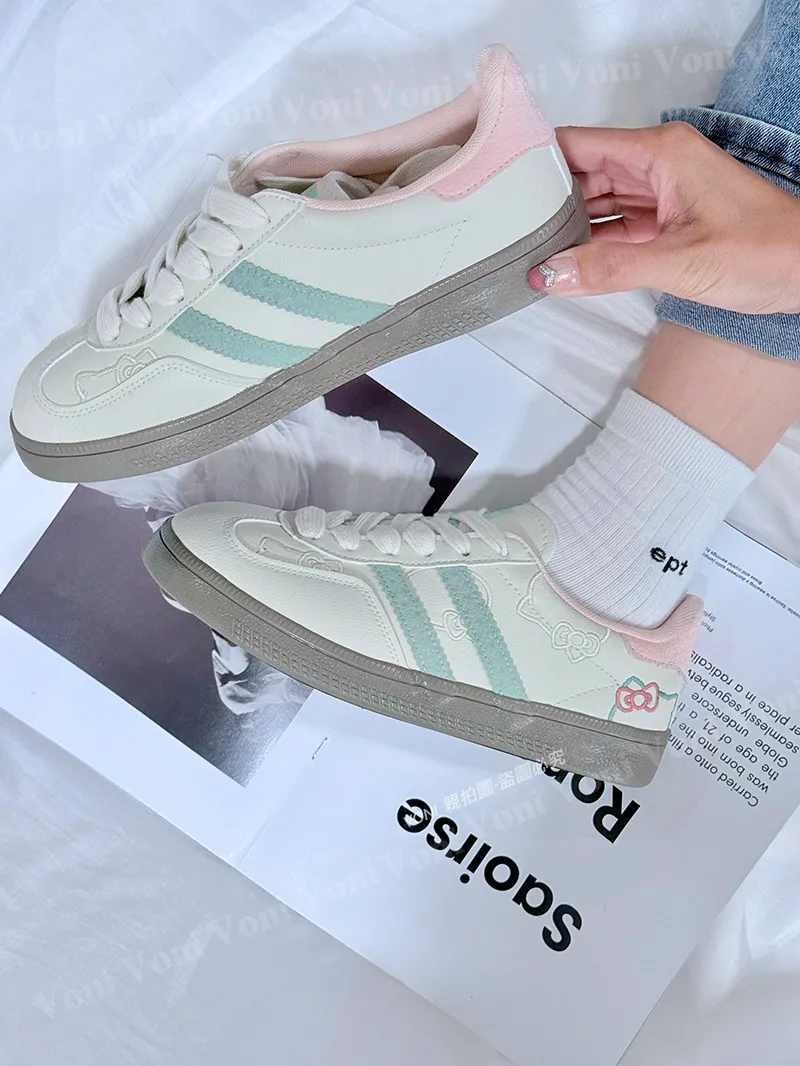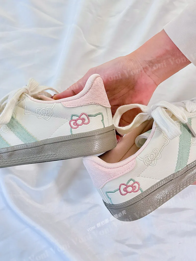 鞋側的KITTY造型以及鞋後跟超療癒的粉色拼接設計
