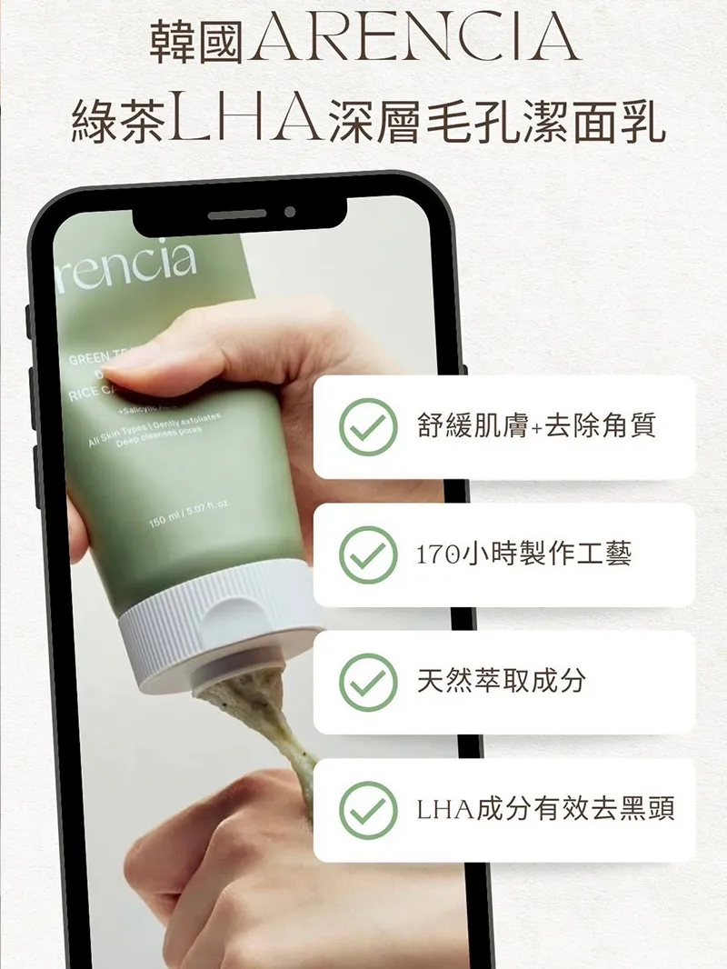 Arencia 這款年糕潔面乳就是以「溫和卻深層清潔」為主