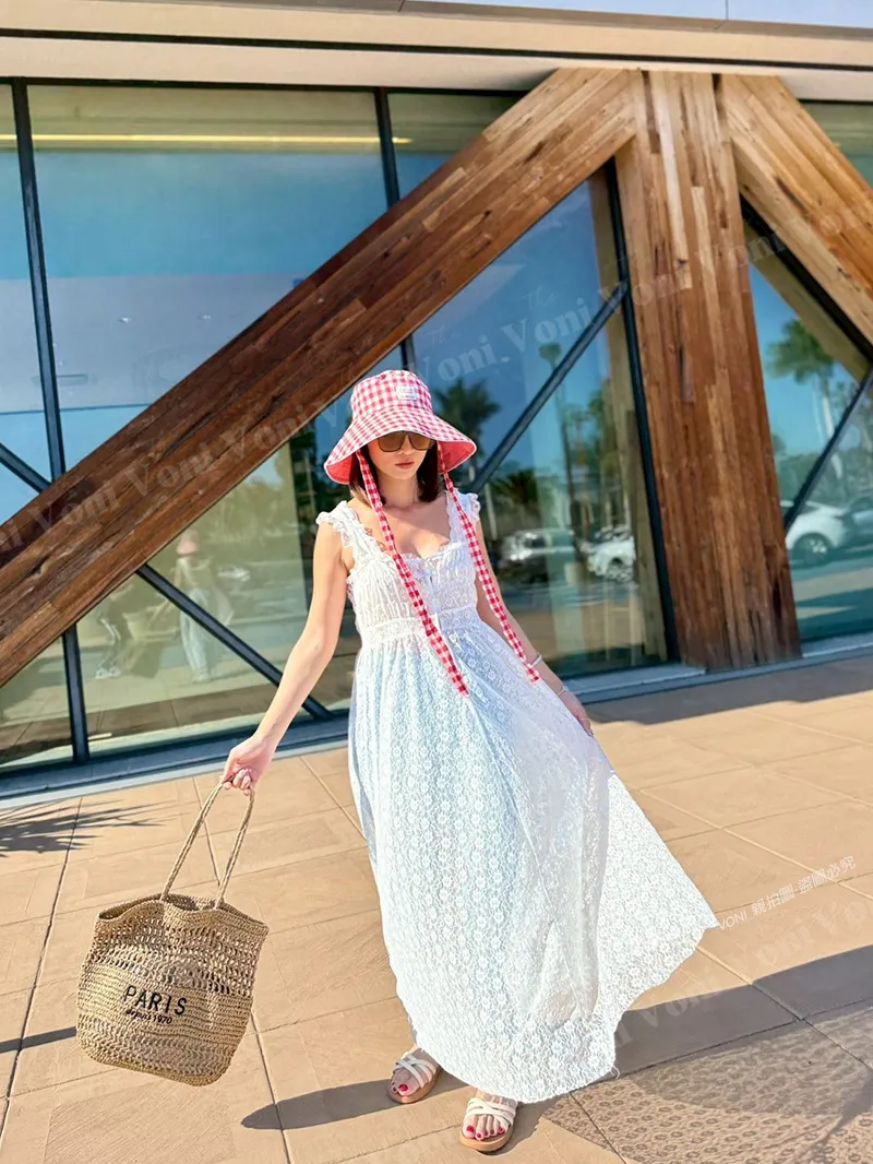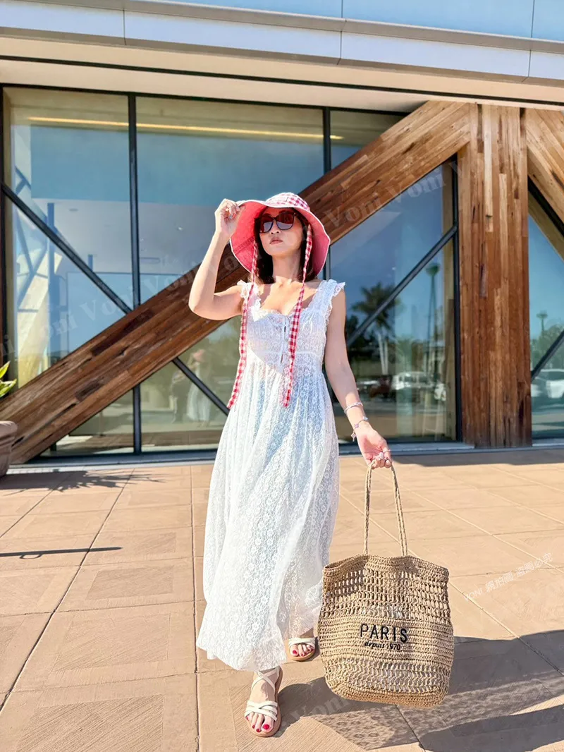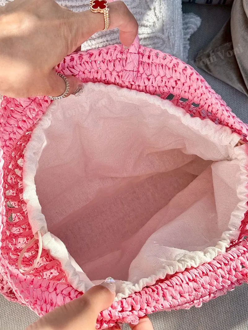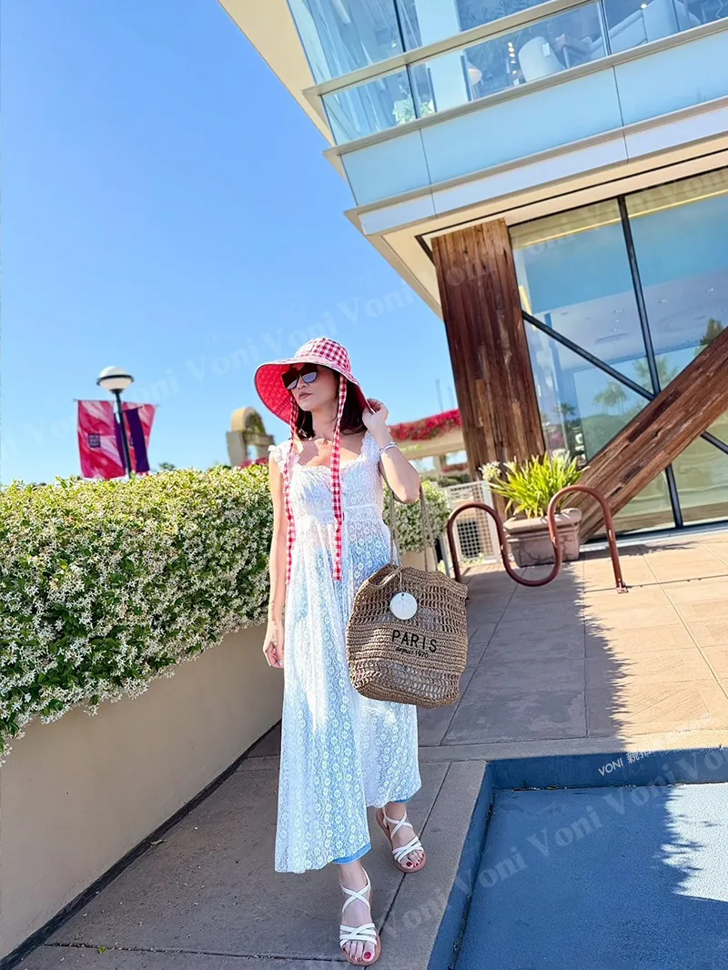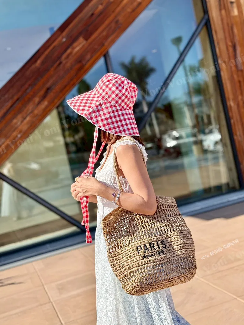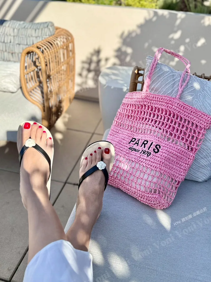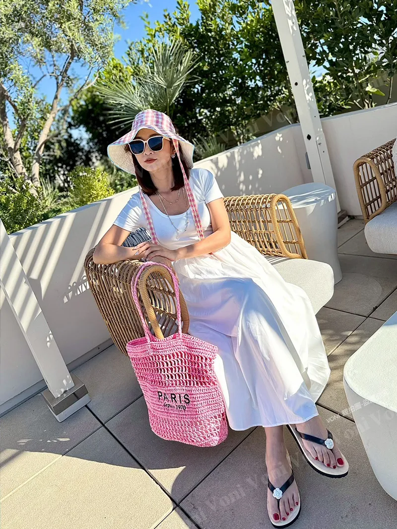 夏日神仙單品 PARIS英文字母刺繡鏤空草編包